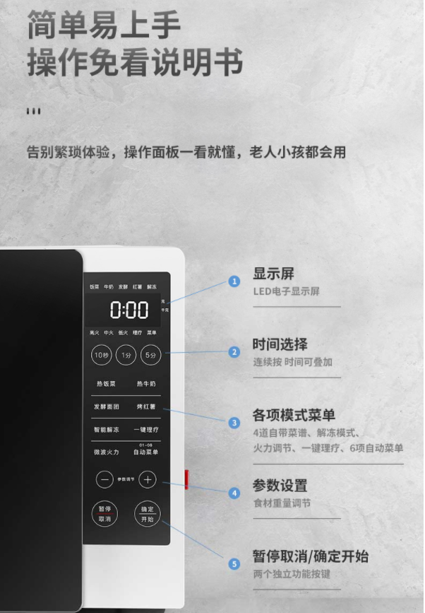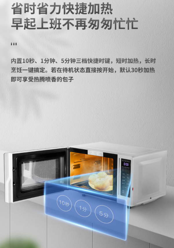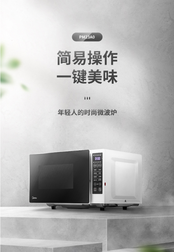 美的(Midea)PM23A0 23升快捷微波炉 智能解冻一键断电 LED显示屏 隐藏灯带 电子除味