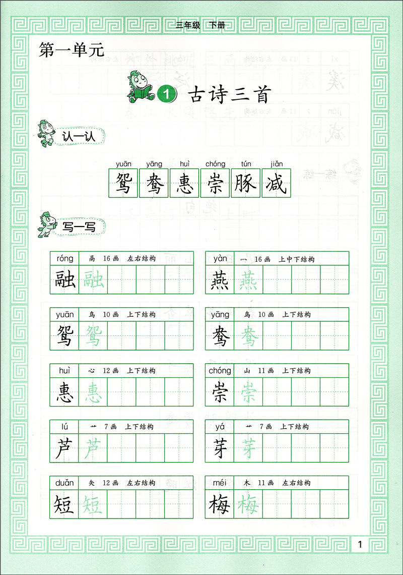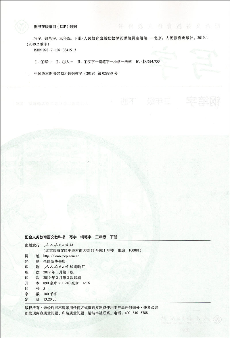 2020新版 写字钢笔字3年级下册/三年级第二学期 语文课本同步写字教材字帖钢笔字语文写字本练字贴 人民教育出版社