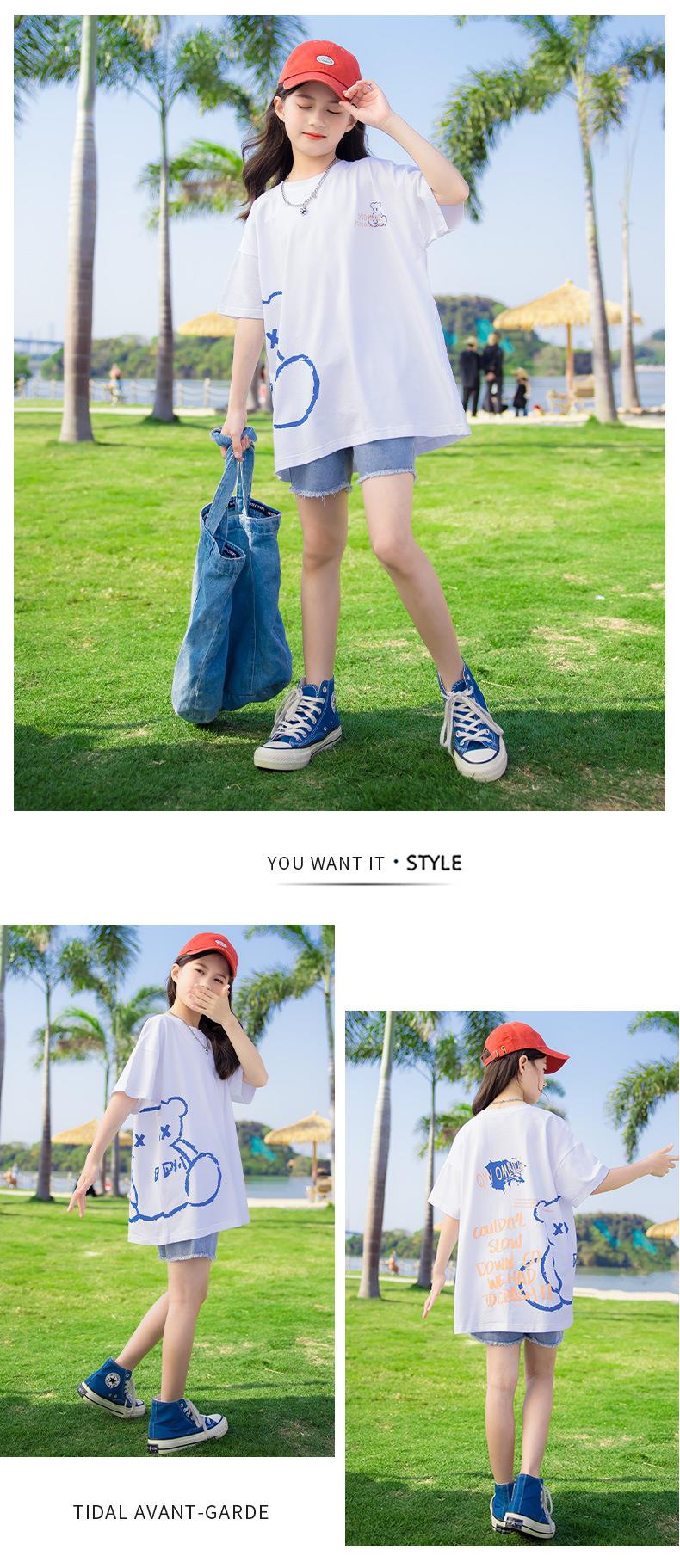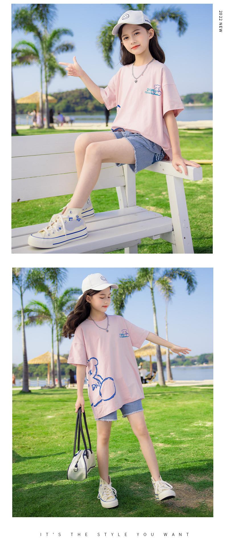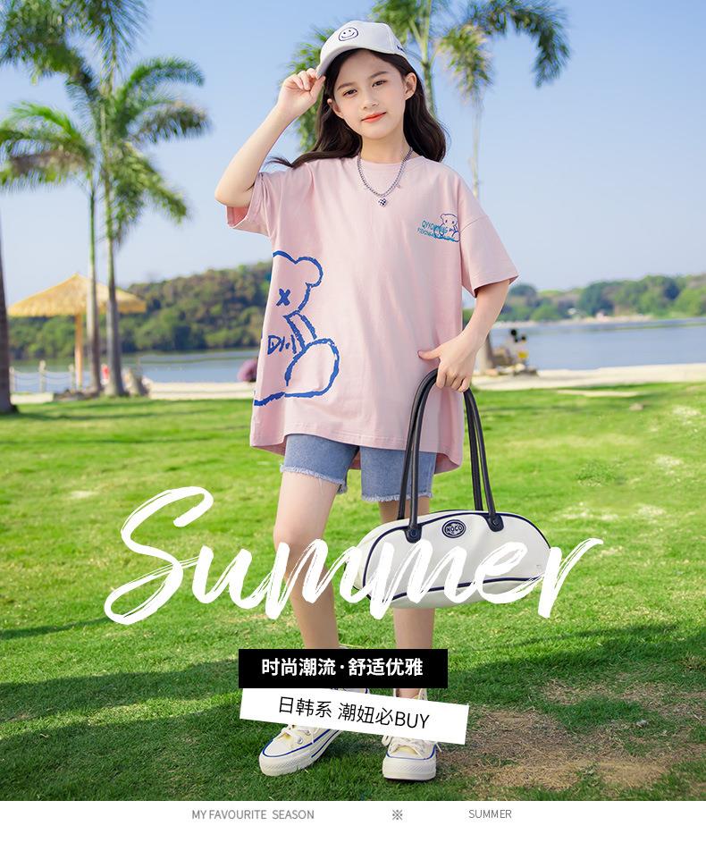 女童夏装新款2024新款洋气t恤中大童短裤夏款中大童时髦套装T