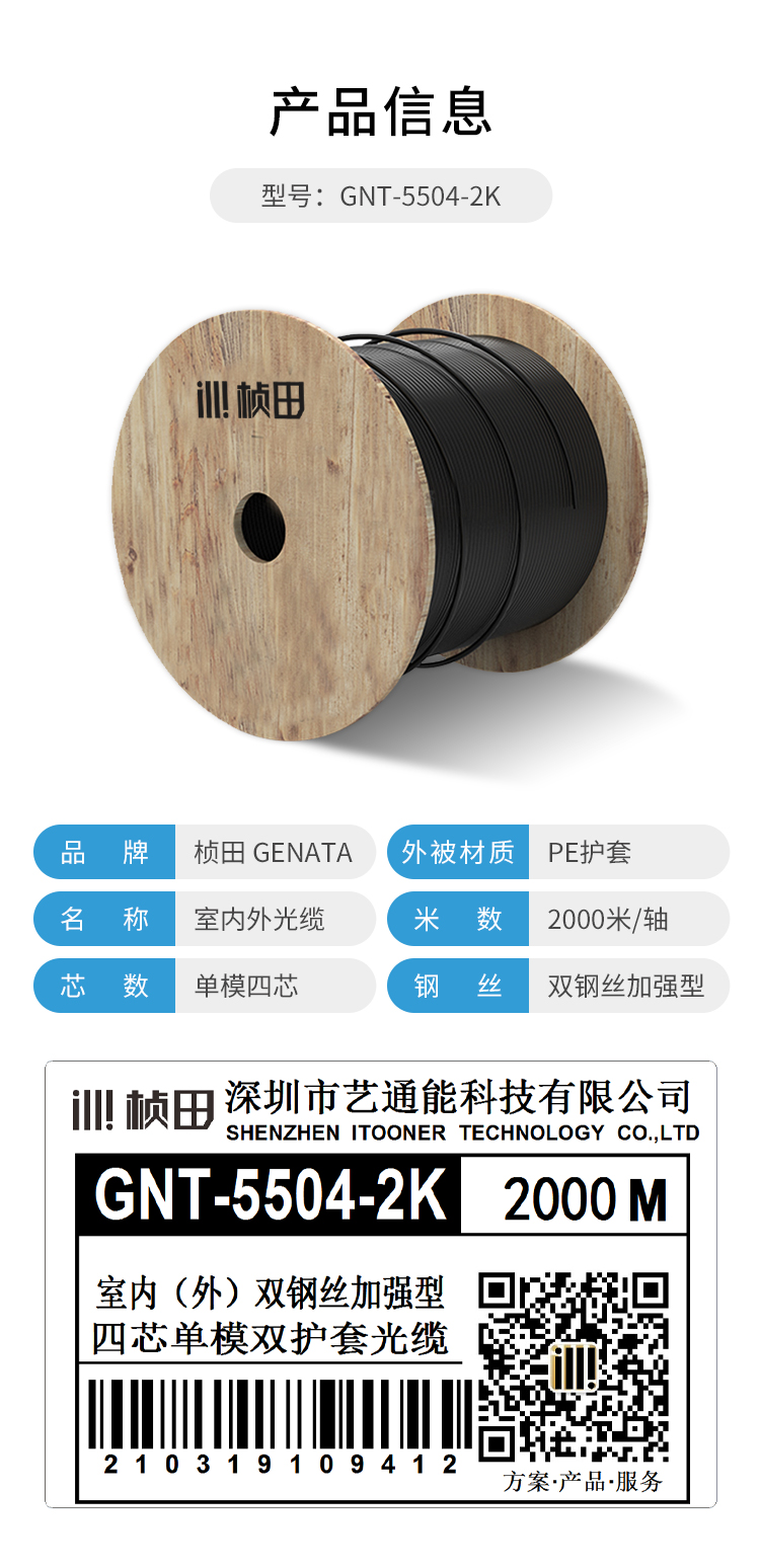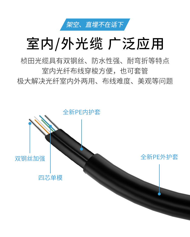 四芯单模双护套电缆室内外双钢丝加强型5504-2K