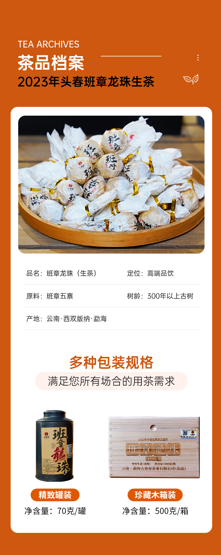 【即将售罄】【班章龙珠】2023年早春茶班章五寨核心古树精心拼配普洱茶生茶福利分享70克/罐 500克/箱