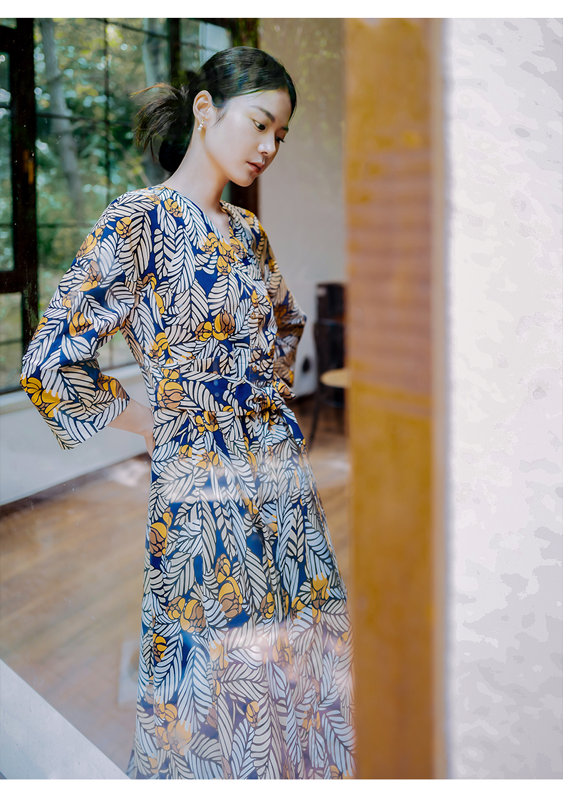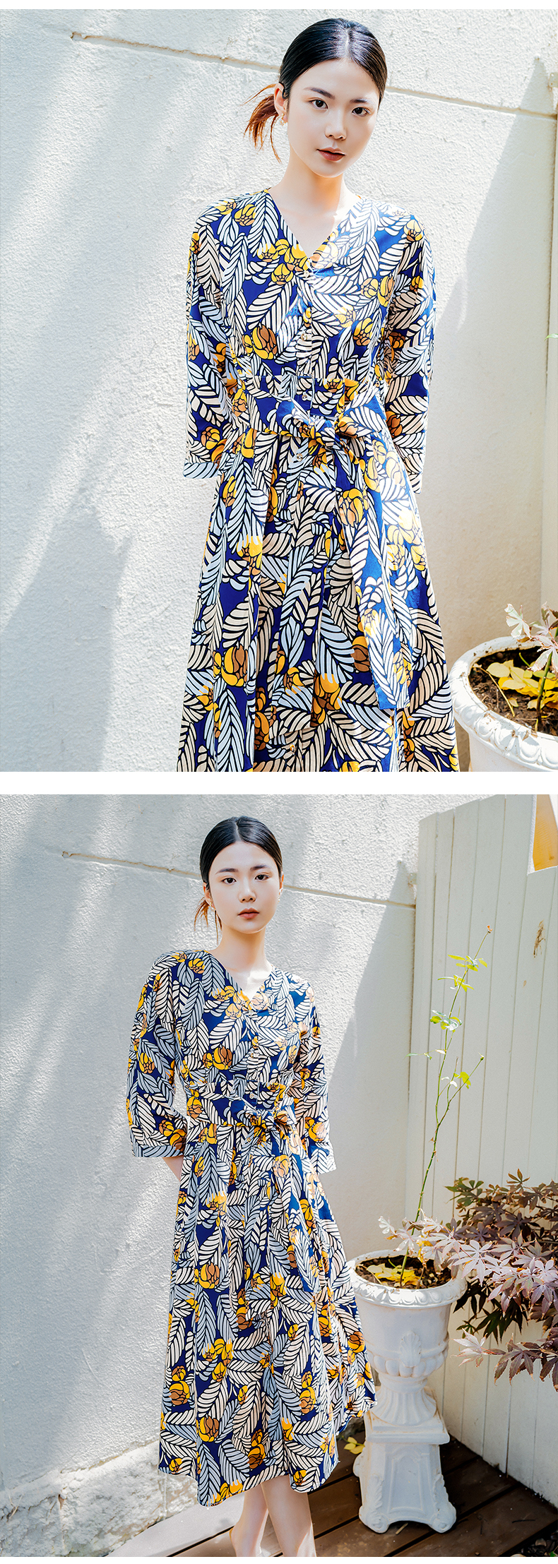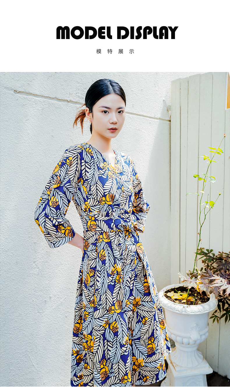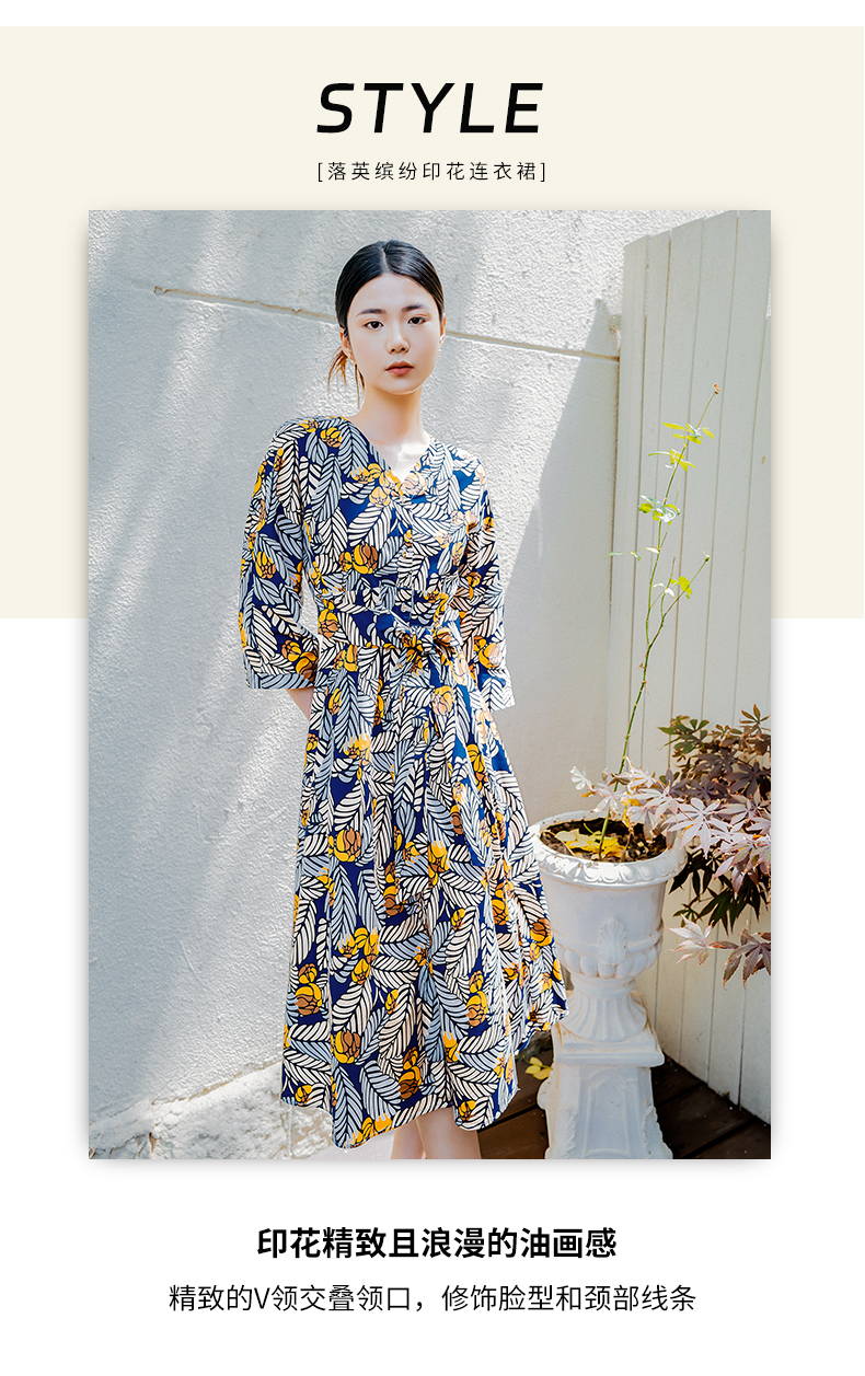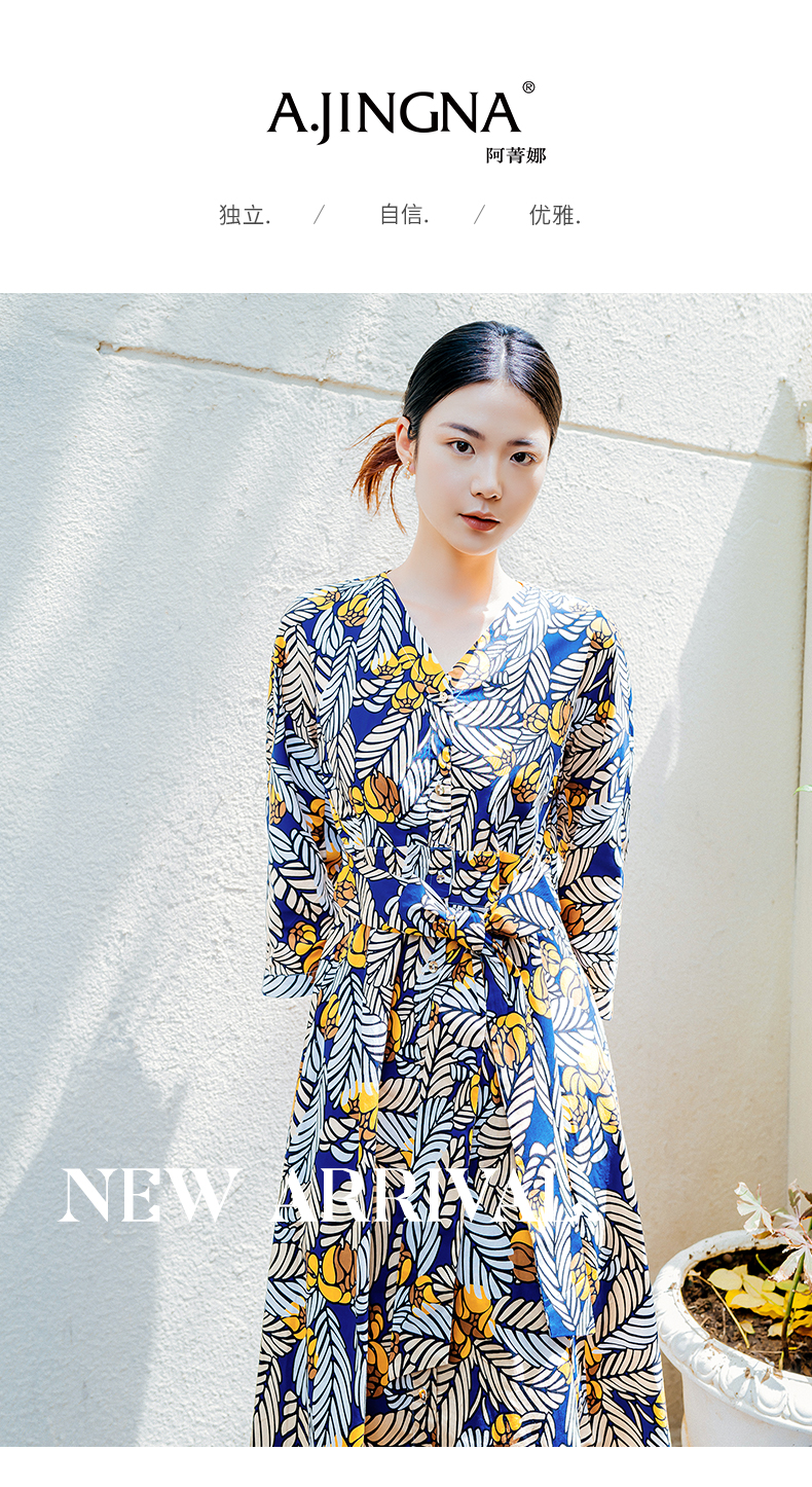 【踏青甄选价】阿菁娜交叠V领印花连衣裙A28C212050
