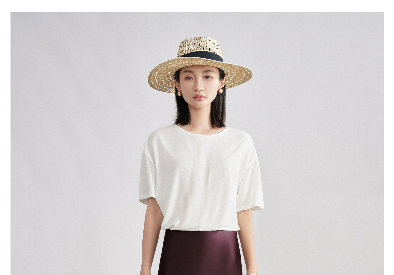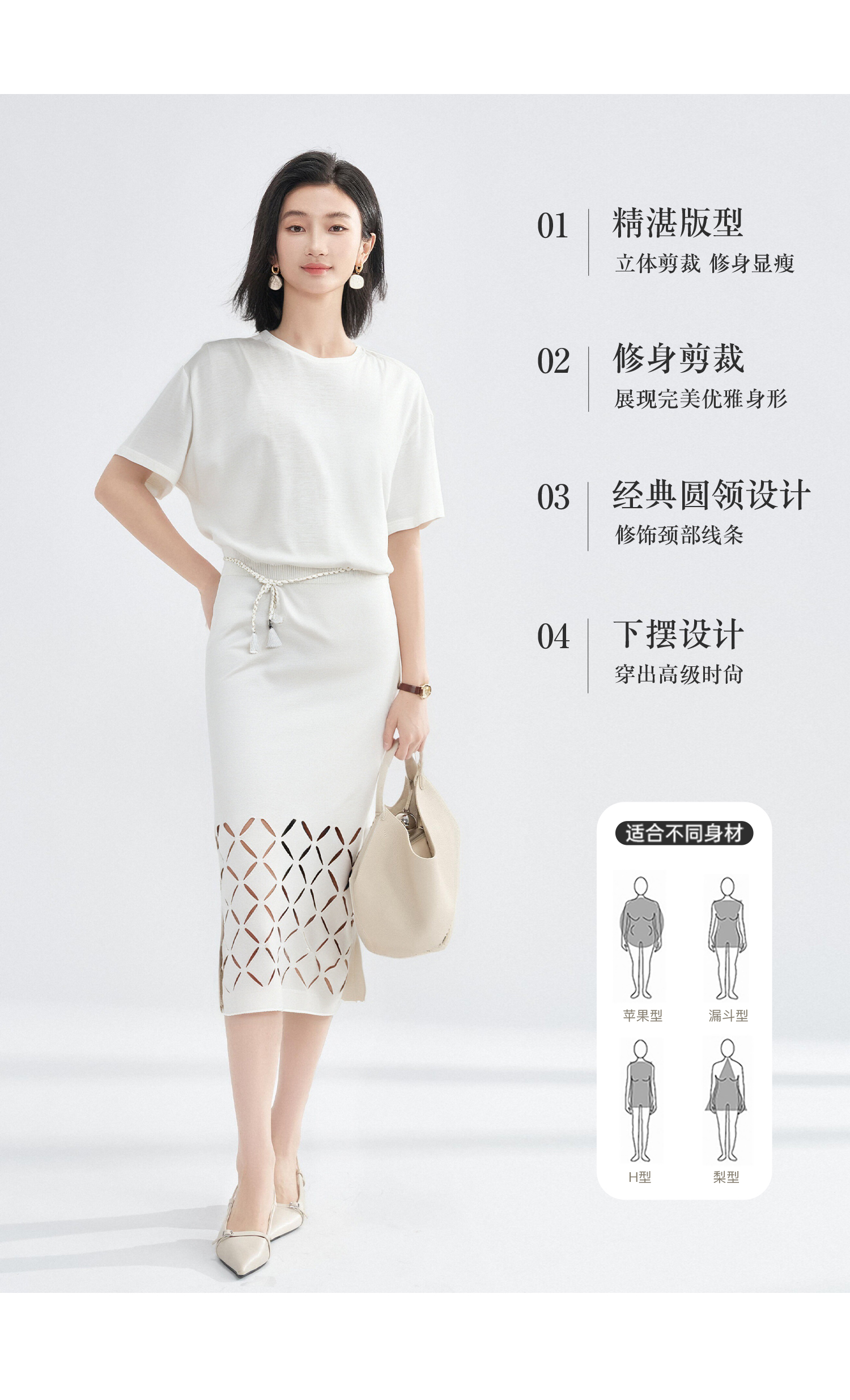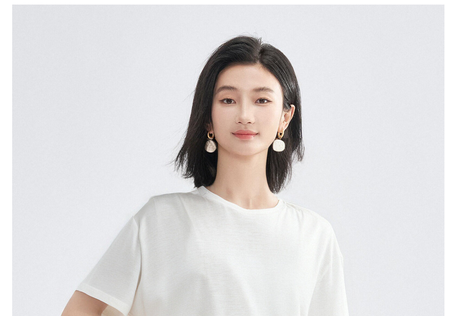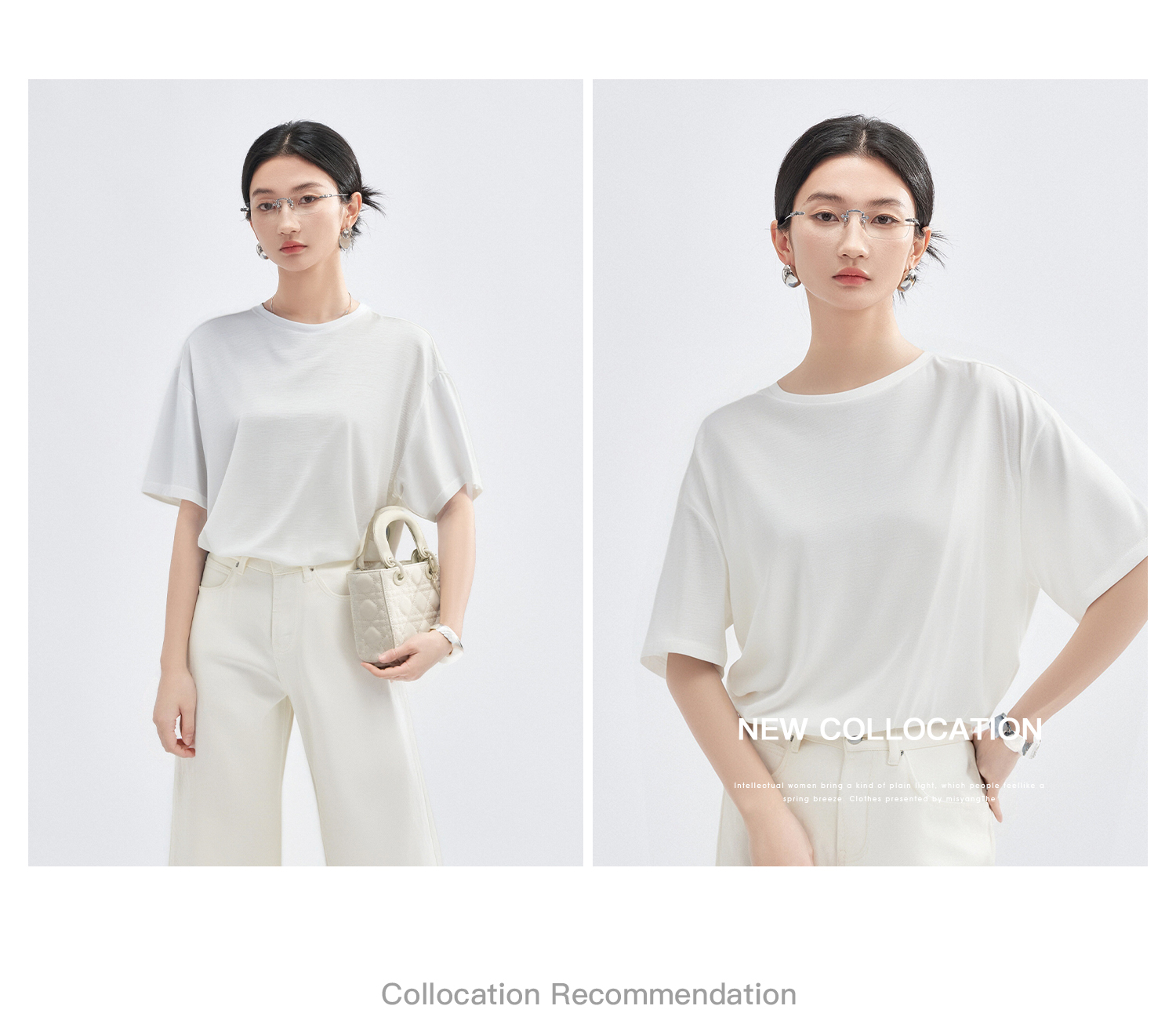 天丝蚕丝混纺软糯T恤 米思阳2025夏季新款休闲百搭宽松T恤舒适上衣女5982