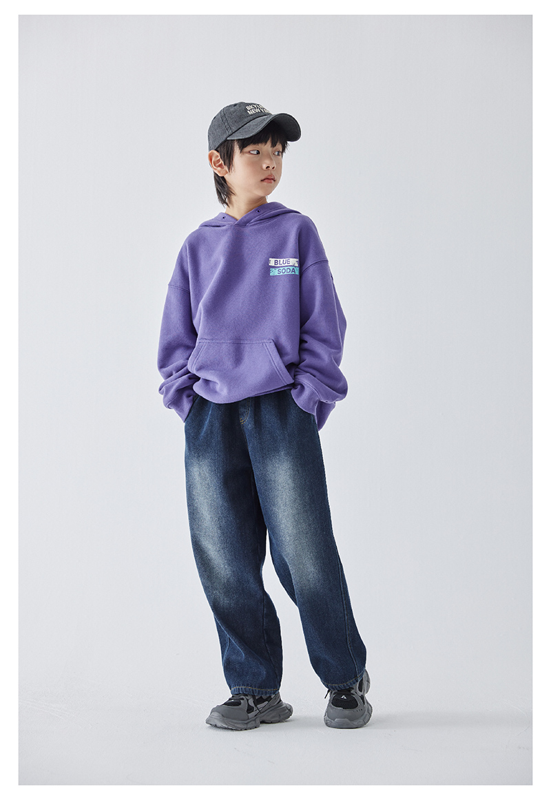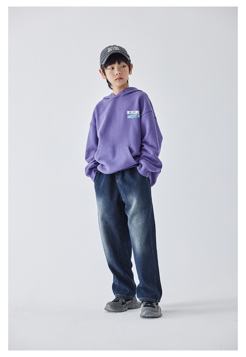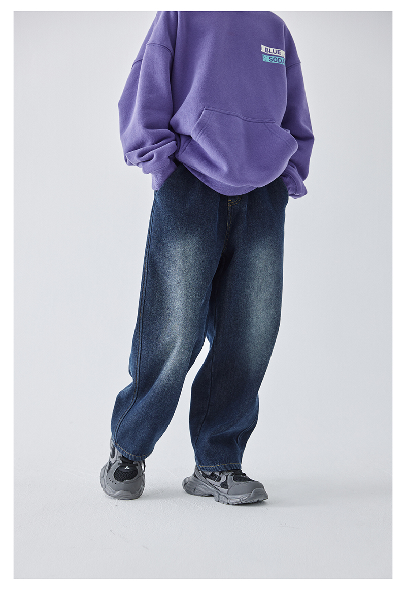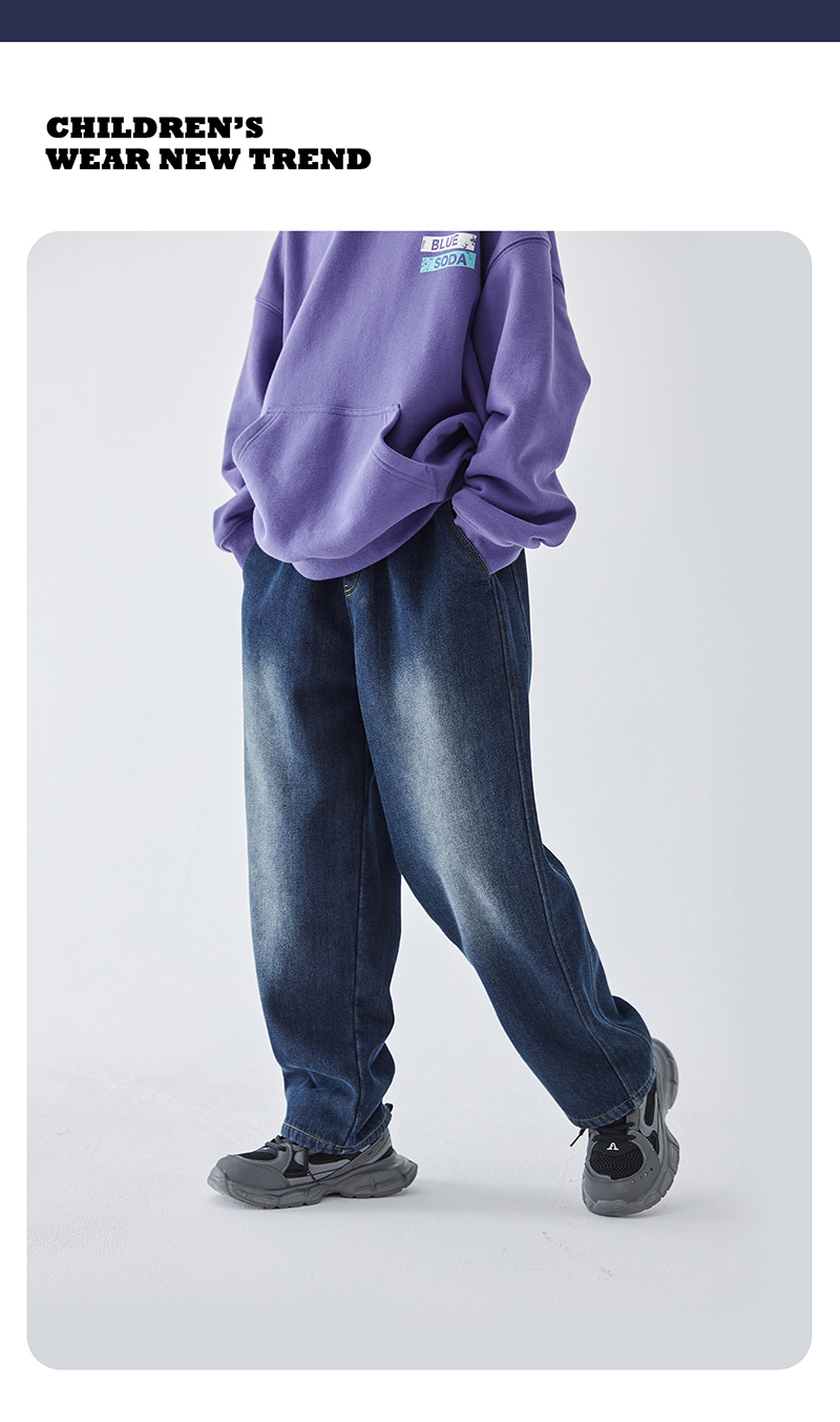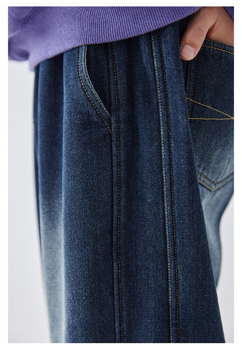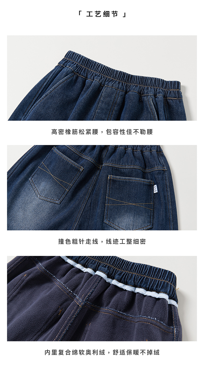 蓝汽水冬季新款暖绒牛仔裤男童加绒加厚休闲裤磨白复古蓝长裤