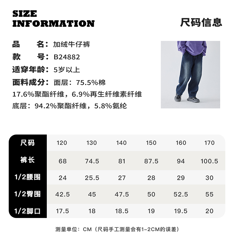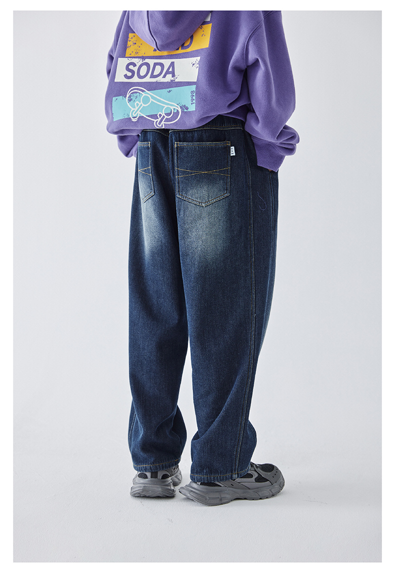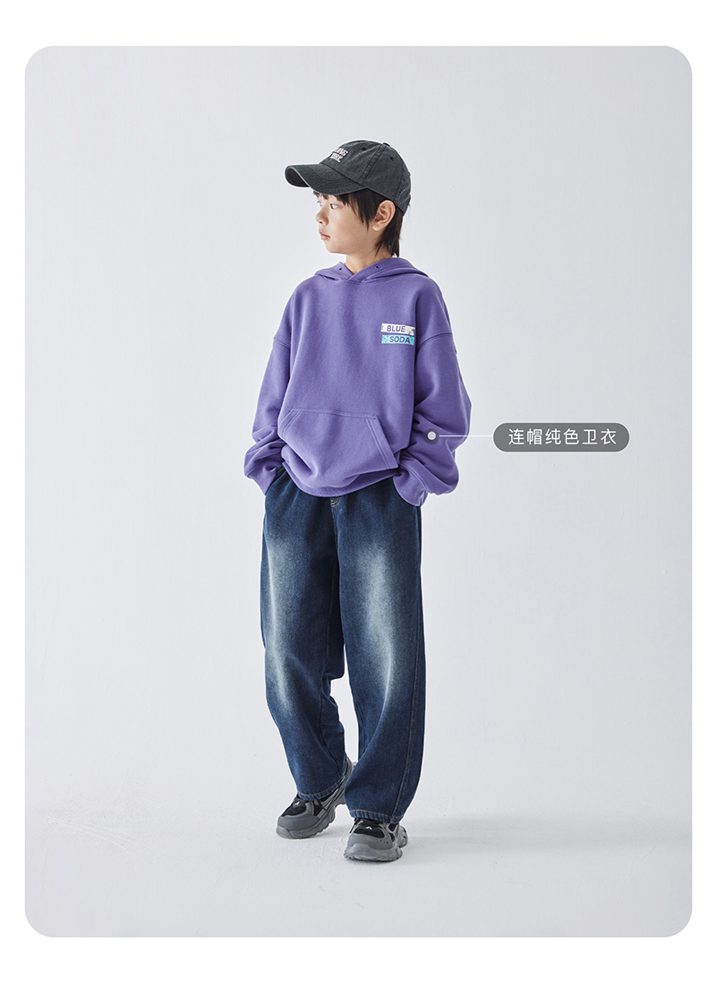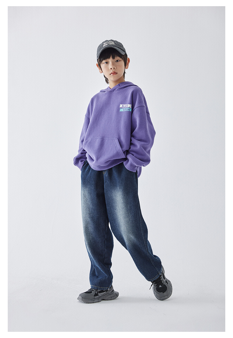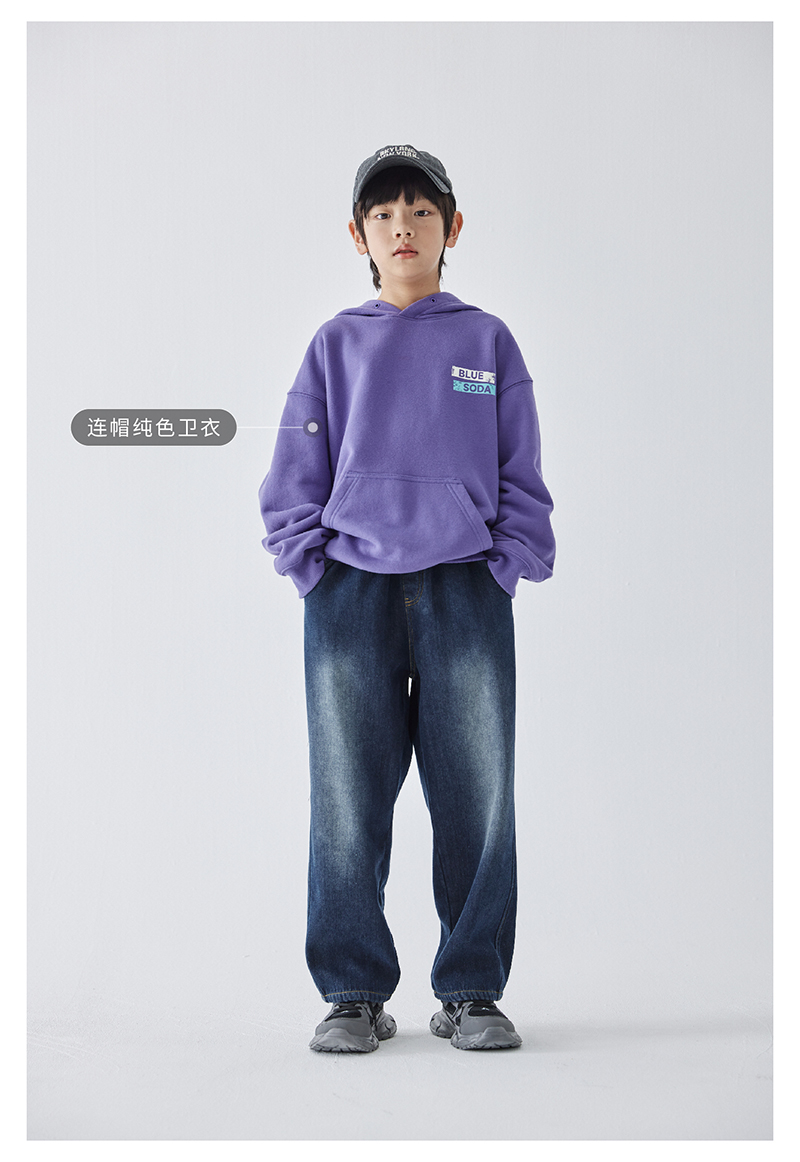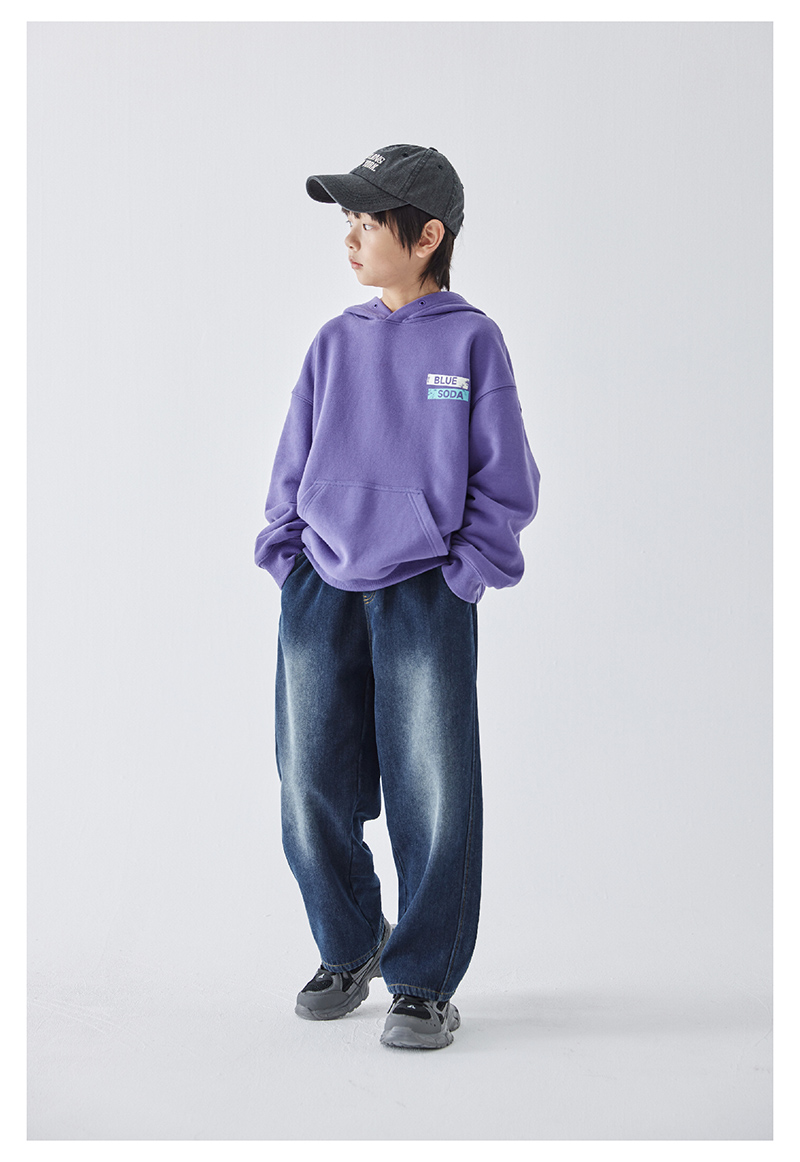 蓝汽水冬季新款暖绒牛仔裤男童加绒加厚休闲裤磨白复古蓝长裤