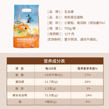 丨有机丨南瓜面粉2袋 菠菜面粉2袋 混搭2袋 750g/袋 五谷康有机面粉