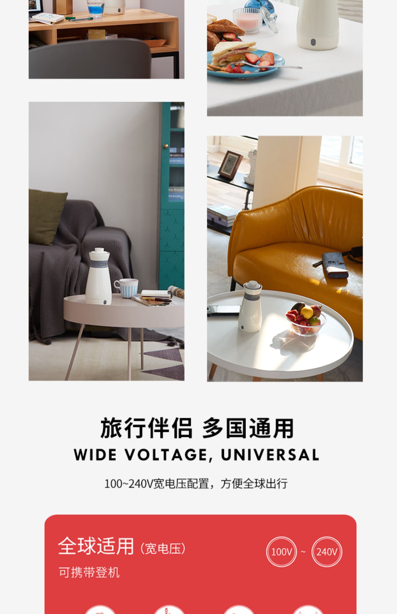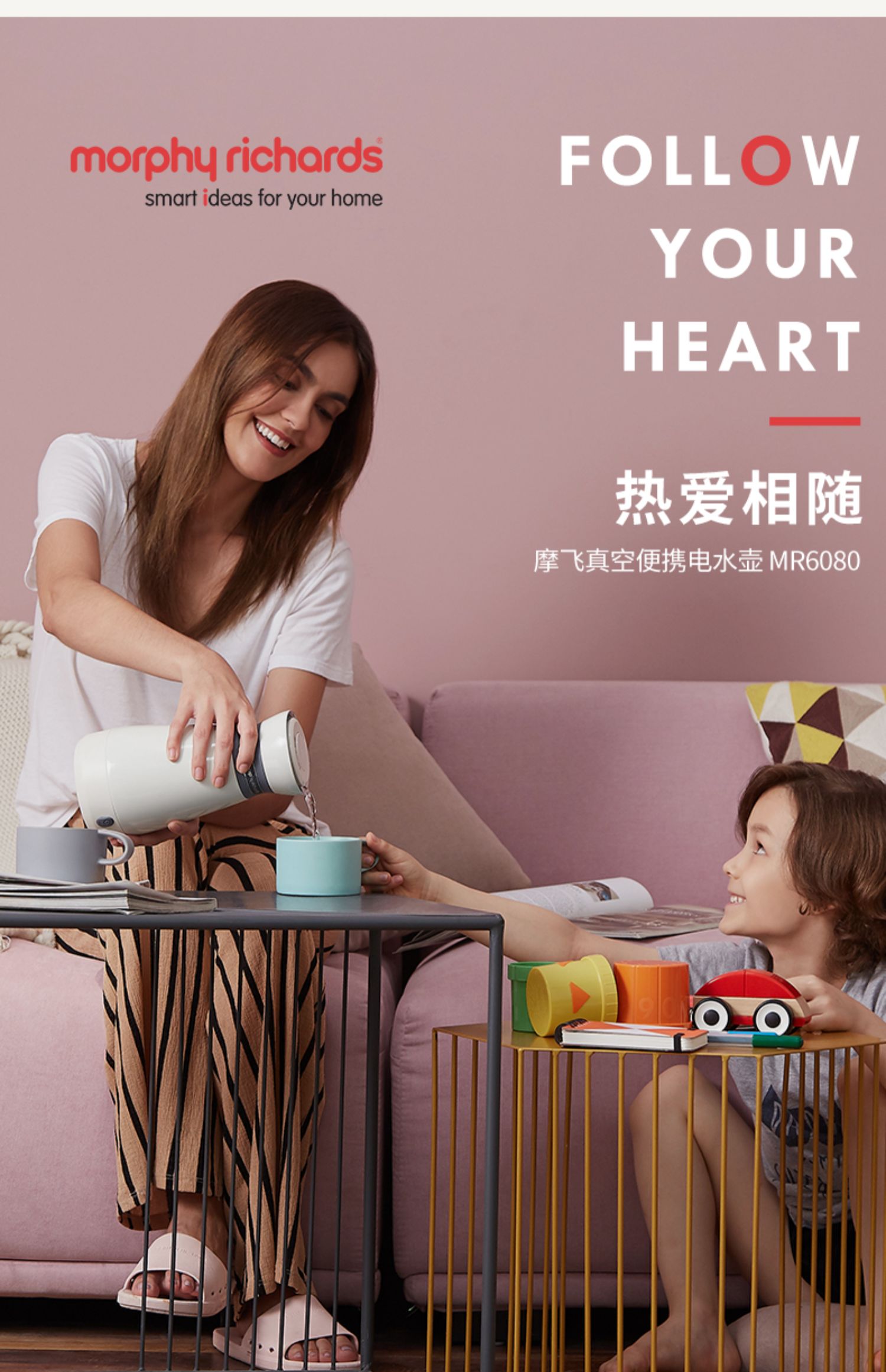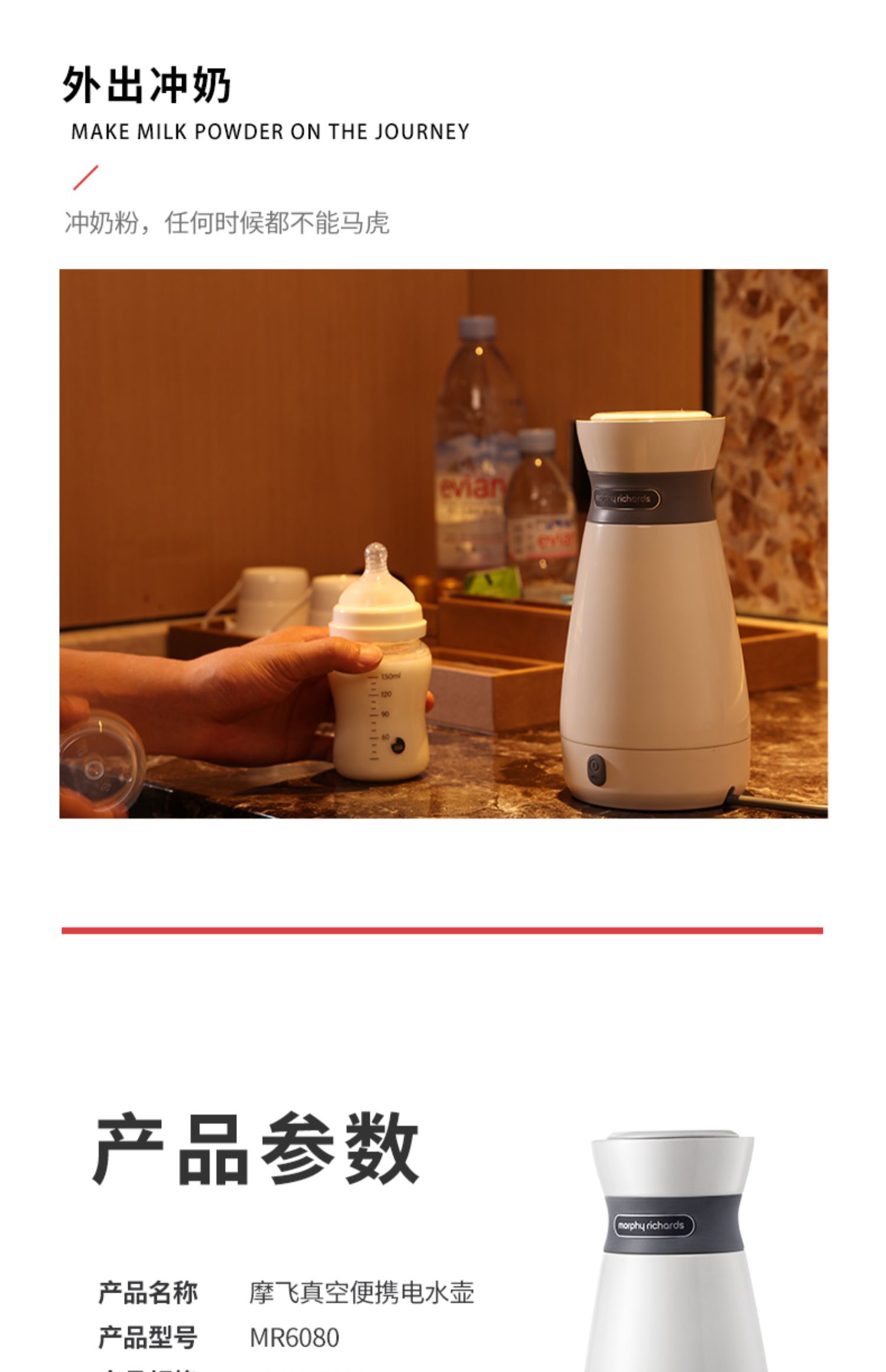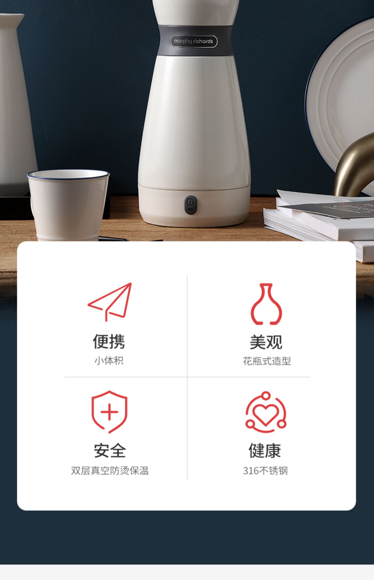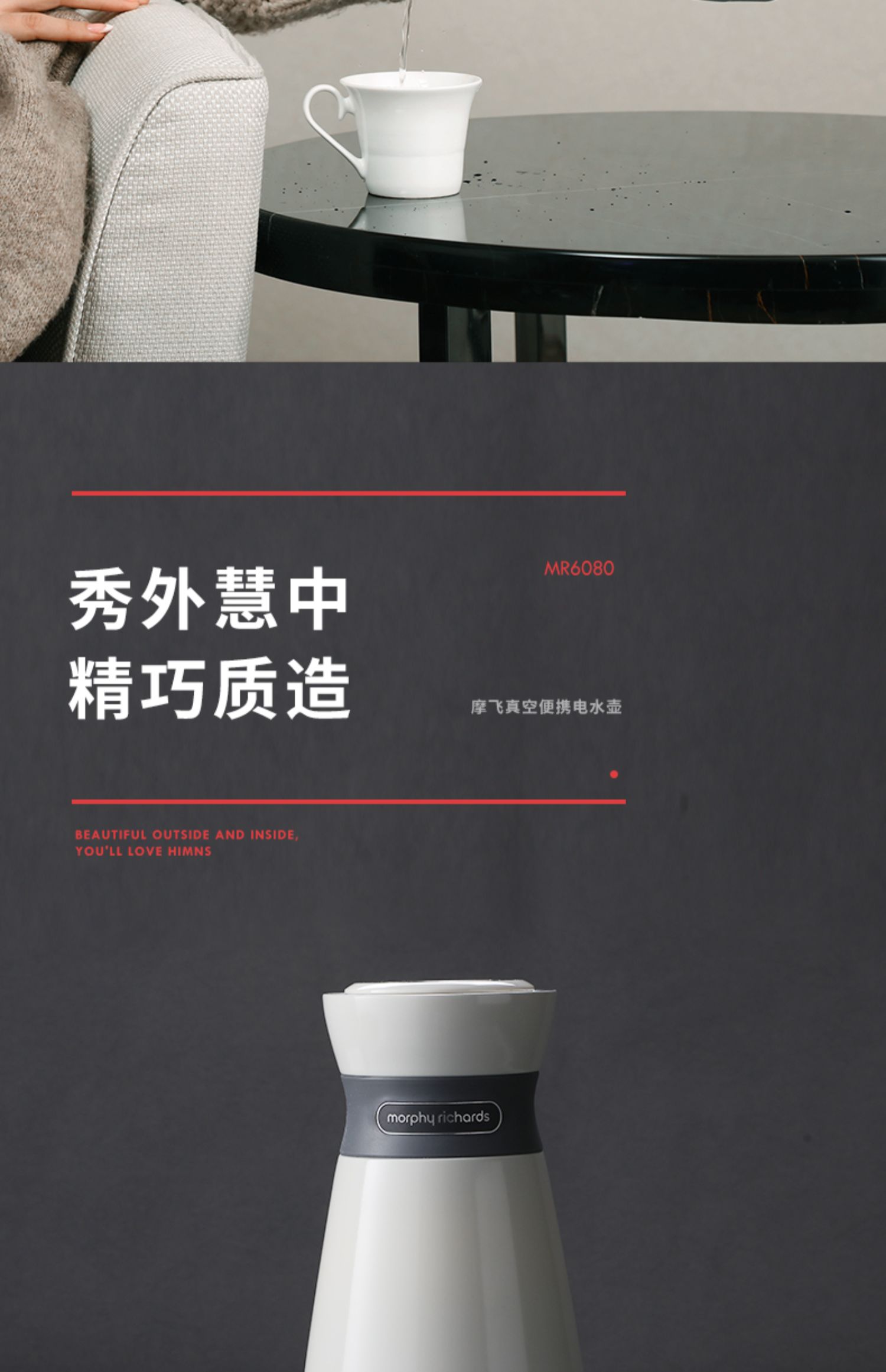 摩飞便携式烧水壶电热水壶全自动家用小型保温一体旅行电水壶MR6080