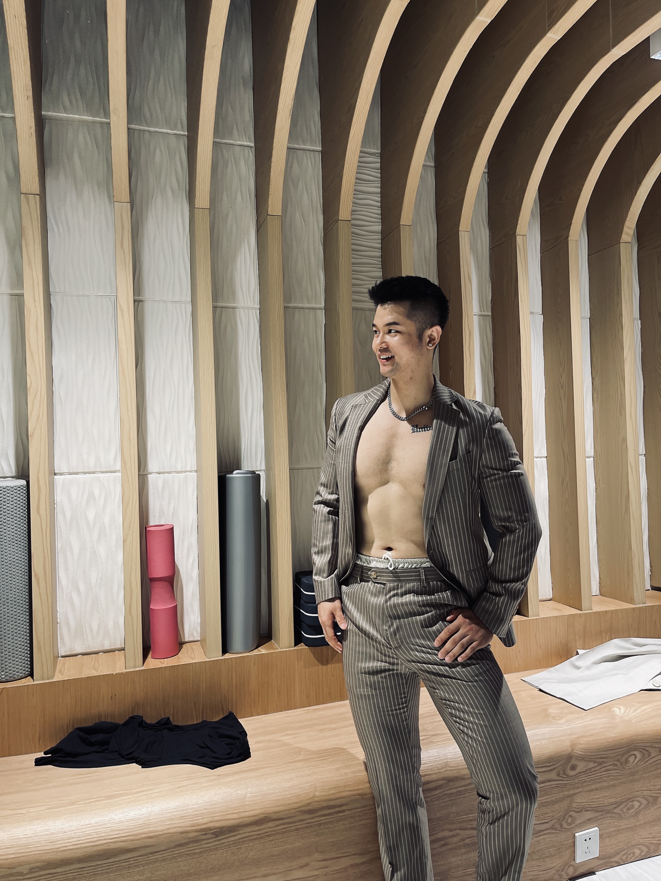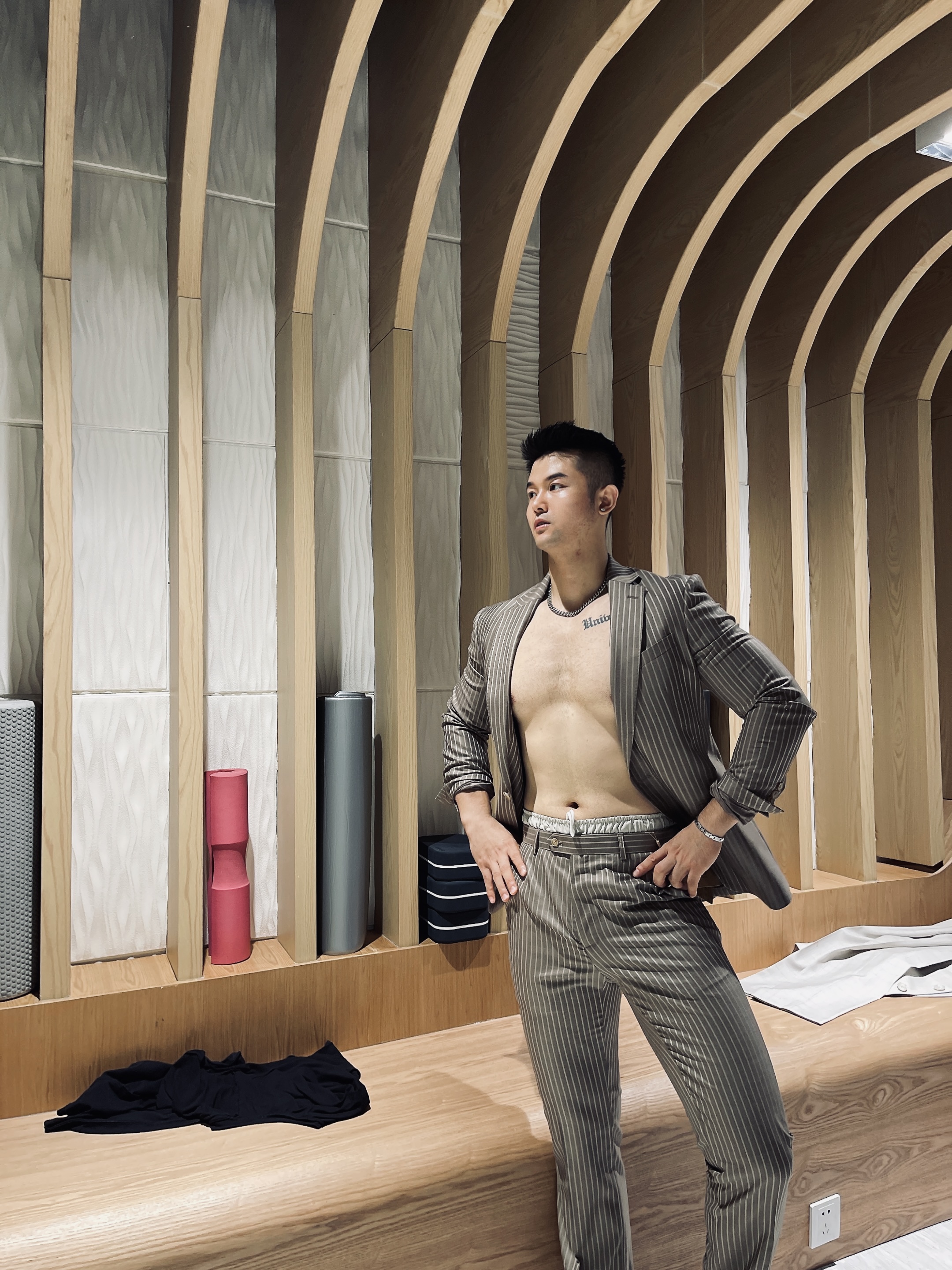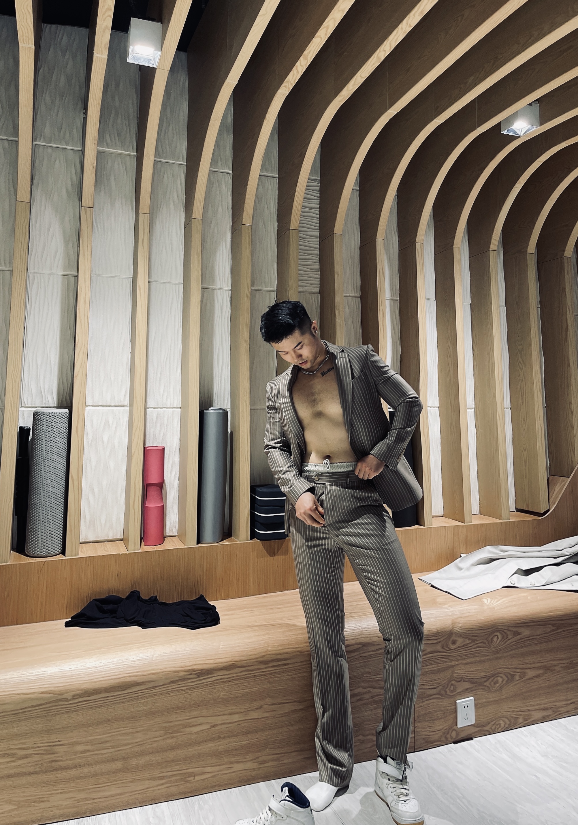 男装修身西服套装 霸道总裁范 咖色条纹 进口稀缺面料 J204M4662