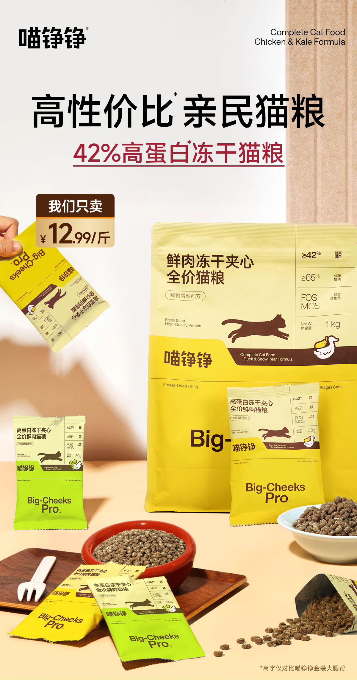喵铮铮高蛋白冻干夹心全价鲜肉猫粮新人补贴成猫幼猫益生元无谷粮