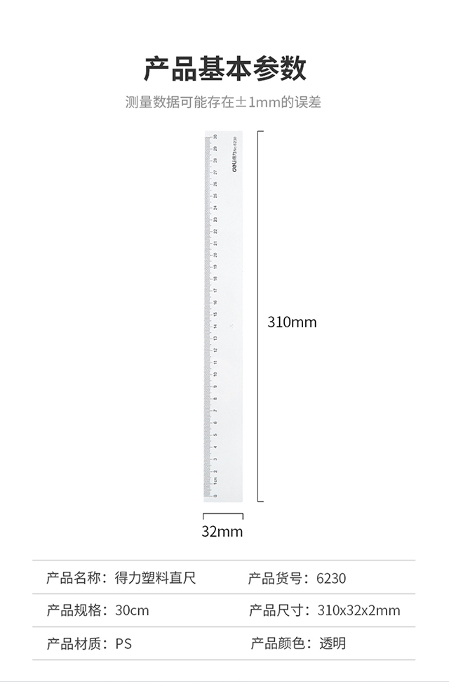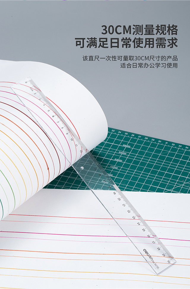 得力(deli)30cm办公通用直尺 测量绘图尺子 办公用品 6230