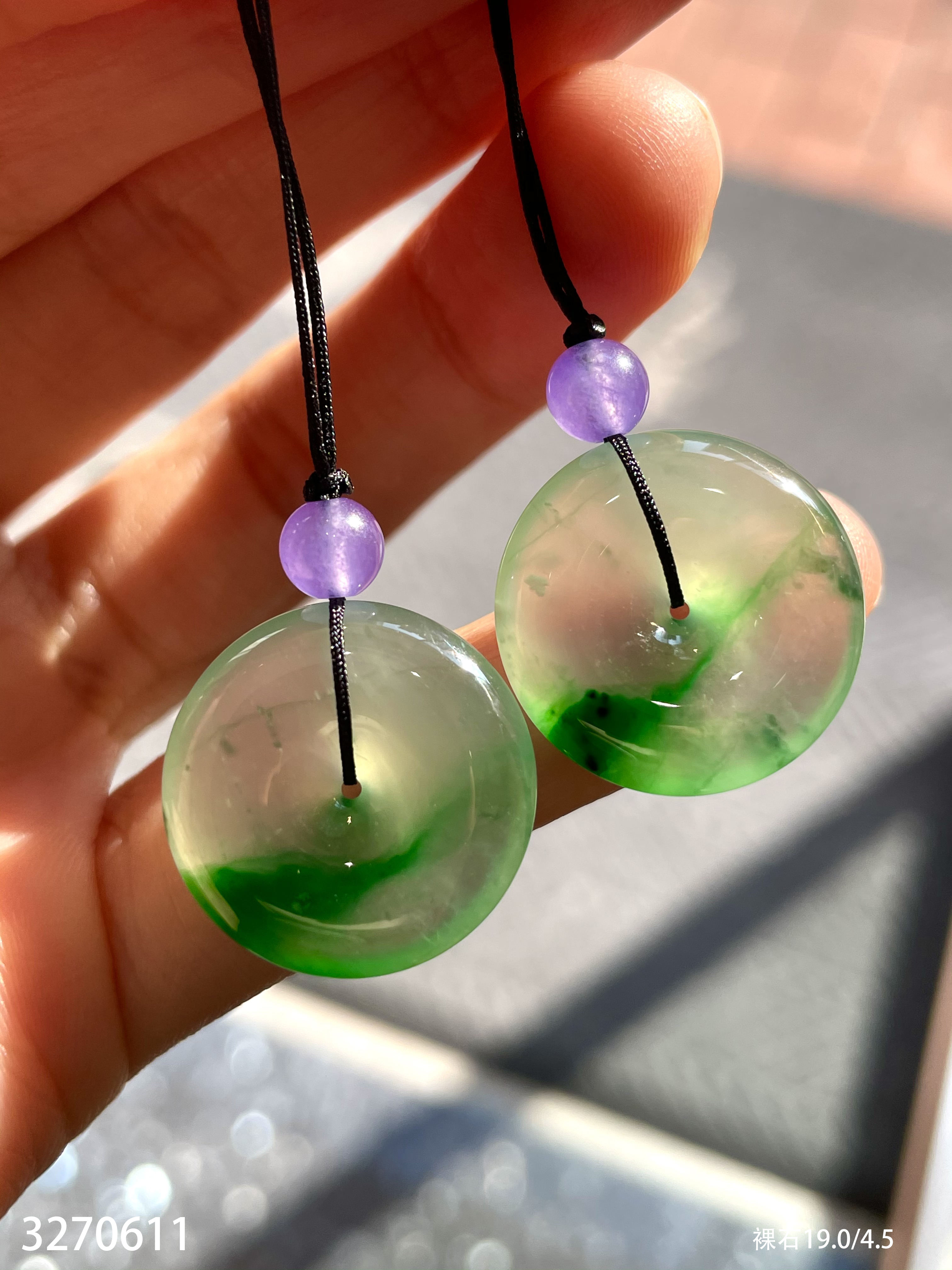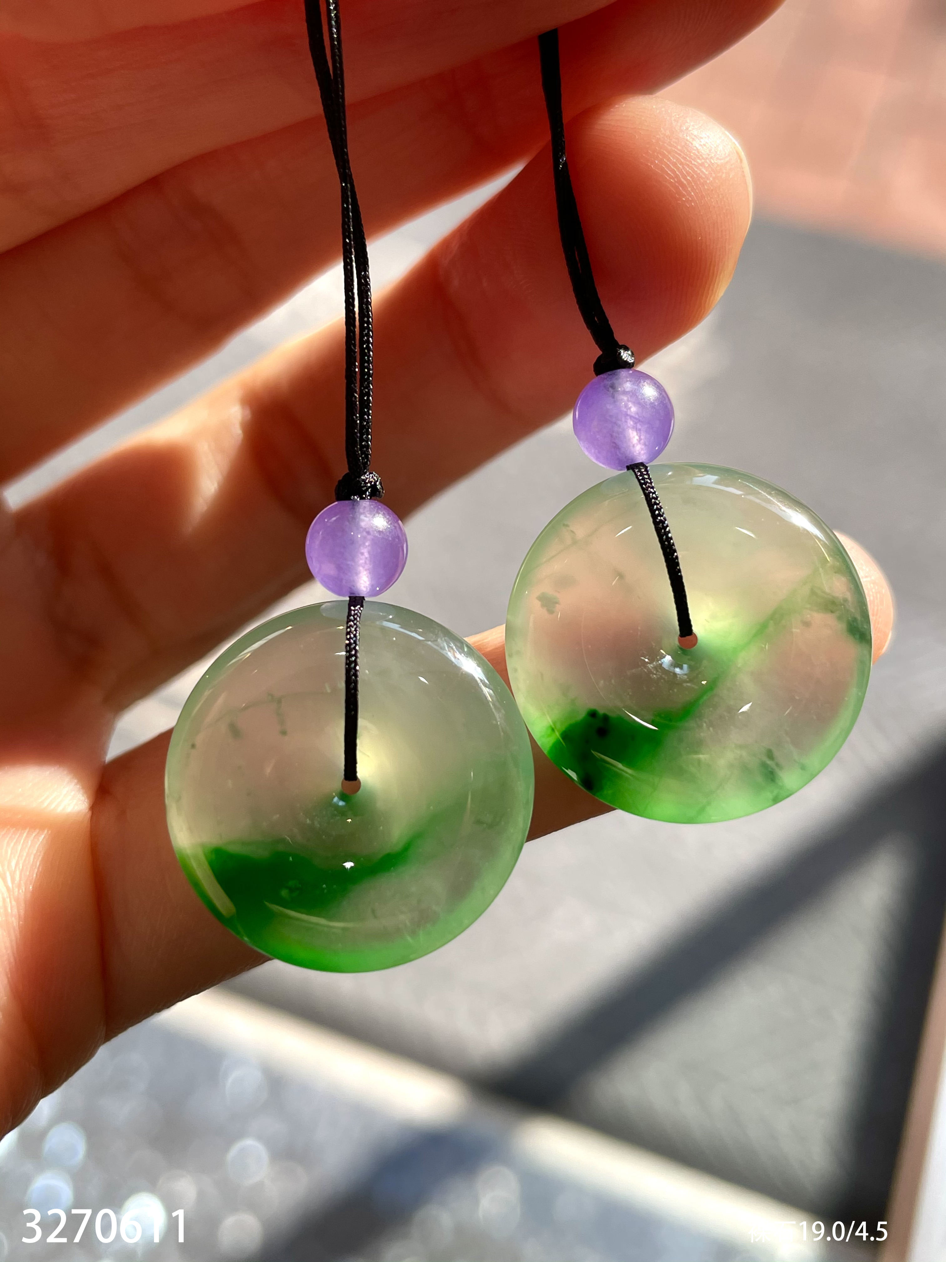 玻璃种飘翠平安扣一对【3270611】具体价格微信咨询