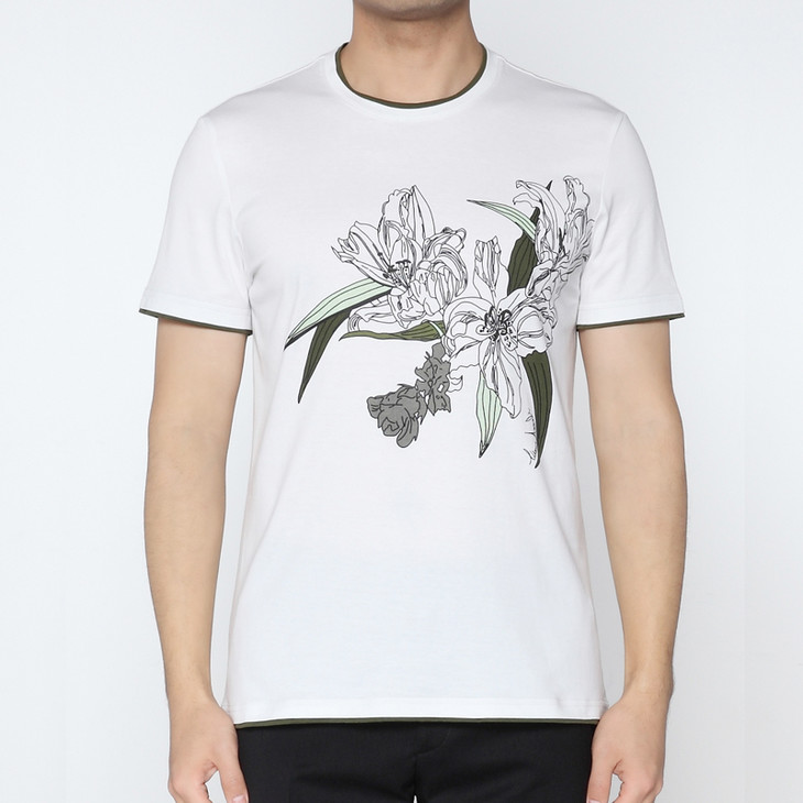 Marco Azzali 白色胶印双层撞色领短袖圆领T恤 T5217300