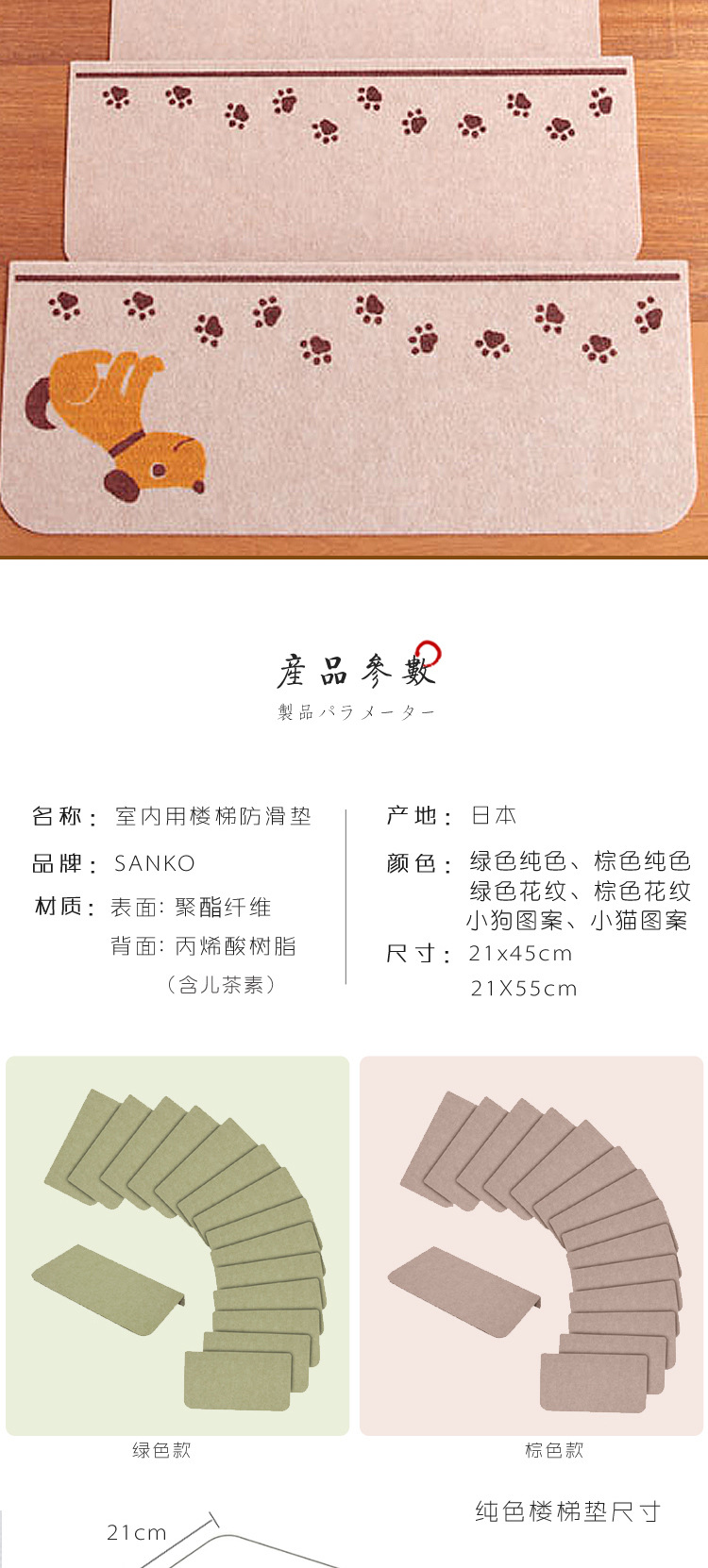 日本进口楼梯垫可裁剪SANKO楼梯防滑垫踏步防滑地毯免胶自粘地垫 WHJC