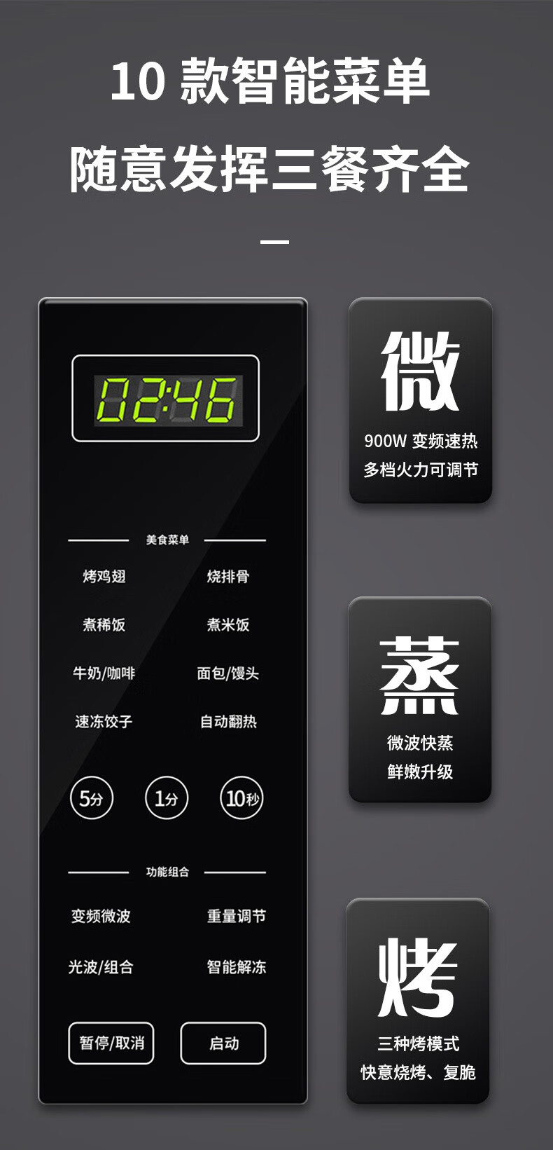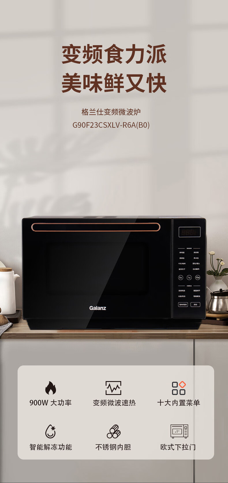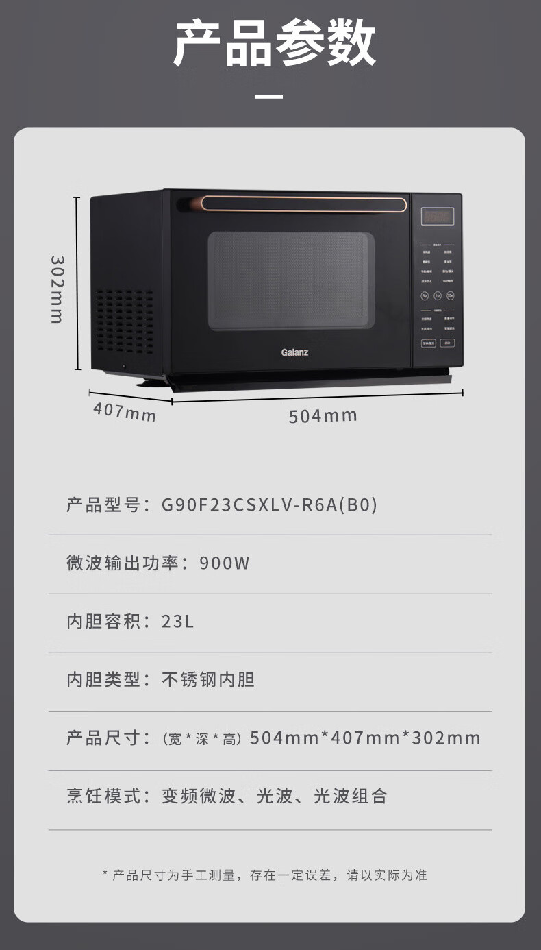 格兰仕变频微波炉家用智能微蒸烤一体机光波炉不锈钢内胆大功率速热食物G90F23CSXLV-R6A