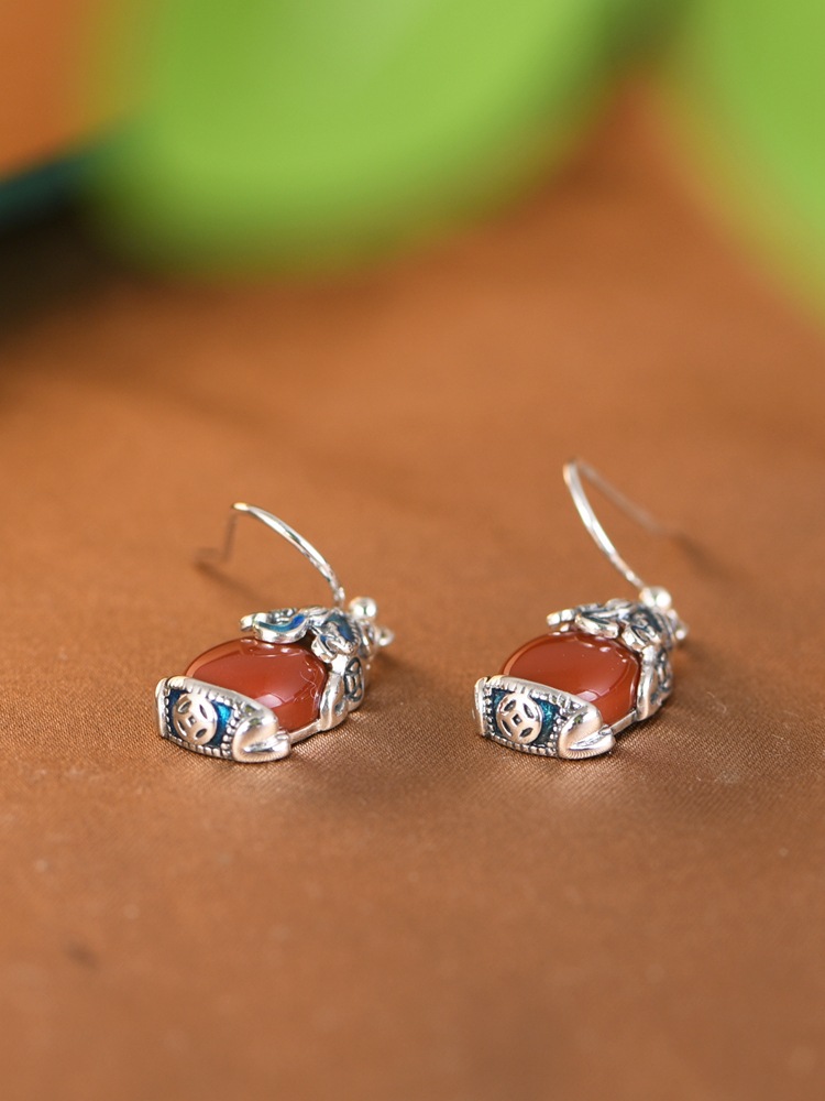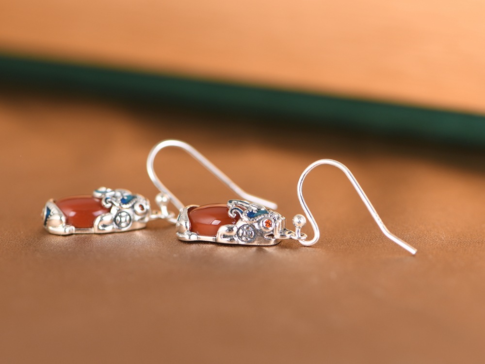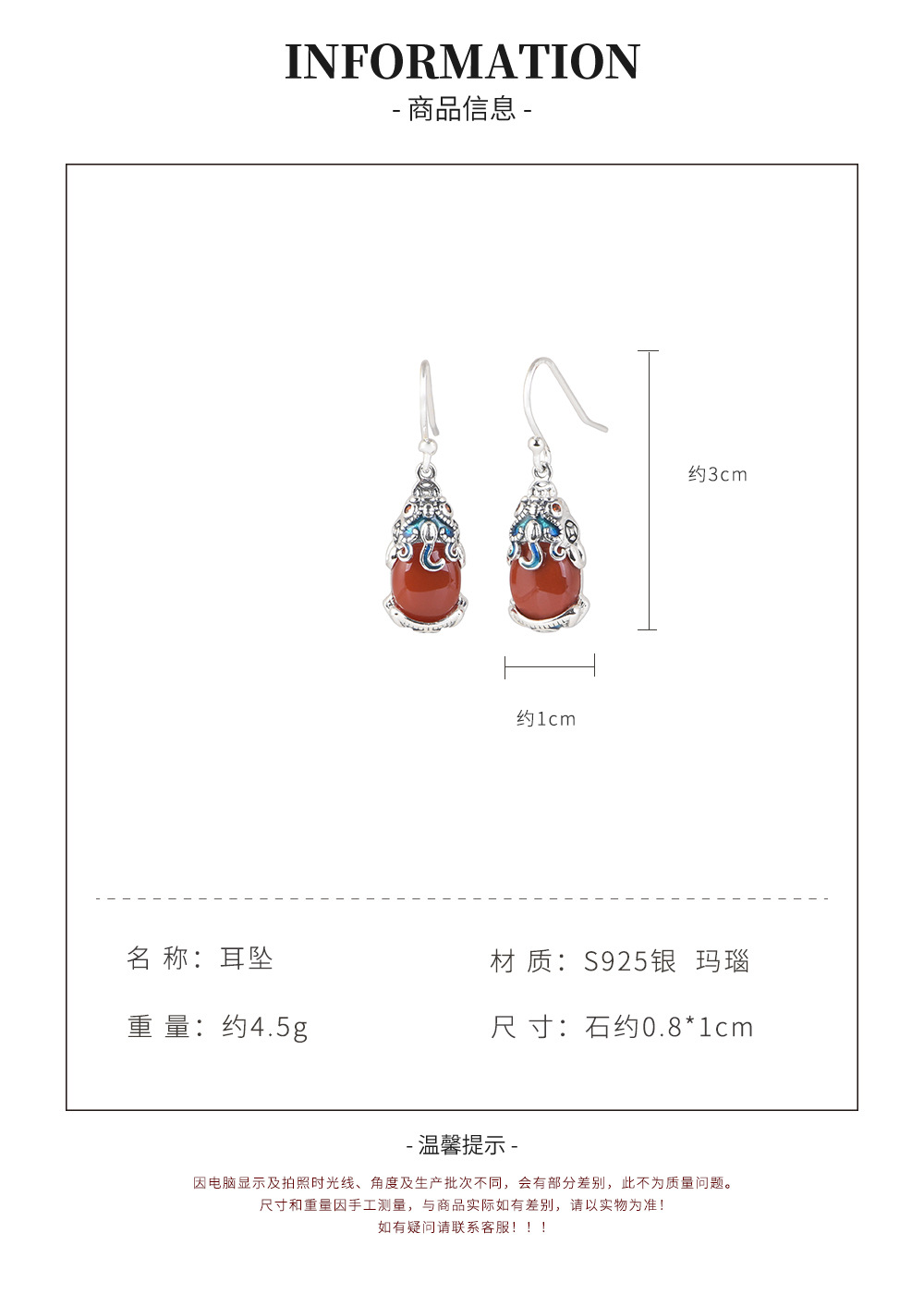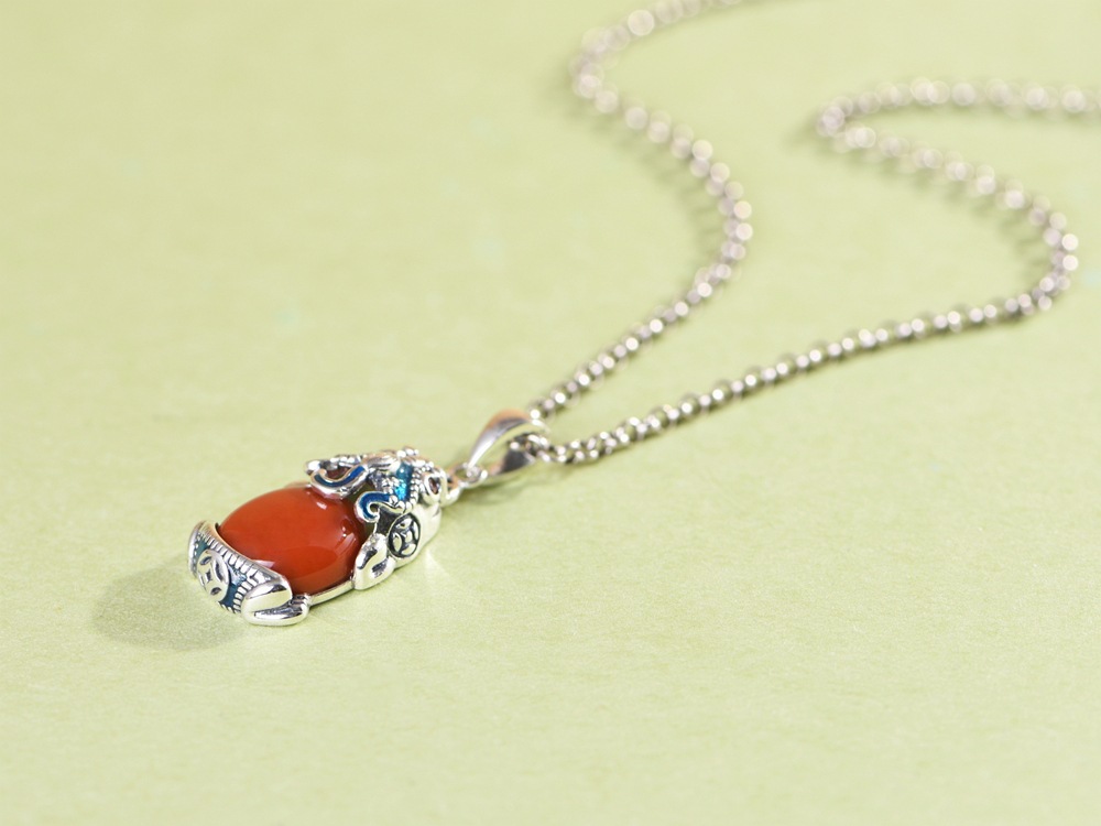 【鸿运貔貅】S925银貔貅烧蓝镶蛋形南红玛瑙瑞兽戒指吊坠【SCH-TRS13773】