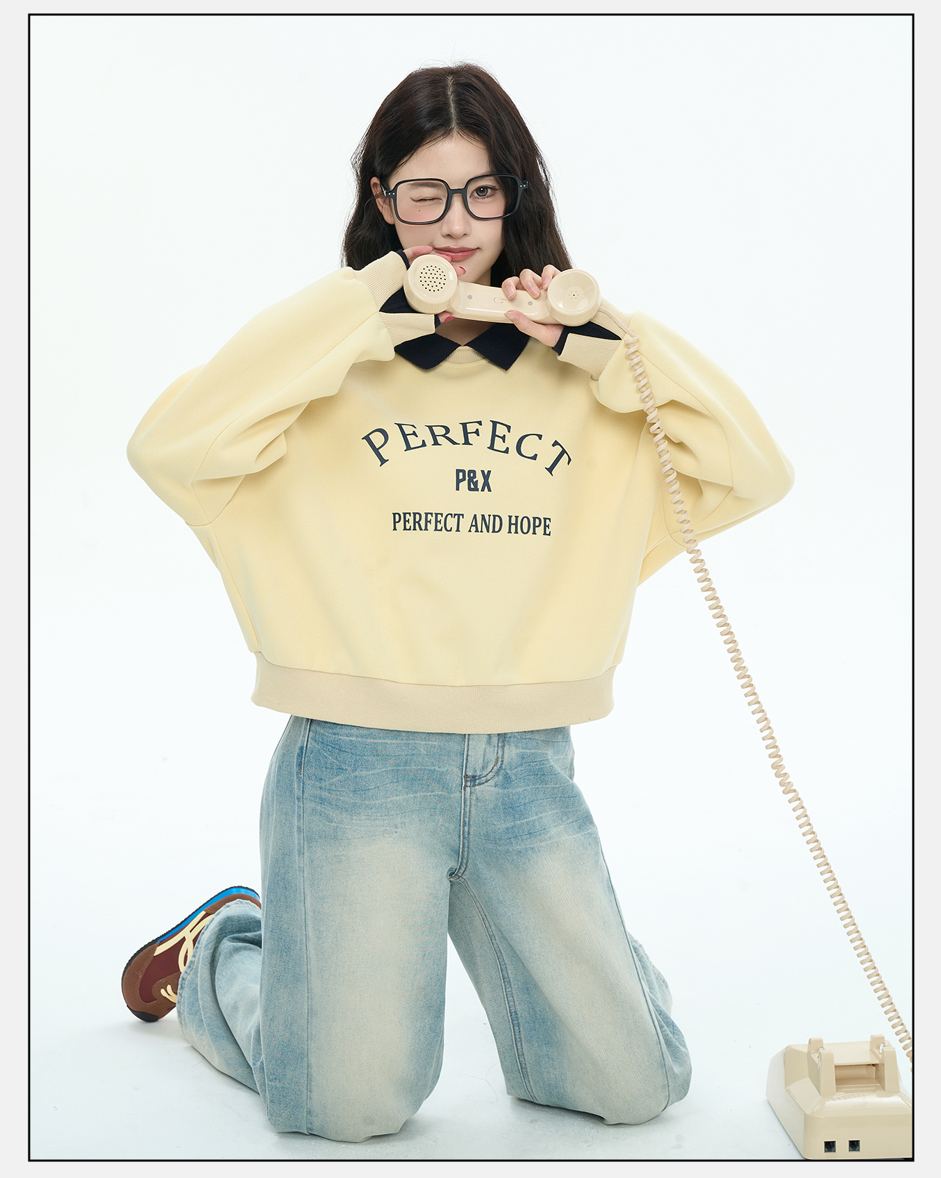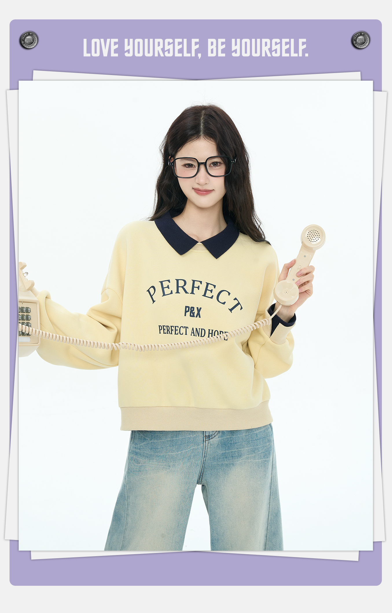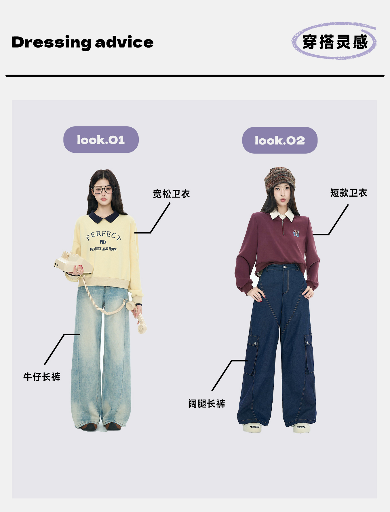 P&X设计师女装2025秋季宽松型长袖学院风短款卫衣 825317142 黄色
