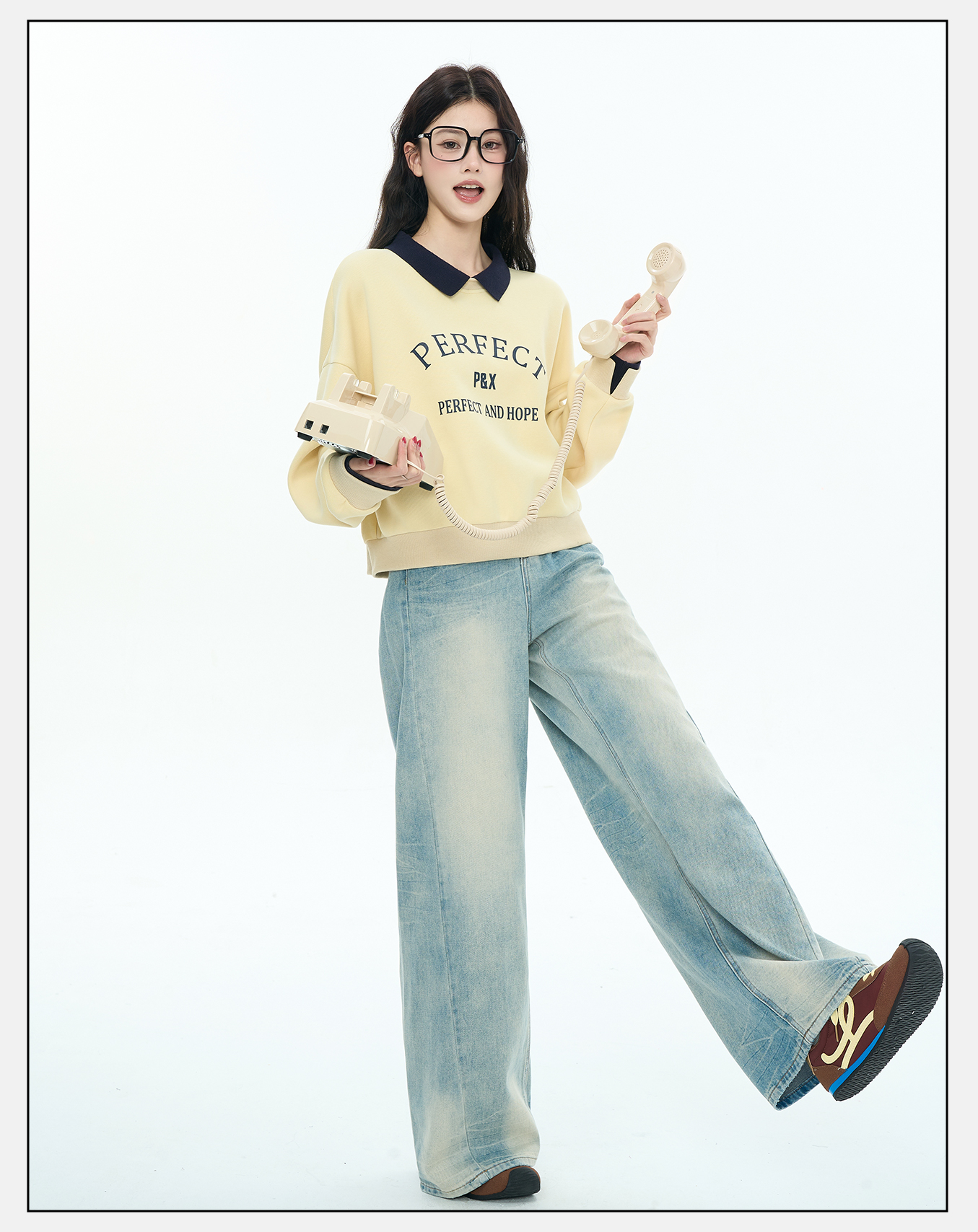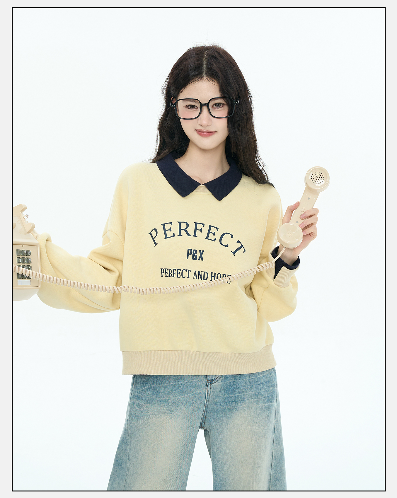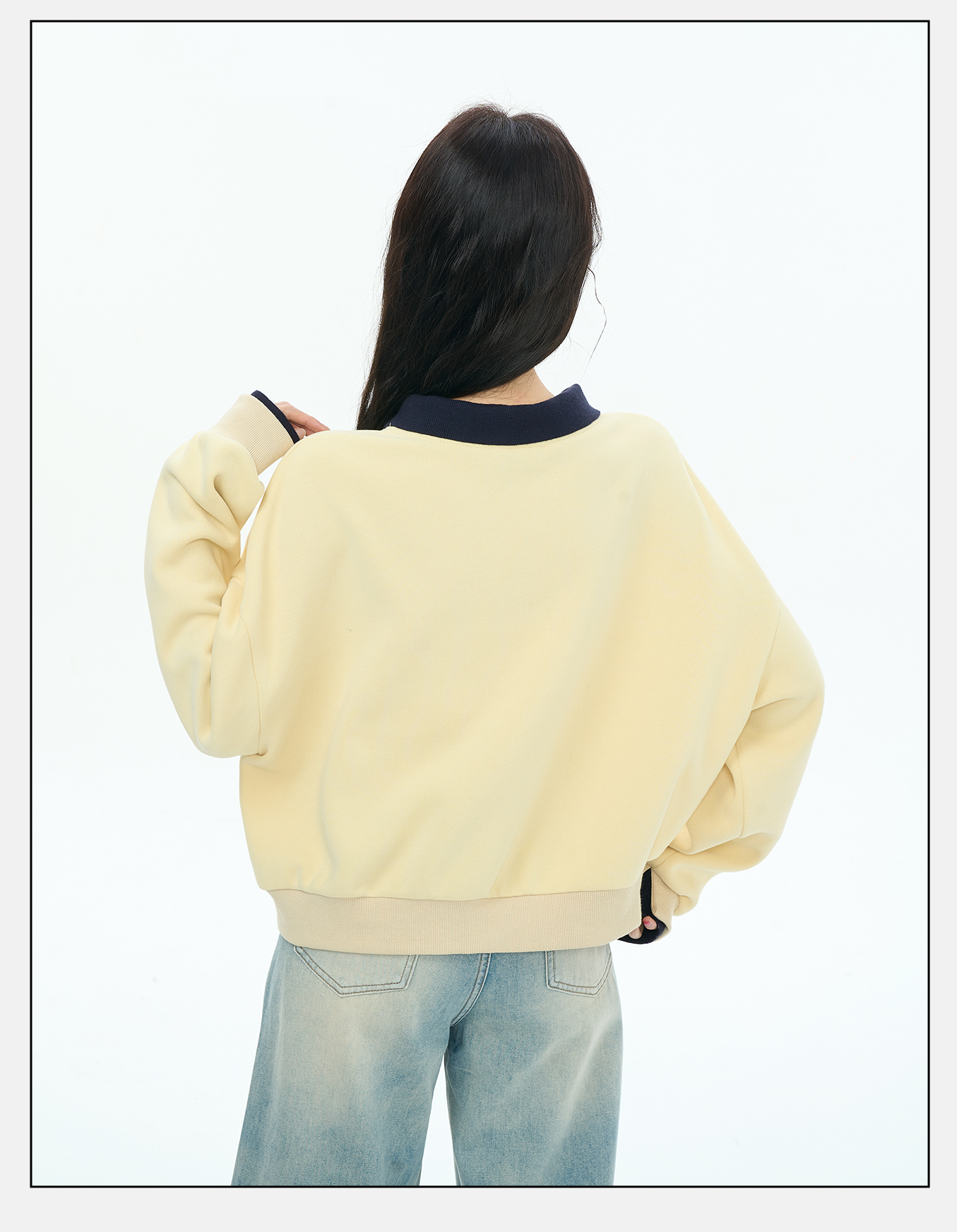 P&X设计师女装2025秋季宽松型长袖学院风短款卫衣 825317142 黄色