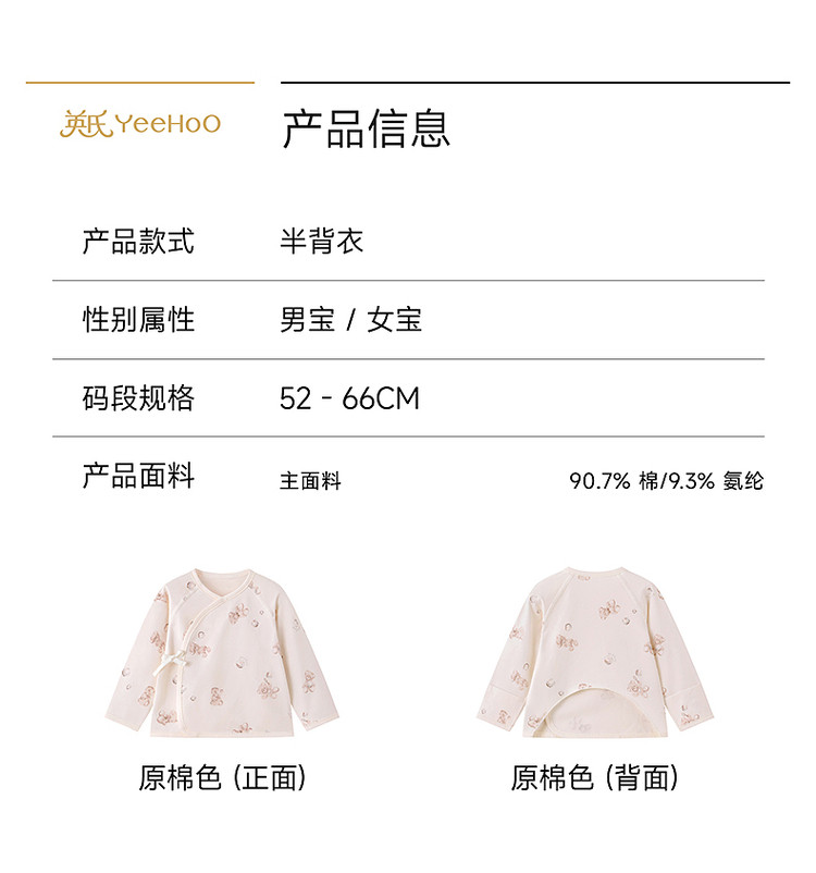 英氏婴儿新生10A抗菌半背衣四季柔软长袖可爱新款YLEAJ0S002A