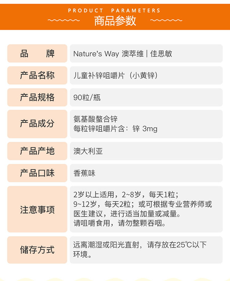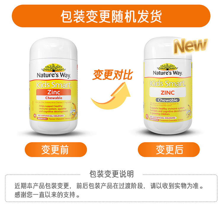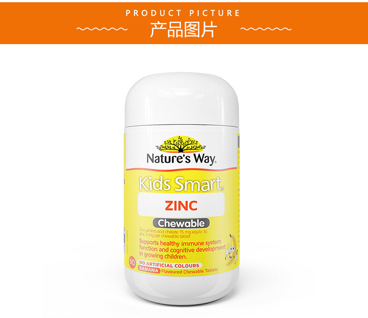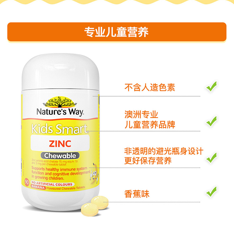 【跨境进口】Nature's way 佳思敏 小黄锌儿童咀嚼片50粒|报关后不支持退换货 介意慎拍