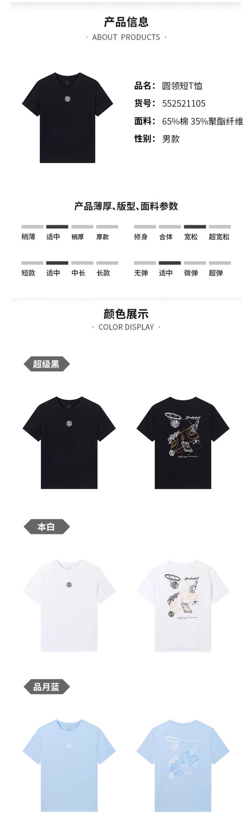 361度运动短袖衫2025夏季新款圆领休闲男运动透气短袖T恤衫552521105-4
