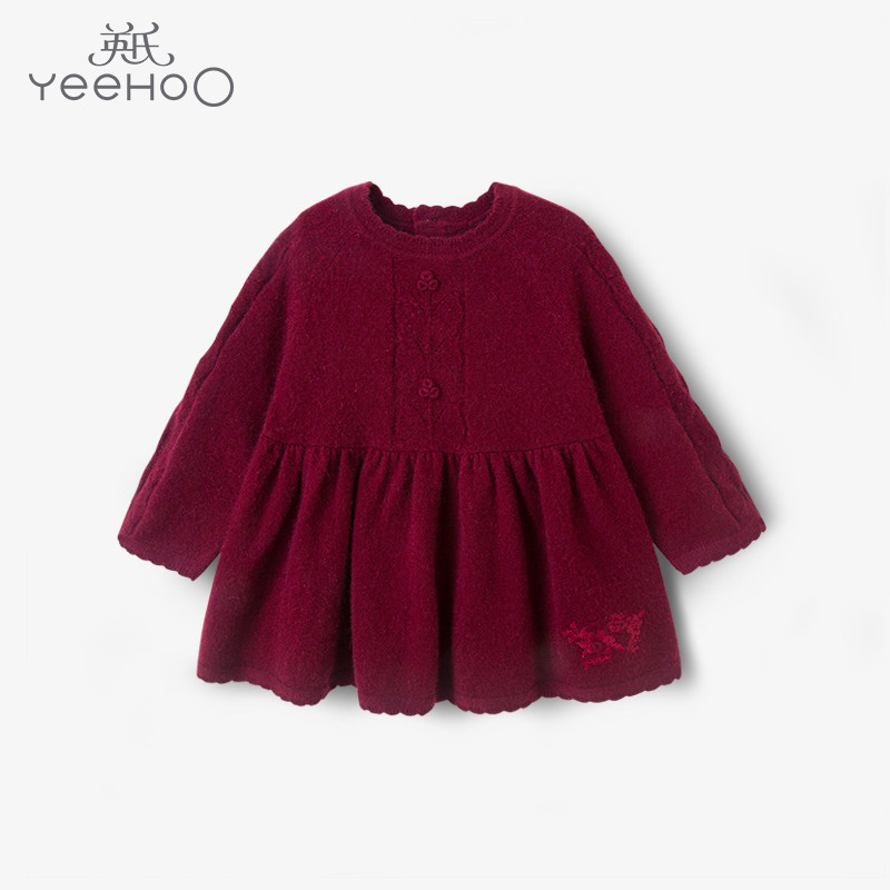英氏女童长袖连衣裙秋冬高定羊绒公主裙子YRLAJ32463A