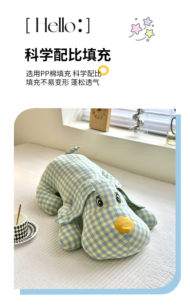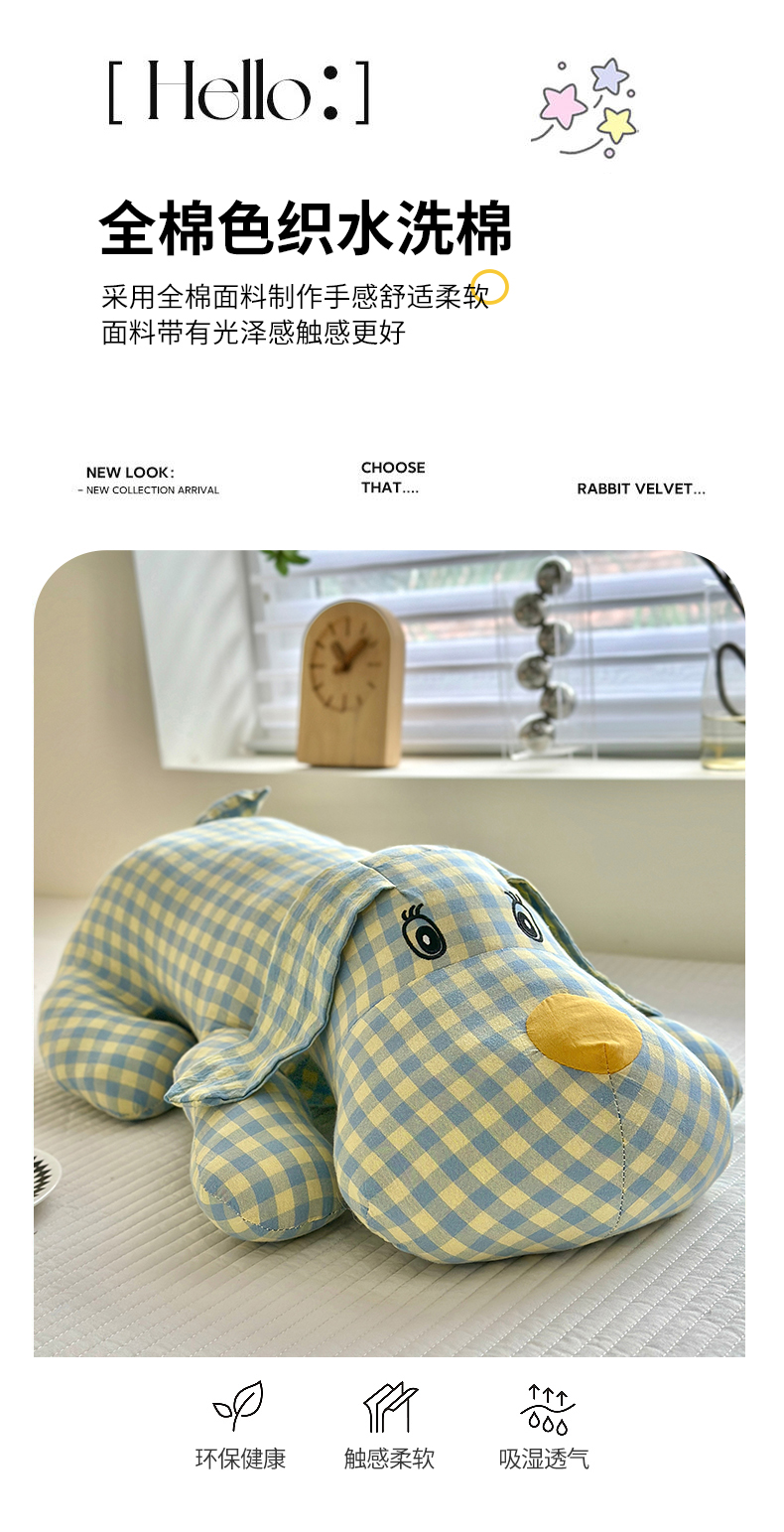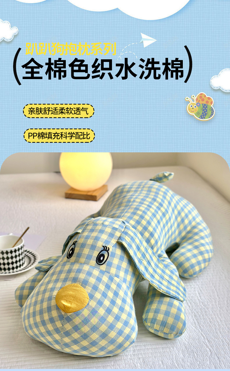 纯棉全棉色织水洗棉格子小萌狗趴趴狗抱枕