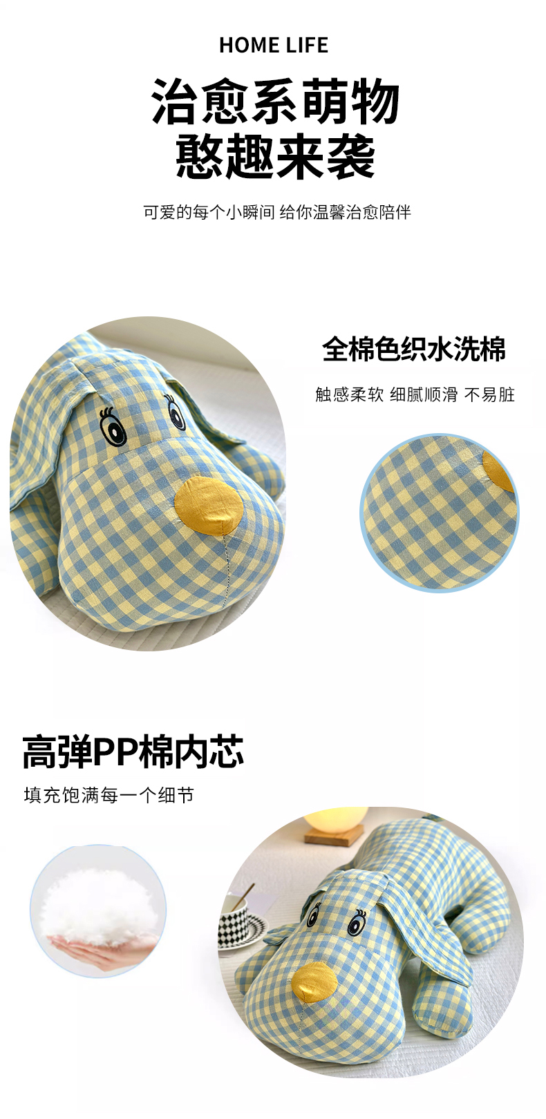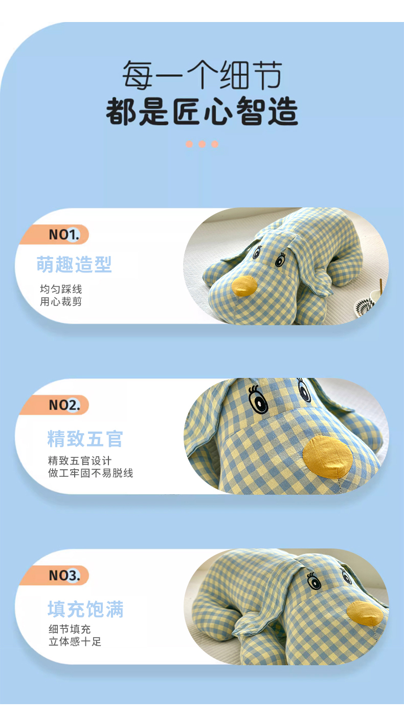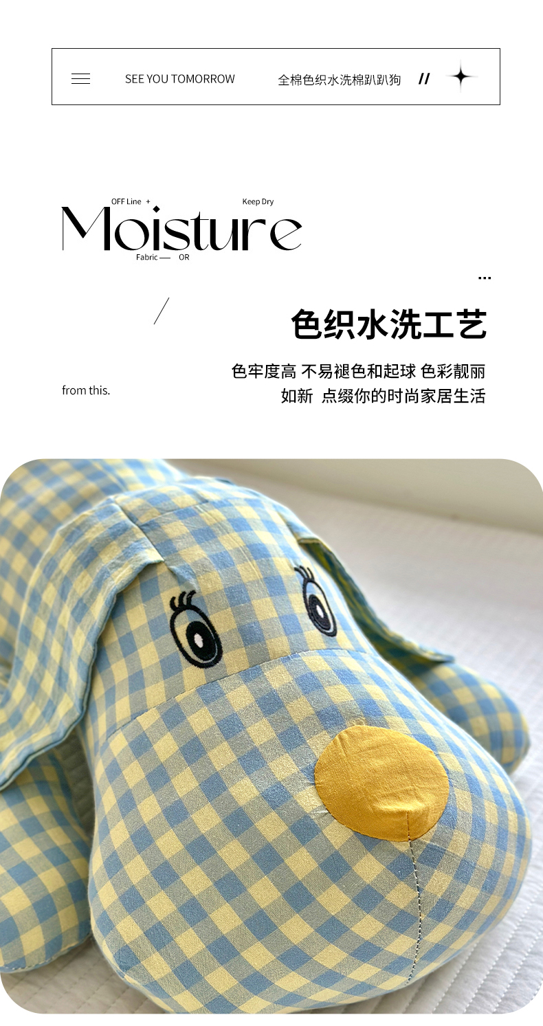 纯棉全棉色织水洗棉格子小萌狗趴趴狗抱枕