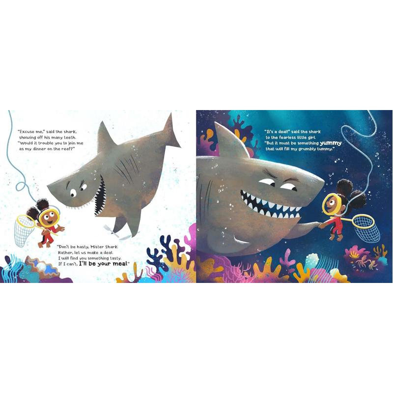 An underwater trickster tale jumps off the pages of this rhyming picture book romp. A clever little girl "with a net for catching pearls" meets a shark who wants nothing more than to eat her for dinner.