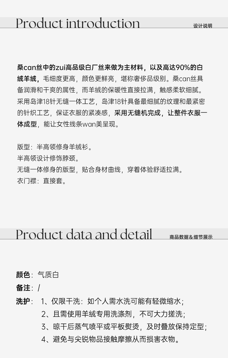 余潇潇【暖意冬日】山羊绒桑蚕丝混纺拼无缝一体工艺半高领羊绒衫