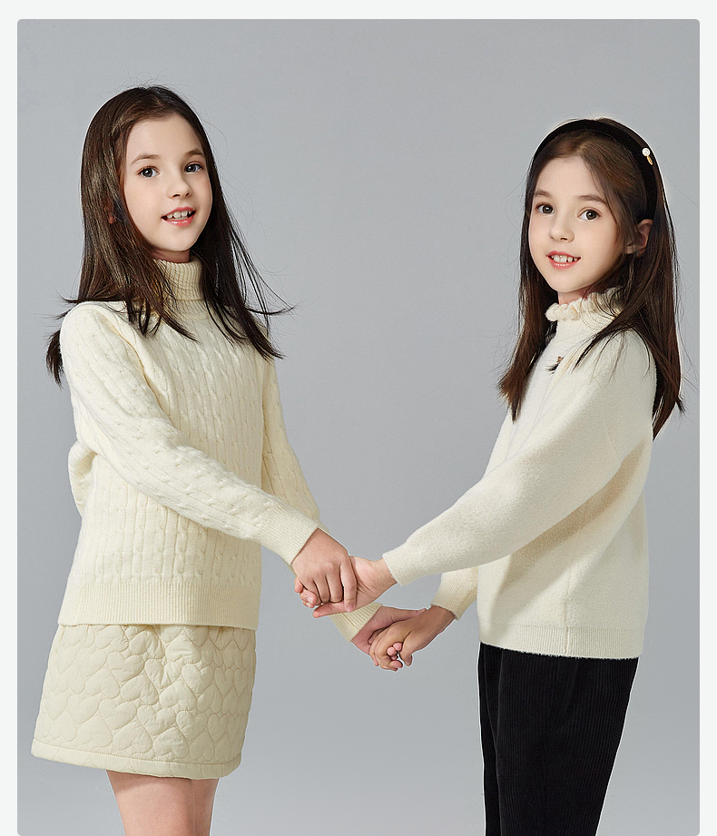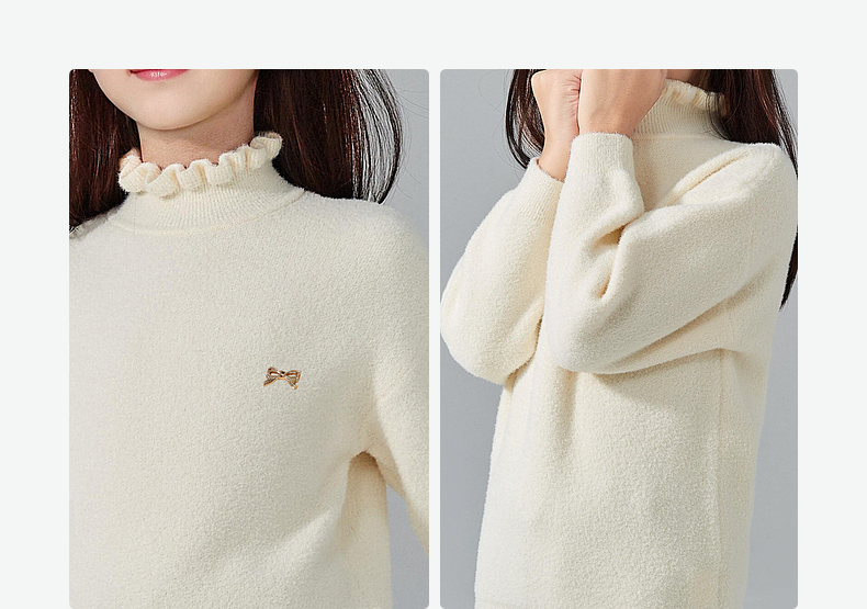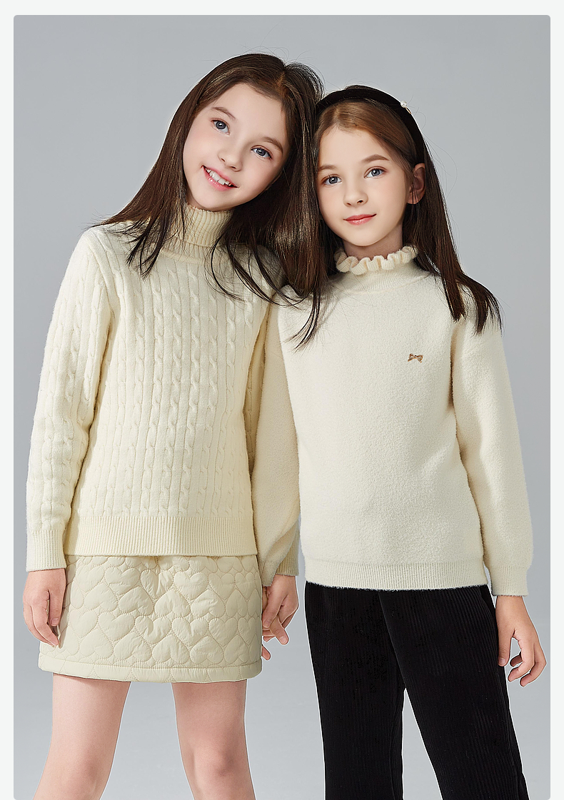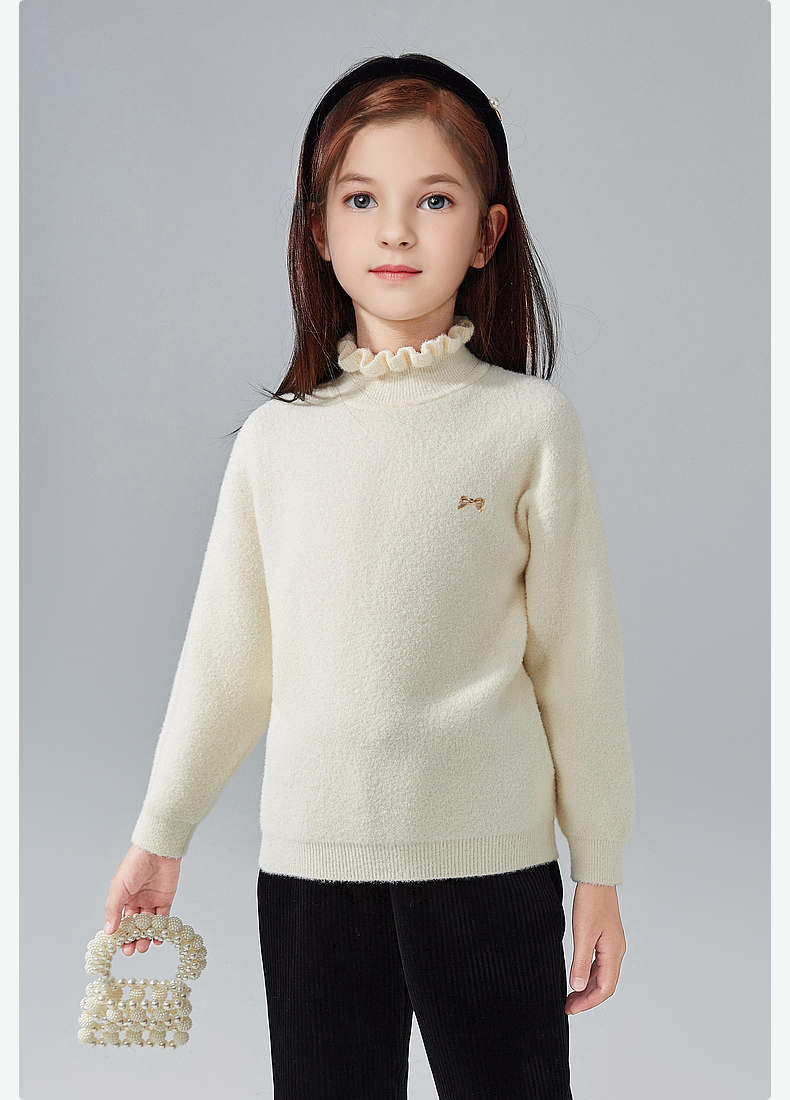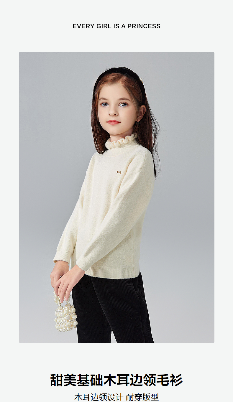 笛莎Deesha 童装女童毛衫2024冬新款甜美基础木耳边领毛衫