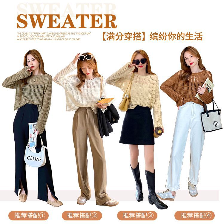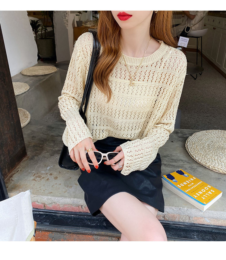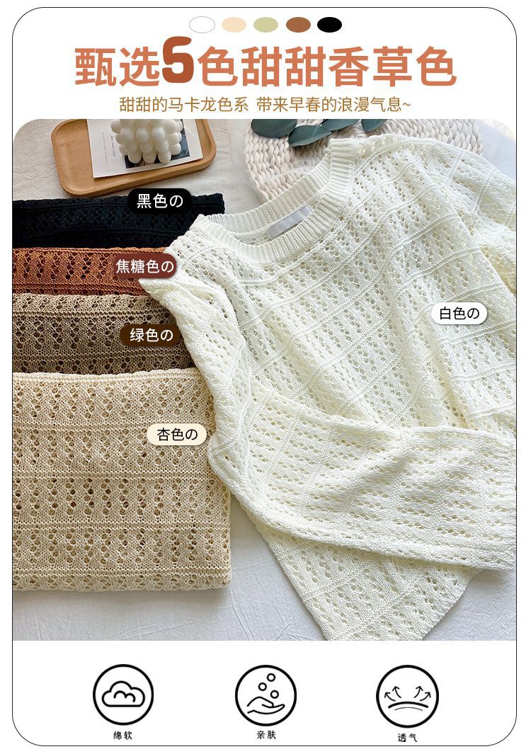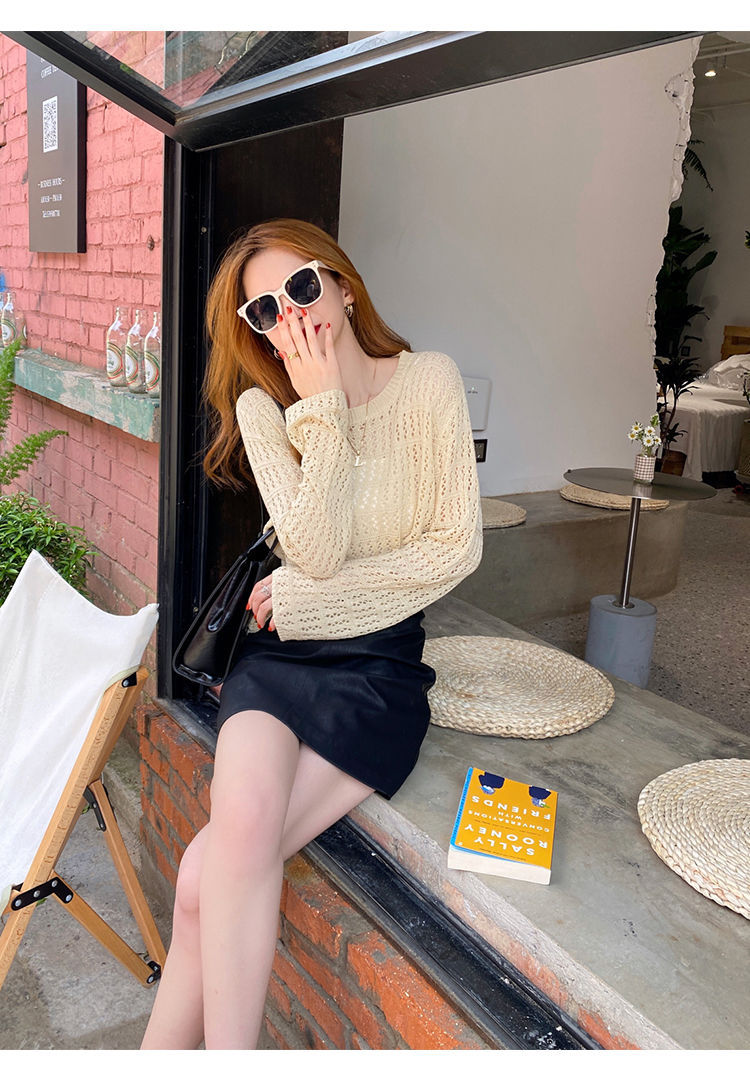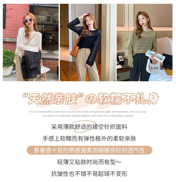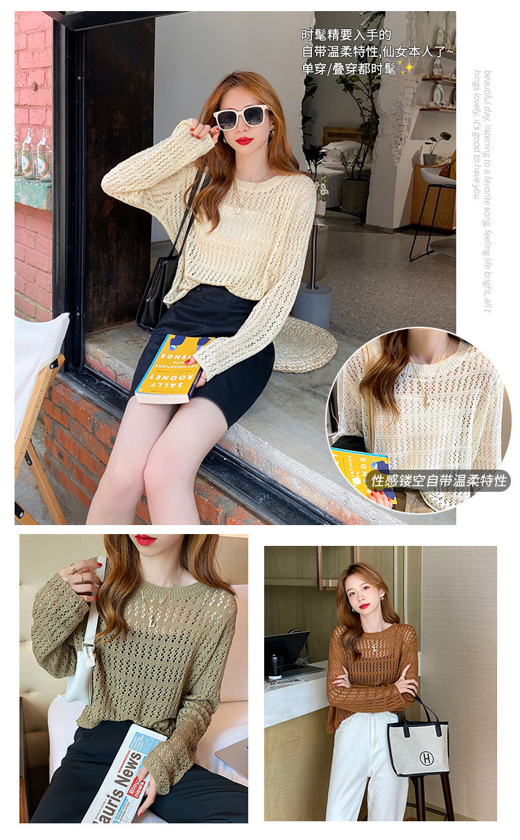 【镂空针织衫!】女薄款毛衣2023夏装新款长袖宽松外套小众别致短款上衣