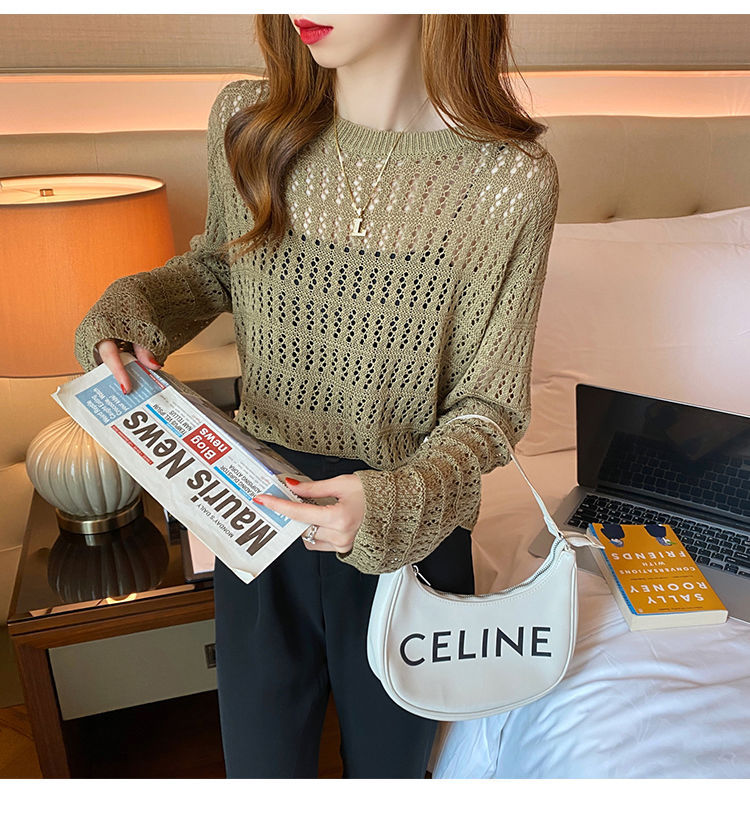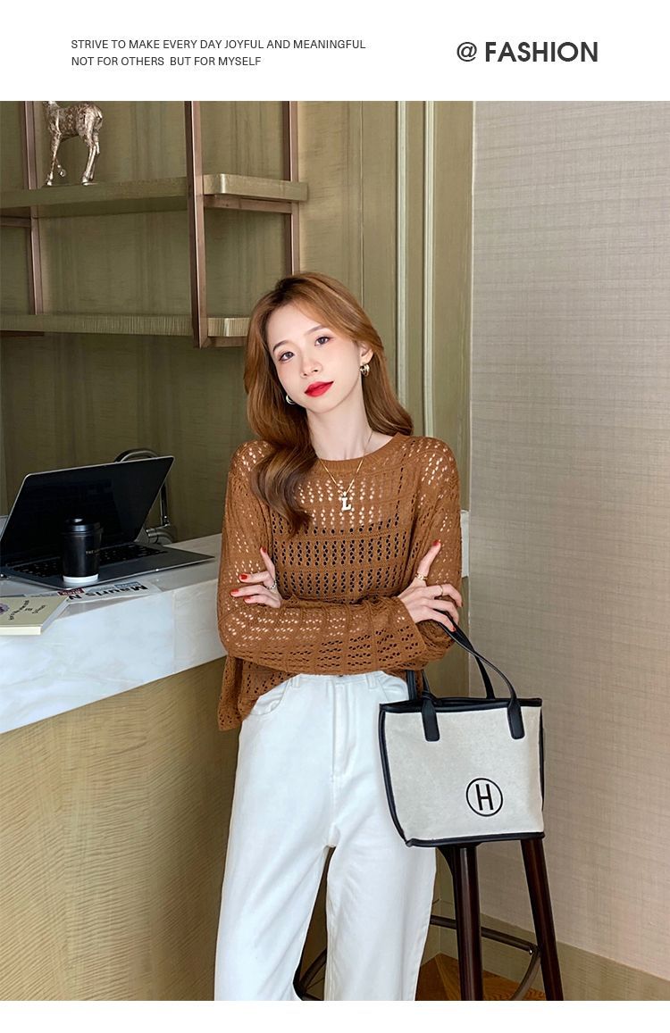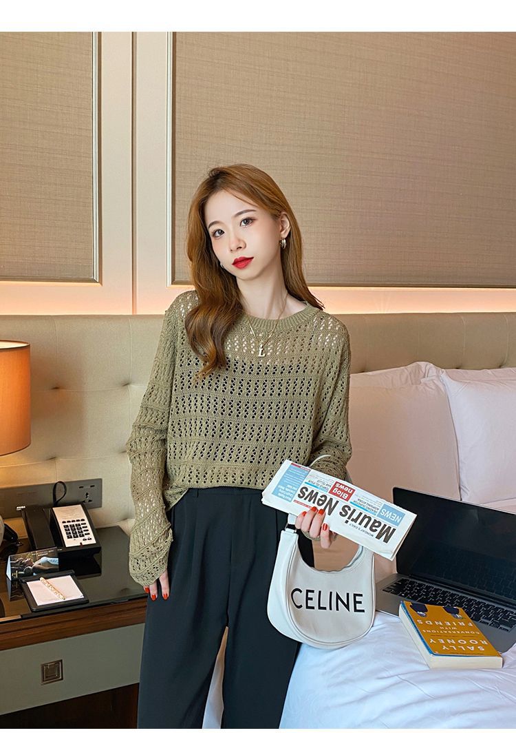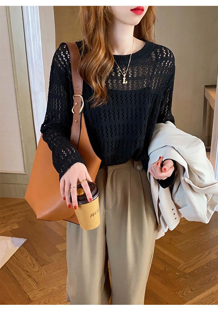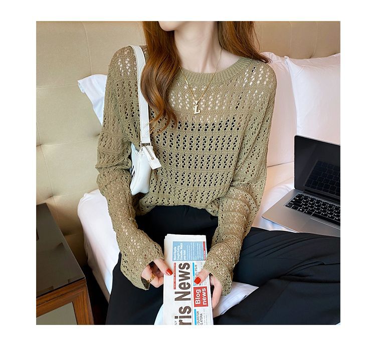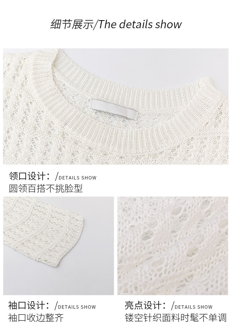 【镂空针织衫!】女薄款毛衣2023夏装新款长袖宽松外套小众别致短款上衣