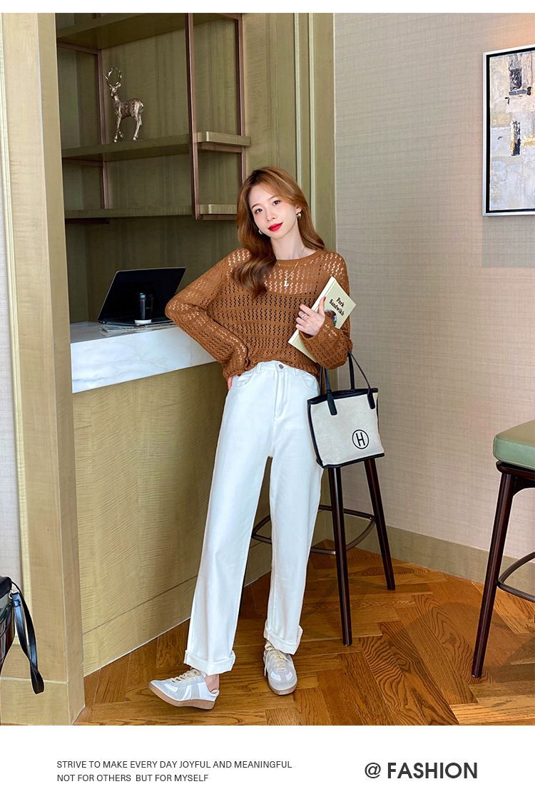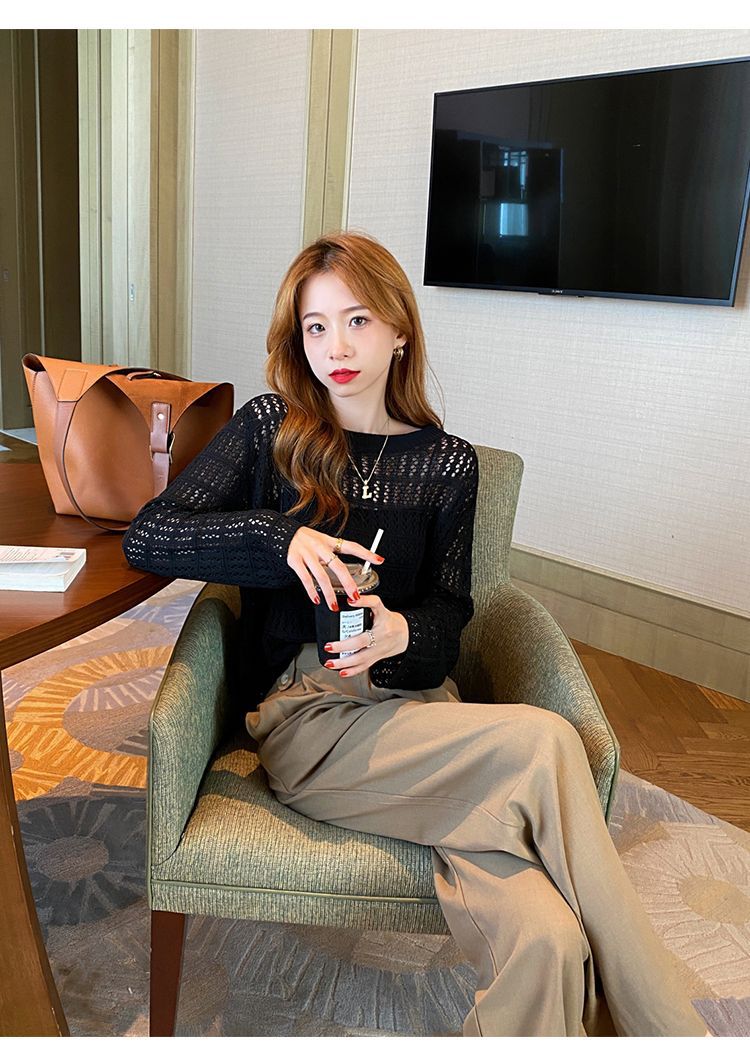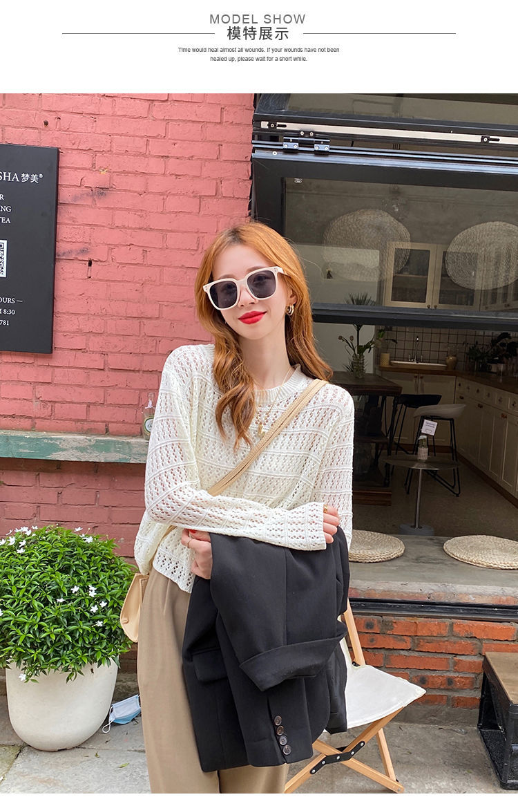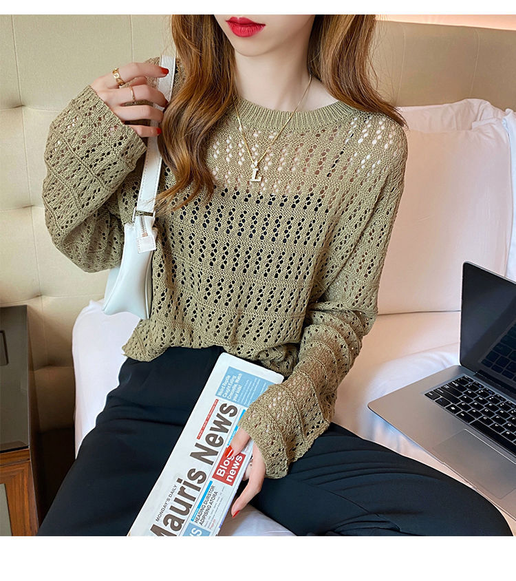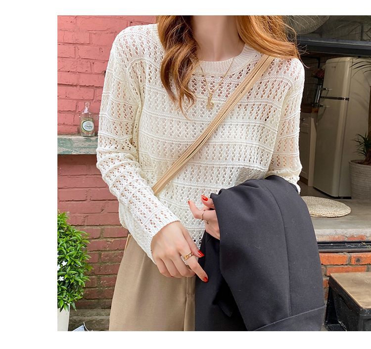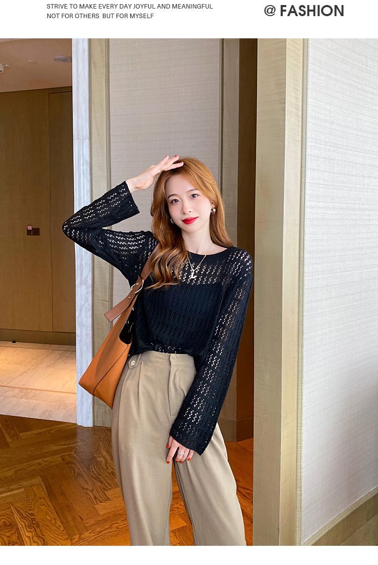 【镂空针织衫!】女薄款毛衣2023夏装新款长袖宽松外套小众别致短款上衣