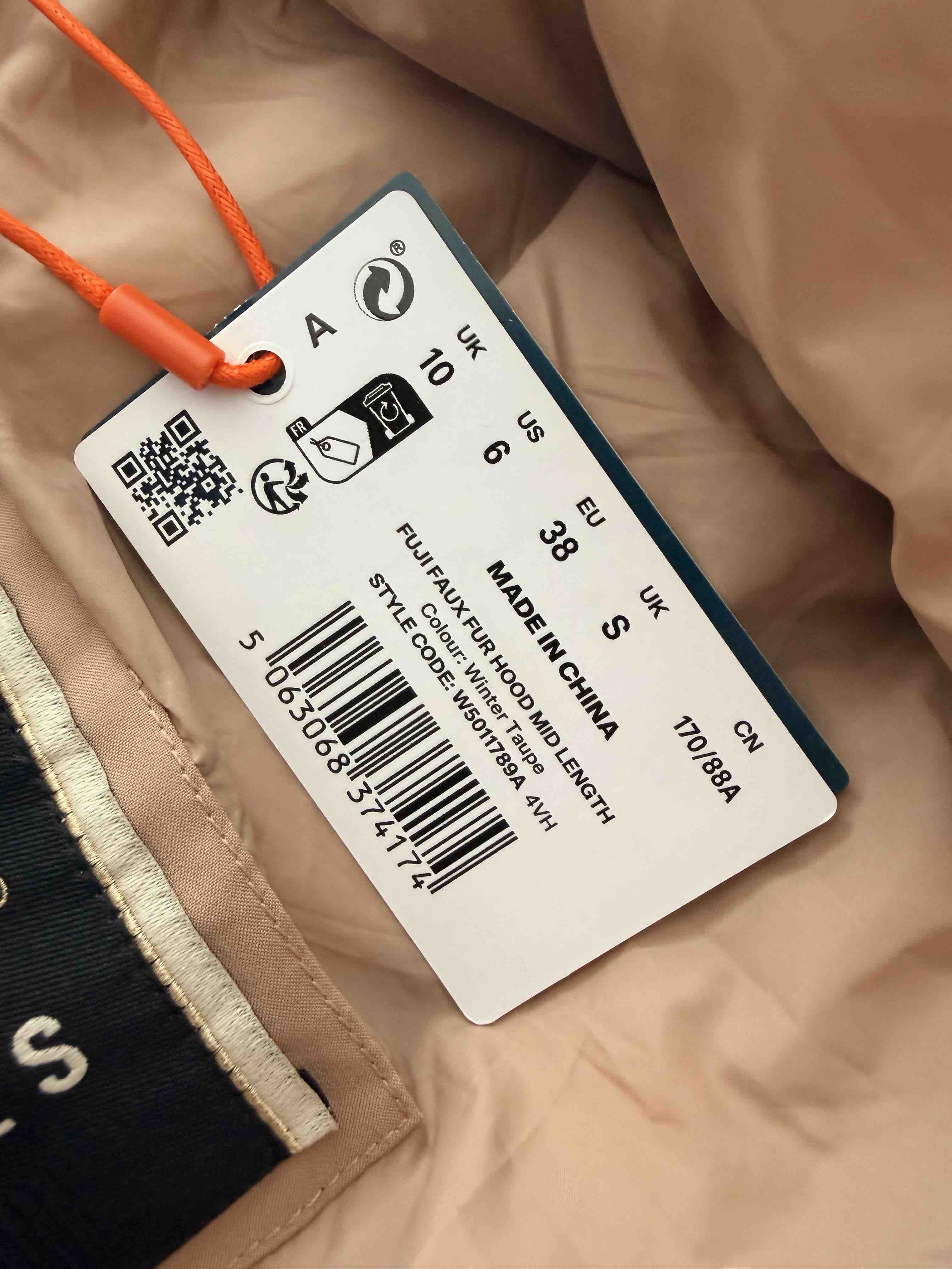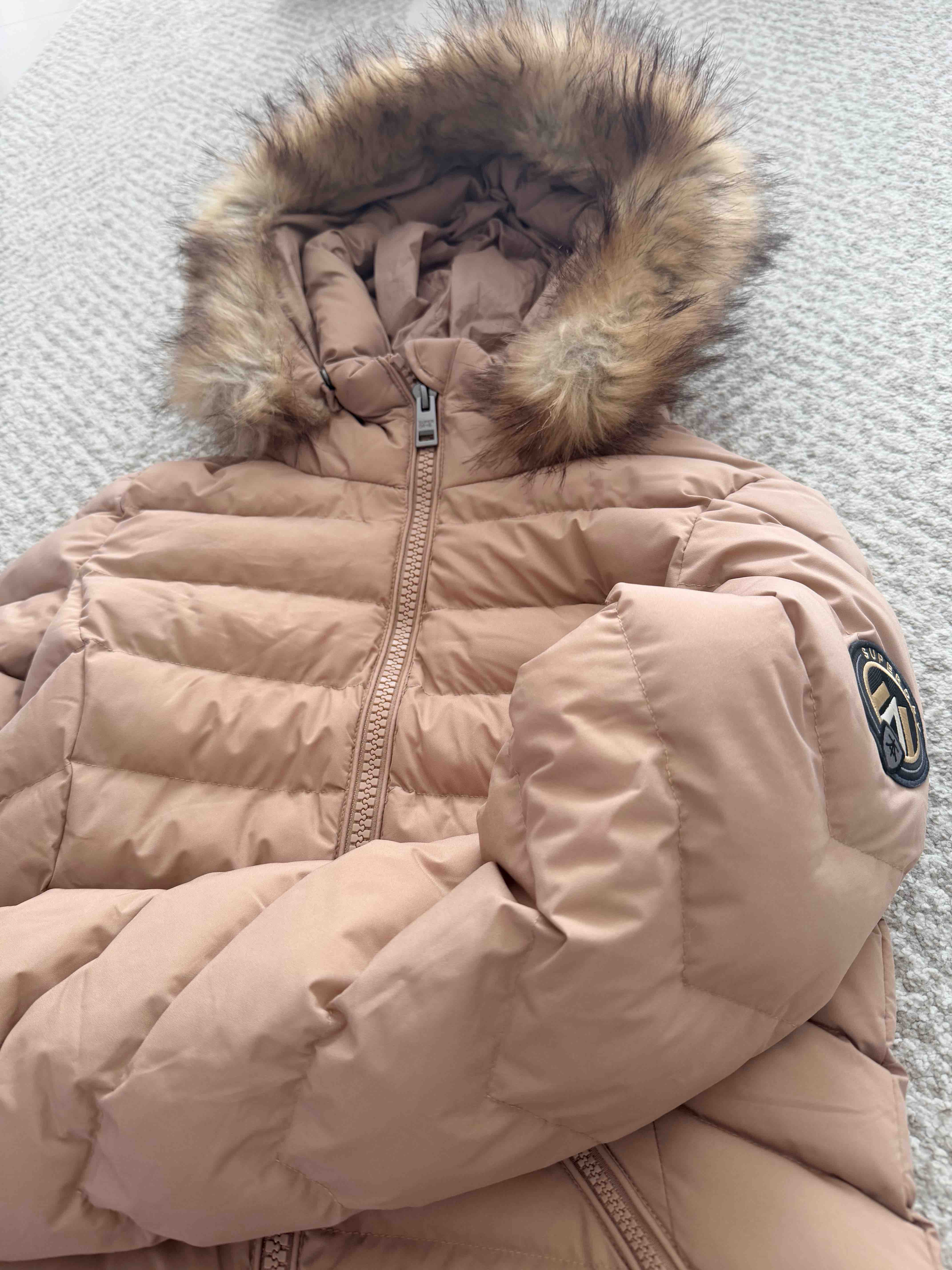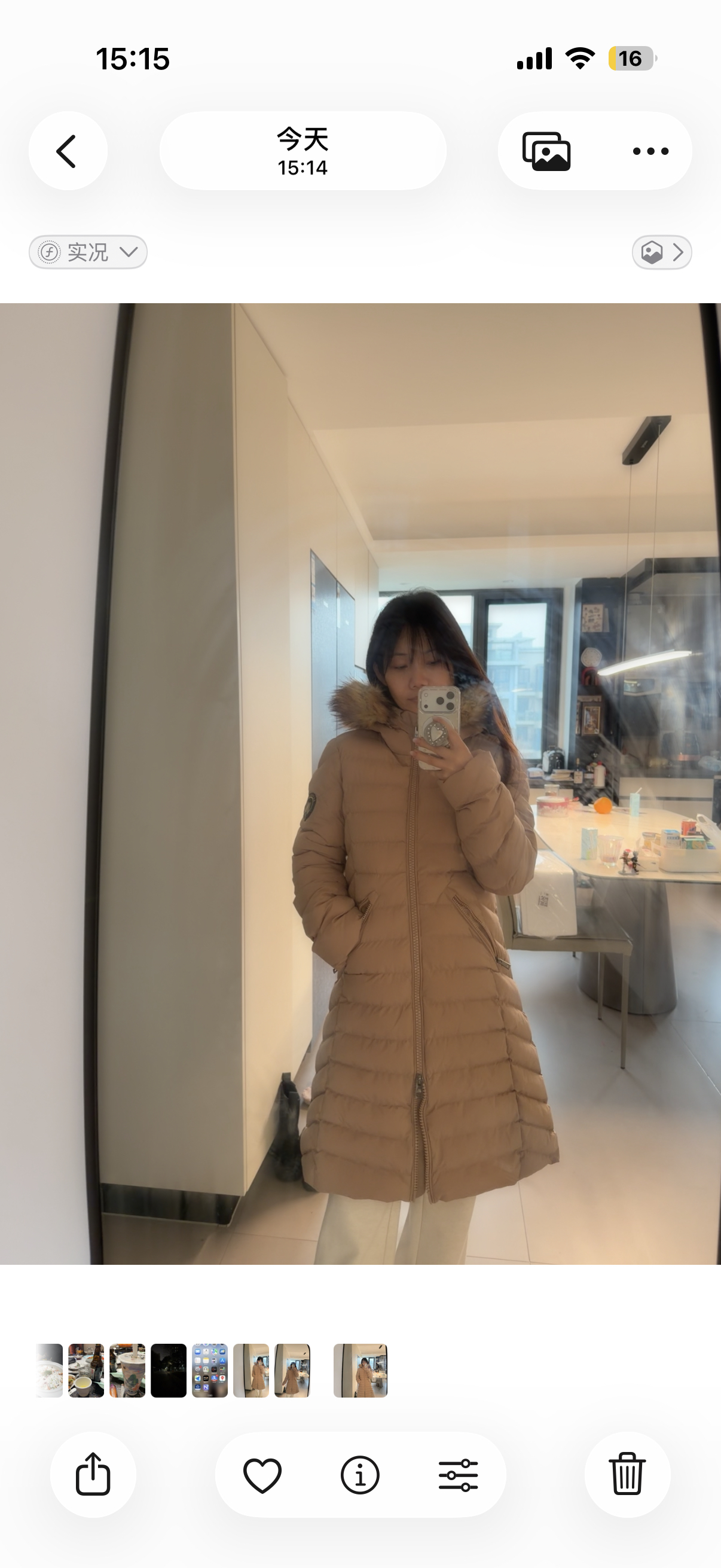 厚款棉衣,保暖性很强。中长款,超级显高显瘦,视觉-20斤+10CM!!粉嫩的柔纱杏,这个颜色今年还挺火。图片压缩后颜色不太正,以官网颜色为准,上身惊艳!!这哪是这个价格能买到的棉衣。天猫国际1299元,其实也不贵。我们这价格零头不到。能穿的直接冲,到手惊叹!主洗标齐全,有吊牌。