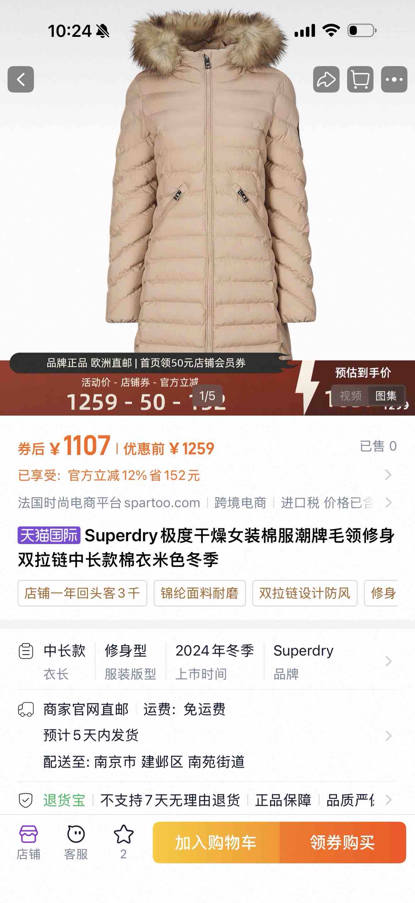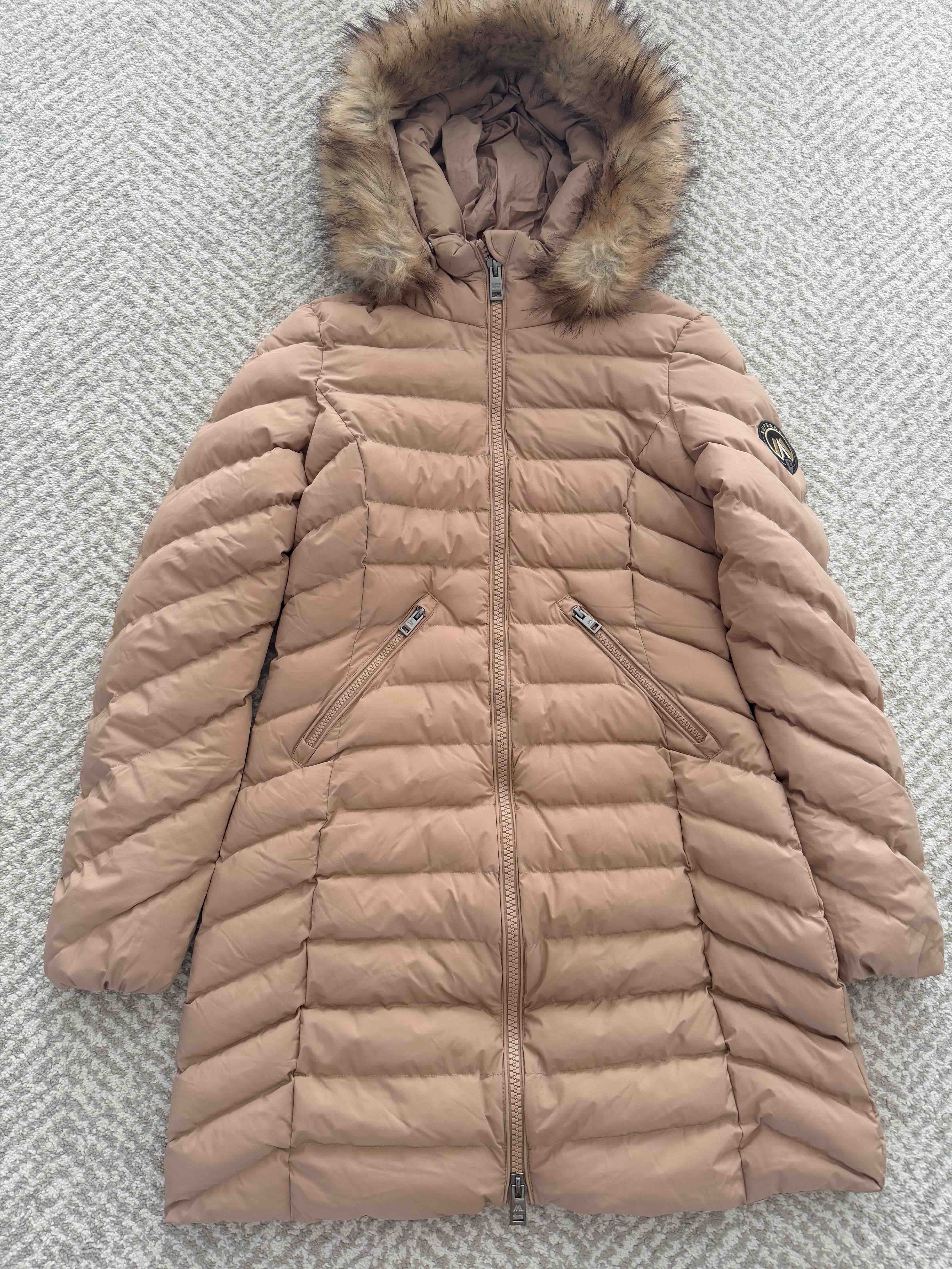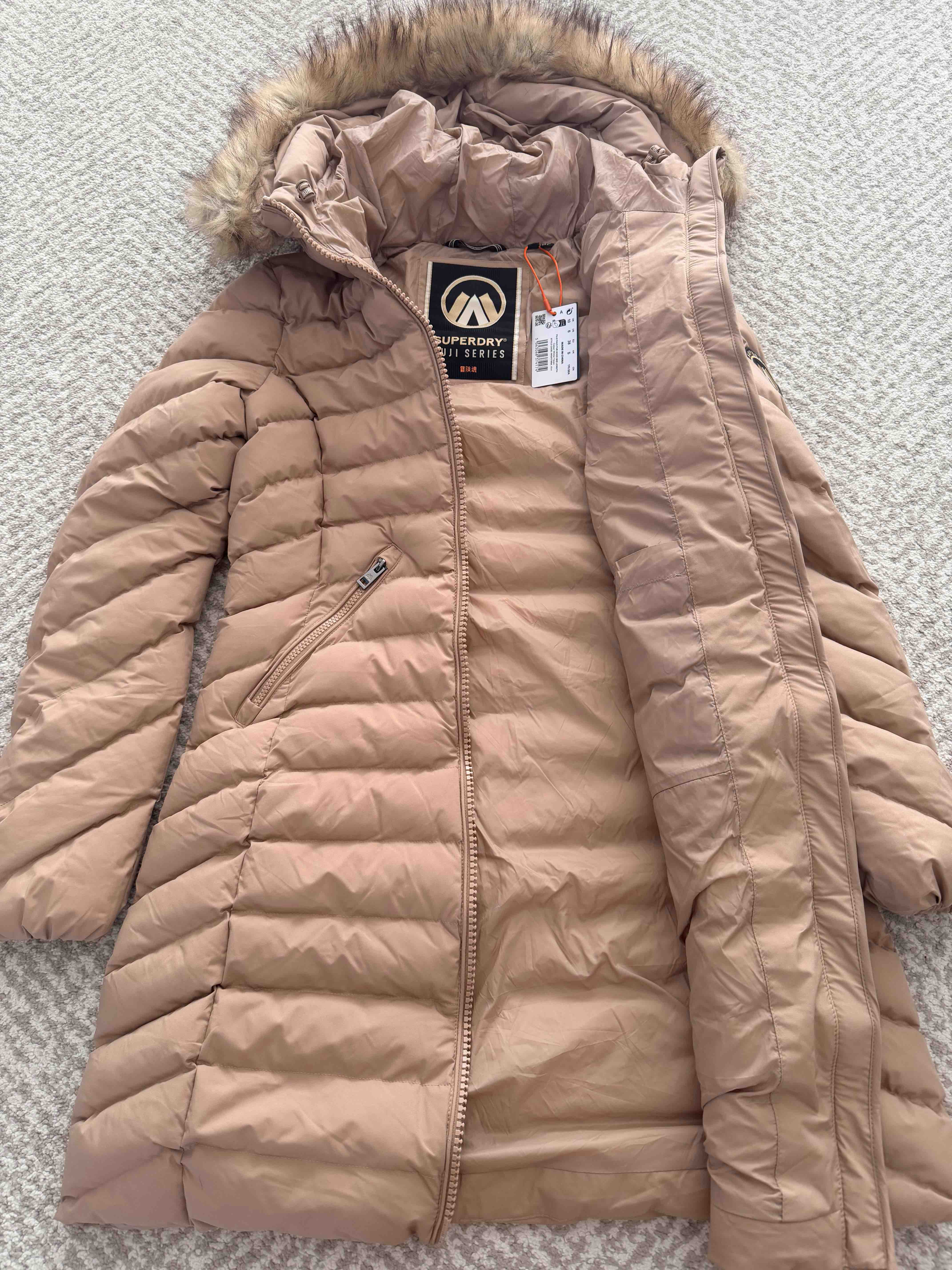 厚款棉衣,保暖性很强。中长款,超级显高显瘦,视觉-20斤+10CM!!粉嫩的柔纱杏,这个颜色今年还挺火。图片压缩后颜色不太正,以官网颜色为准,上身惊艳!!这哪是这个价格能买到的棉衣。天猫国际1299元,其实也不贵。我们这价格零头不到。能穿的直接冲,到手惊叹!主洗标齐全,有吊牌。