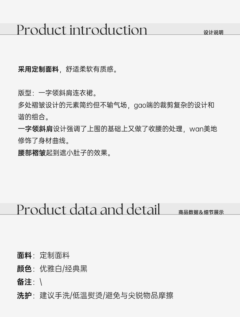 余潇潇【优雅女神】早春舒适柔软褶皱显瘦一字领斜肩连衣裙