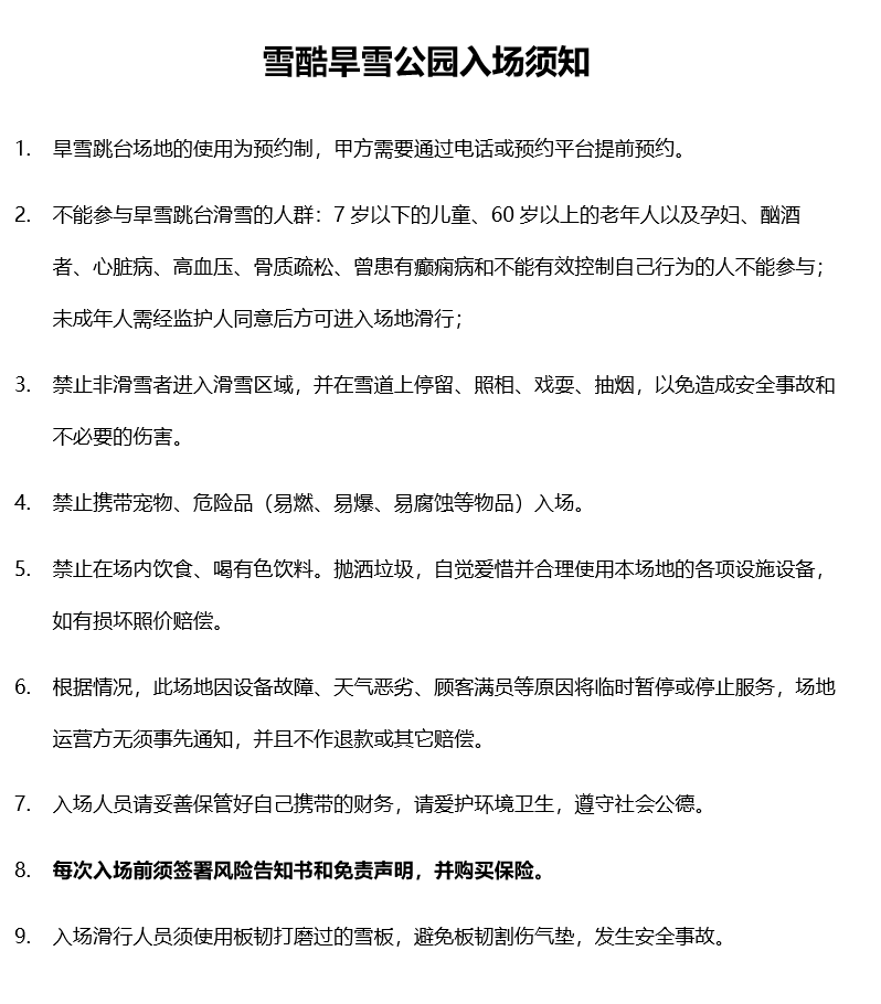 以上声明事项,参加者本人已详细阅读并了解所参加的活动的危险性、滑雪的原理以及其隐藏潜在的恐造成个人身心伤害、残疾或死亡,甚至造成他人身体及财产上等损害的风险性。为保障本人及他人身心安全,参加者本人同意确实遵守并对本人疏忽、过失或故意等行为造成的任何事故承担所有责任。此致本活动属民间约伴出游,不属商业行为。故不承担任何因此而产生的民商事法律责任。此免责声明协议目的,旨在提高参加者对滑雪活动的认知及安心与安全。一旦报名参加,即代表无条件接受以上所有内容。