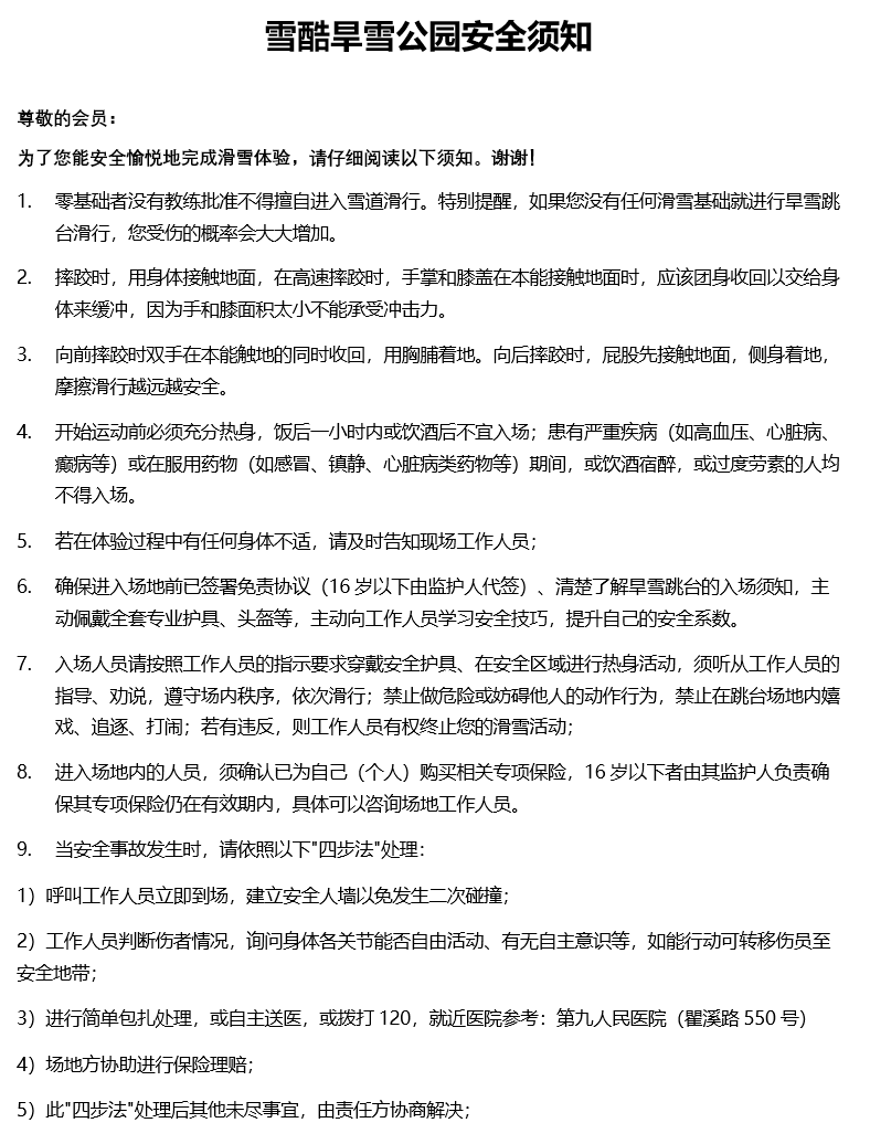 参加活动,即表明报名者经过合理判断,同意自行承担户外活动中的所有风险,包括利用交通工具及其他第三方设施的风险;对于活动中可能出现的意外事故,属于不可预知或即使预知也无法避免的安全事故,由自行投保的保险公司承担意外伤害保险赔付,雪场、旅行社、俱乐部、领队不为此承担责任;如因参加者本人疏忽、过失或故意等行为造成的事故(包括环保事故),除自负其责之外,还应对因此给他人所造成的损失损害负责,必要时将承担法律责任。