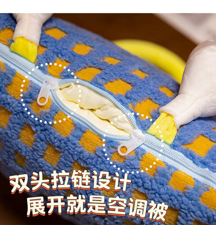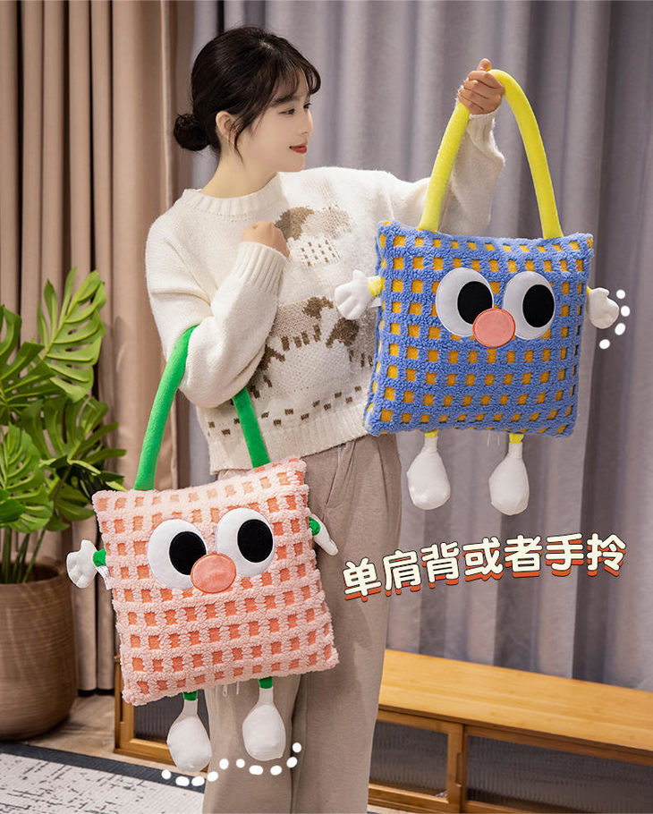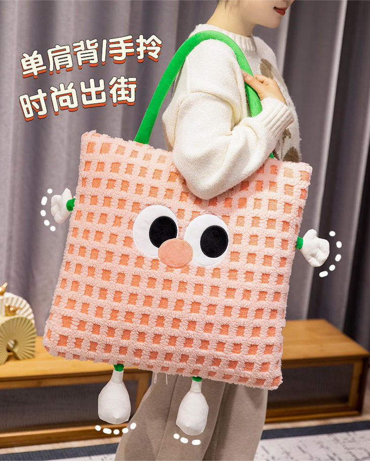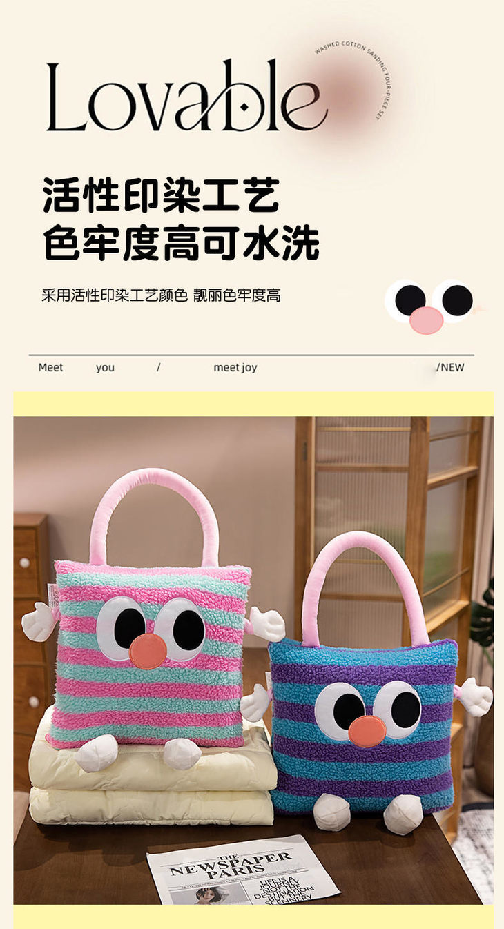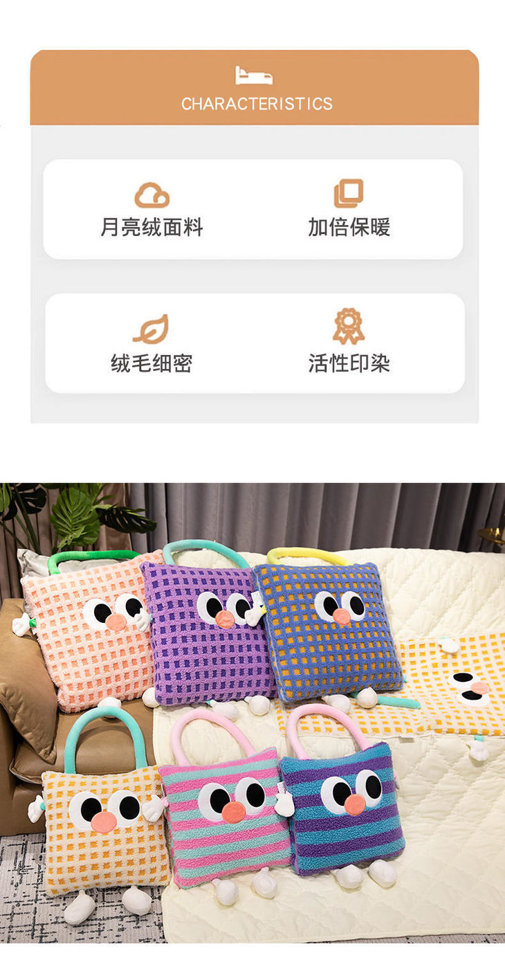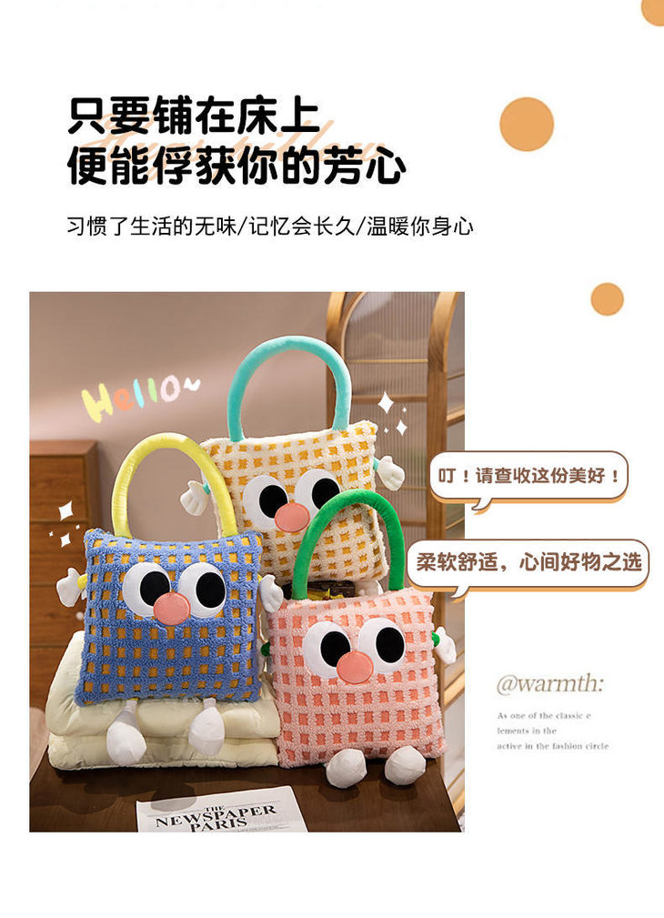 【既可以做抱枕也可以做坐垫】柔软细腻,保暖舒适,办公室午休卡通抱枕毯子空调被多巴胺大眼手拎抱枕二合一车载靠垫空调毯手提包包。rb