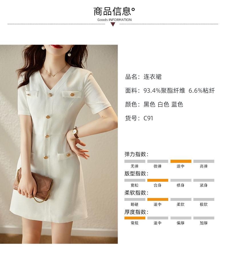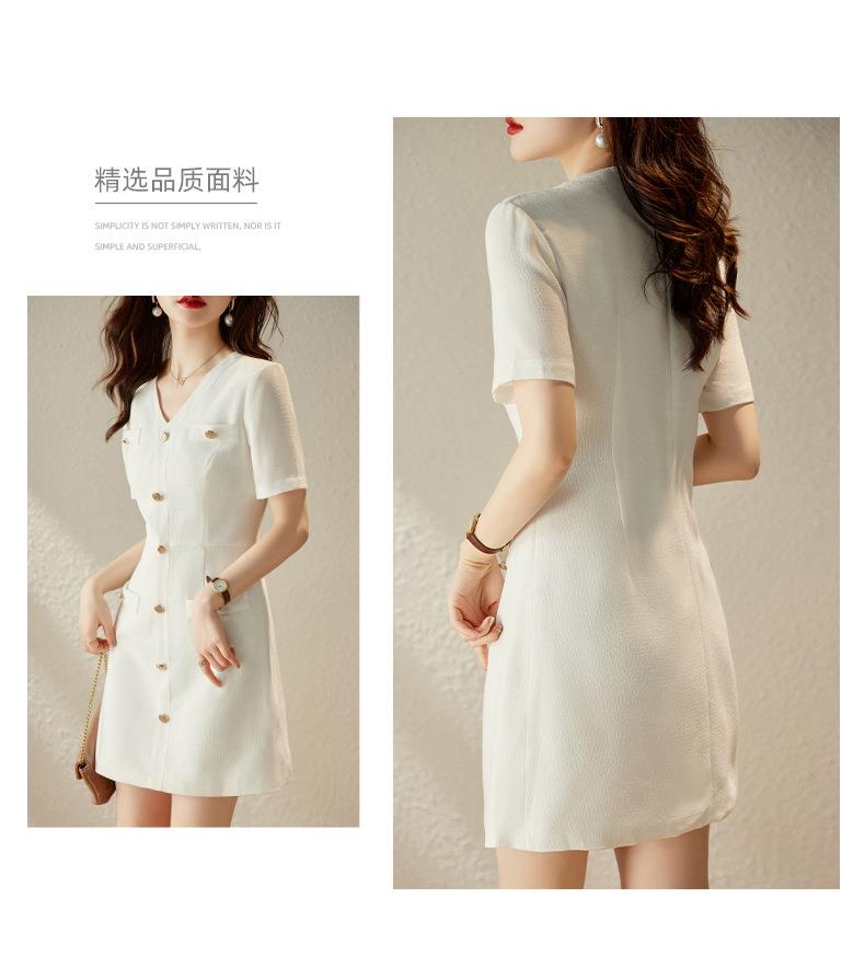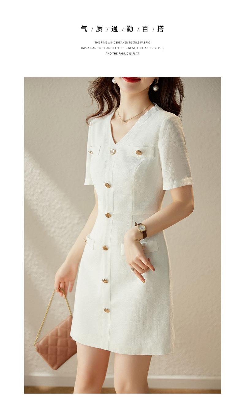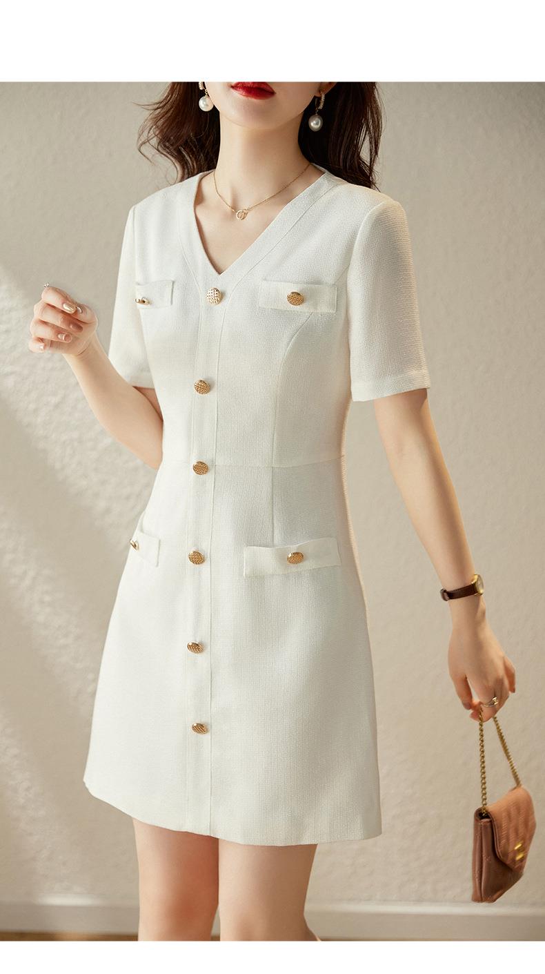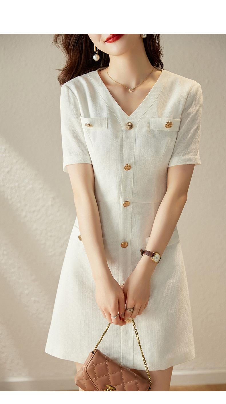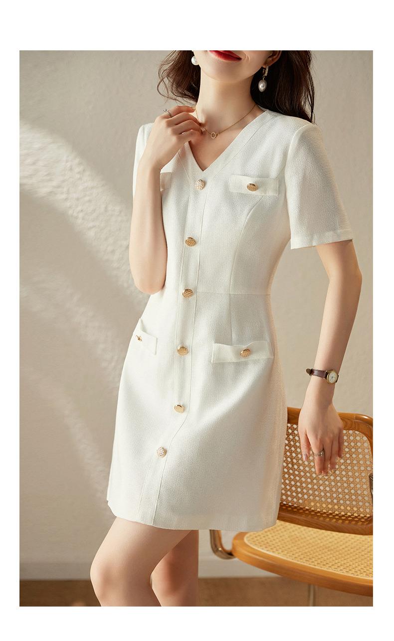 娜璐多 法式小香风白色连衣裙女2023夏季新款高级感气质名媛V领短袖裙子