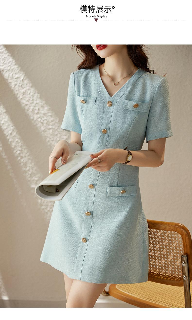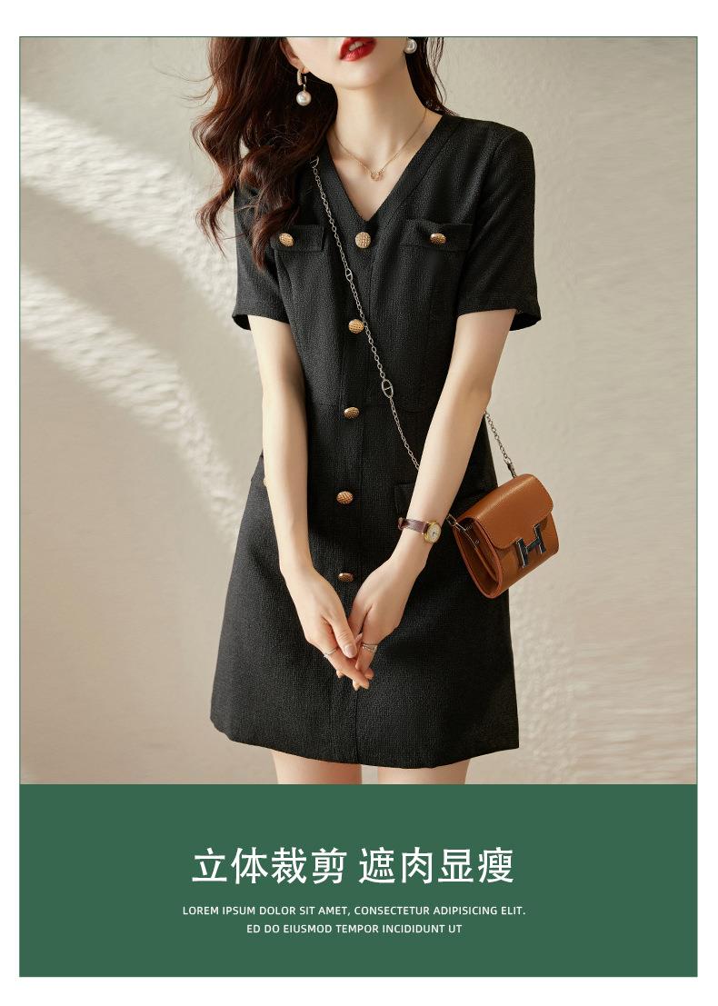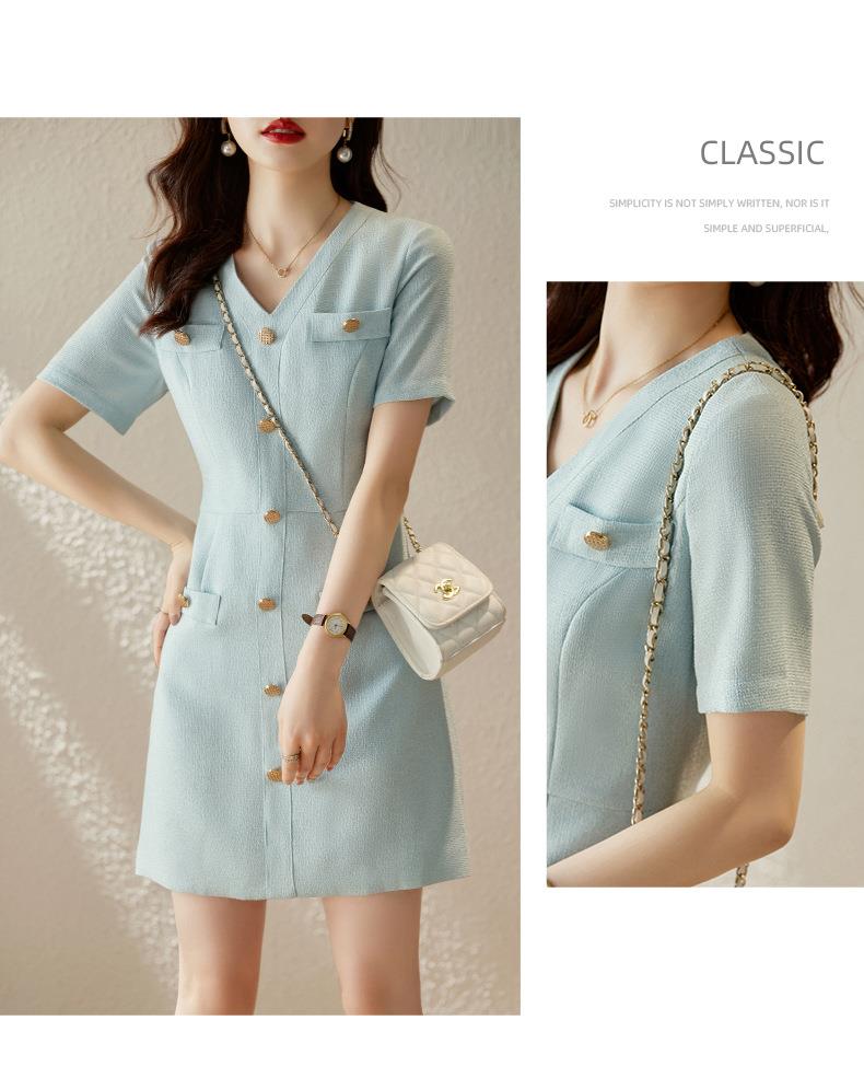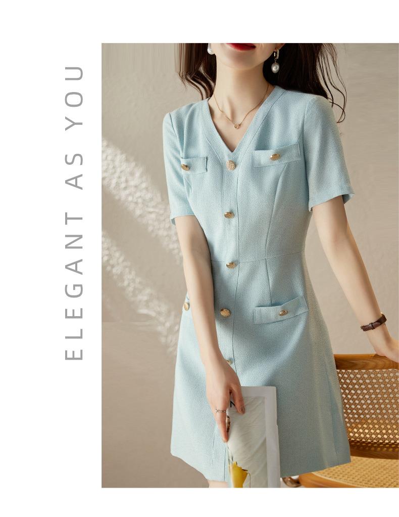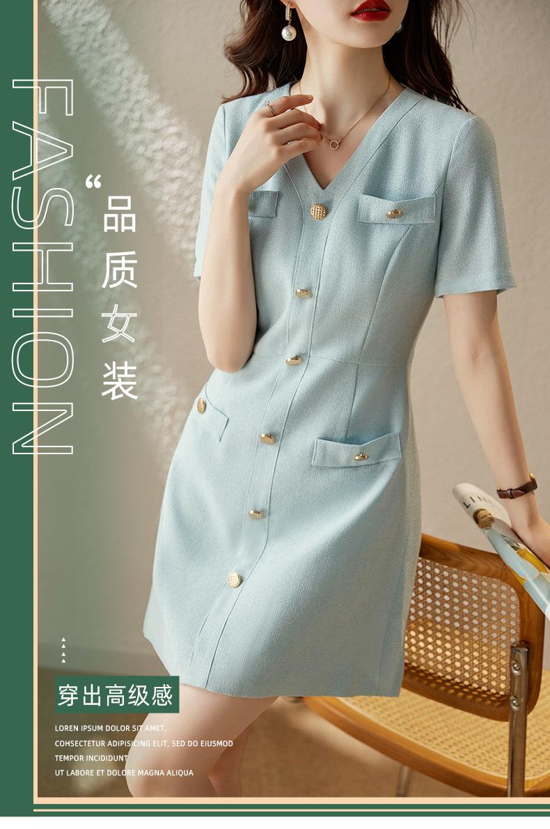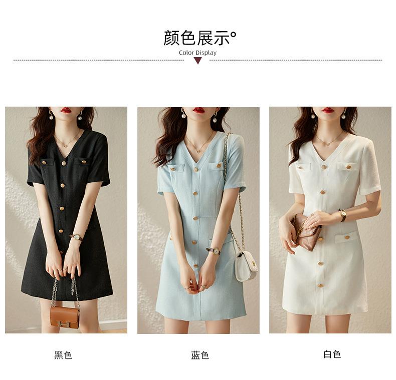 娜璐多 法式小香风白色连衣裙女2023夏季新款高级感气质名媛V领短袖裙子