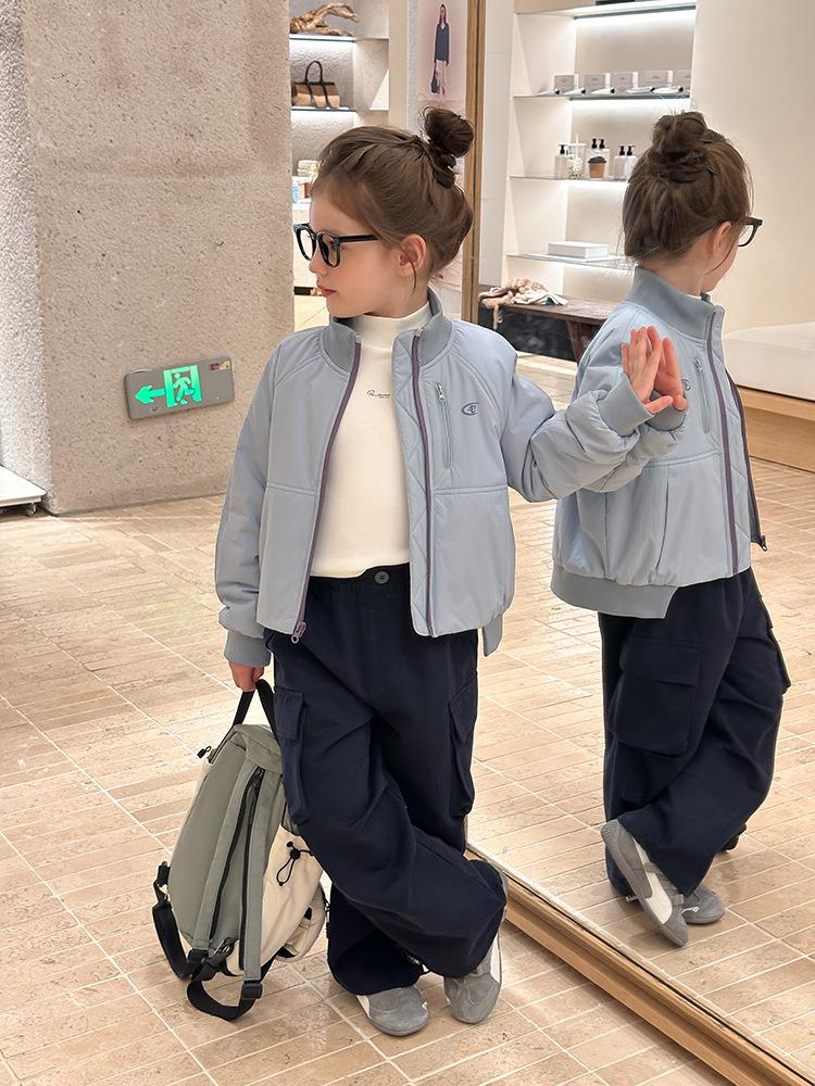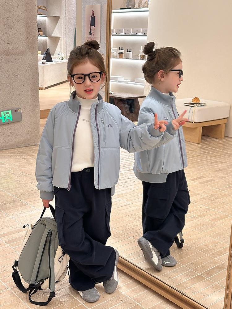 艾摩贝贝儿童轻便软弹锁温棉服女童保暖防风立领短款棉衣外套潮【杜邦棉】