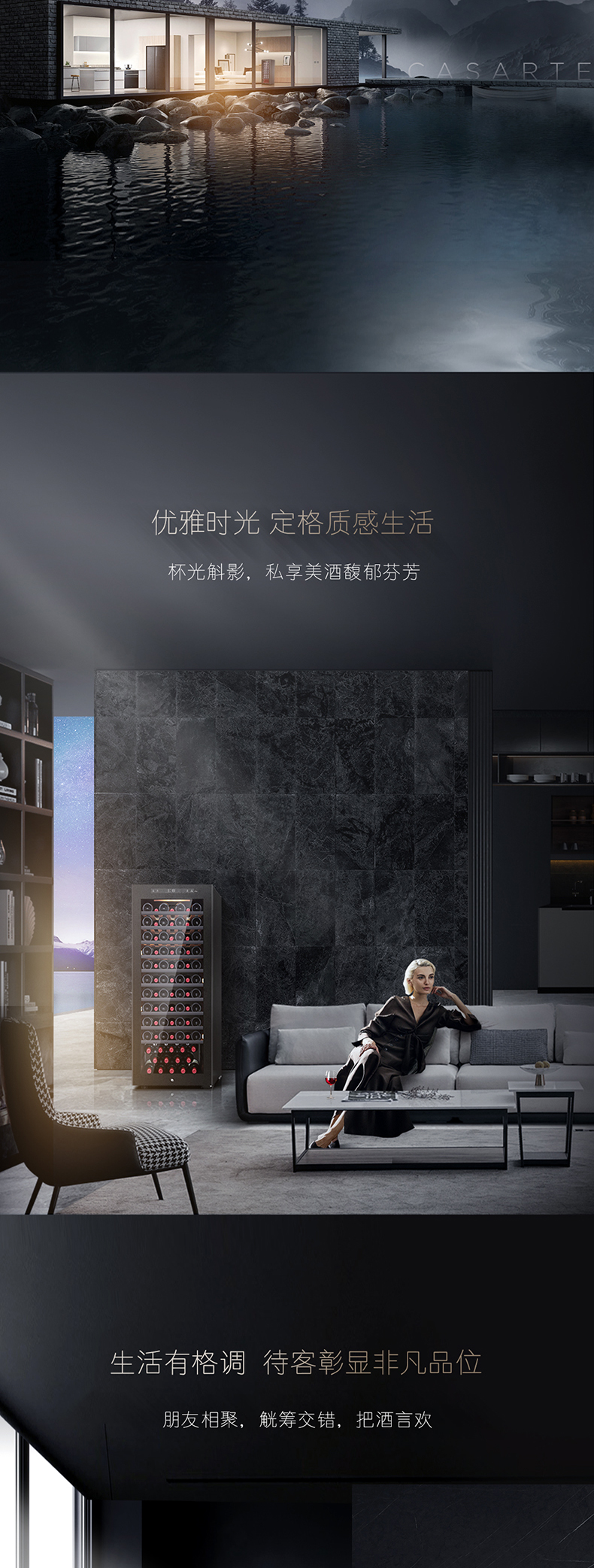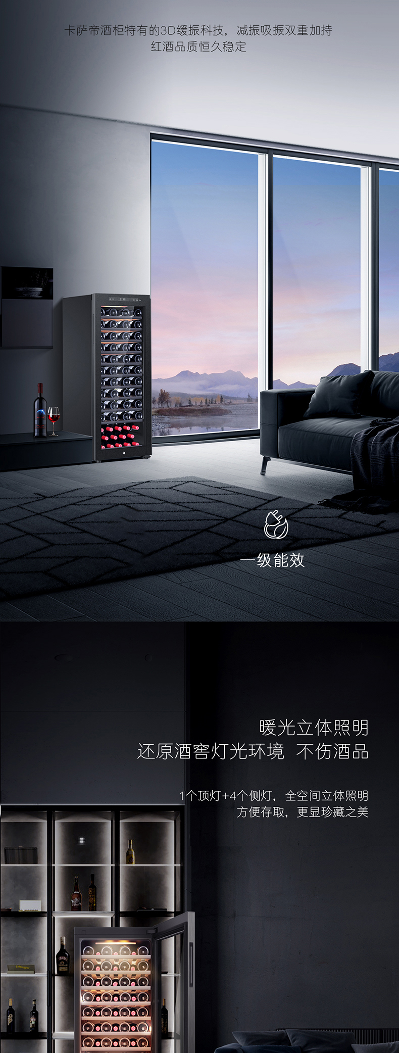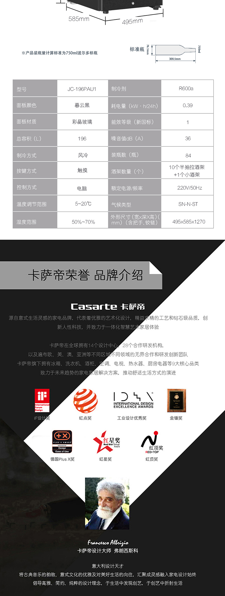 卡萨帝84瓶装原石系列恒温红酒柜 办公室客厅葡萄酒冷藏风冷家用酒柜JC-196PAU1