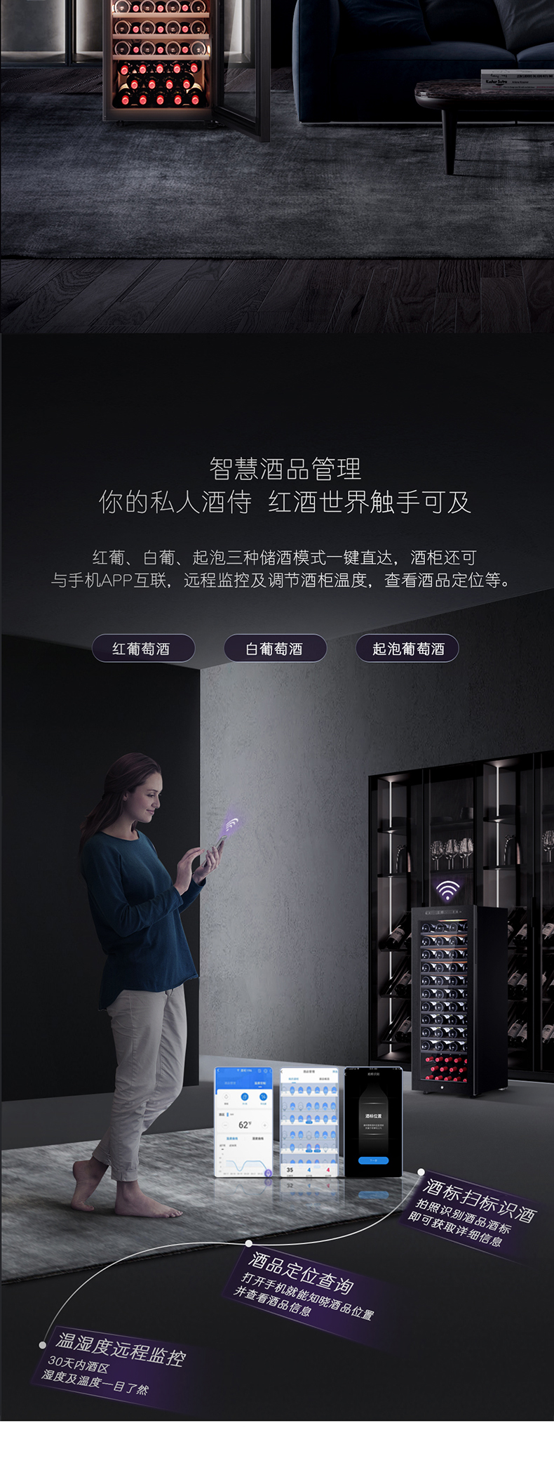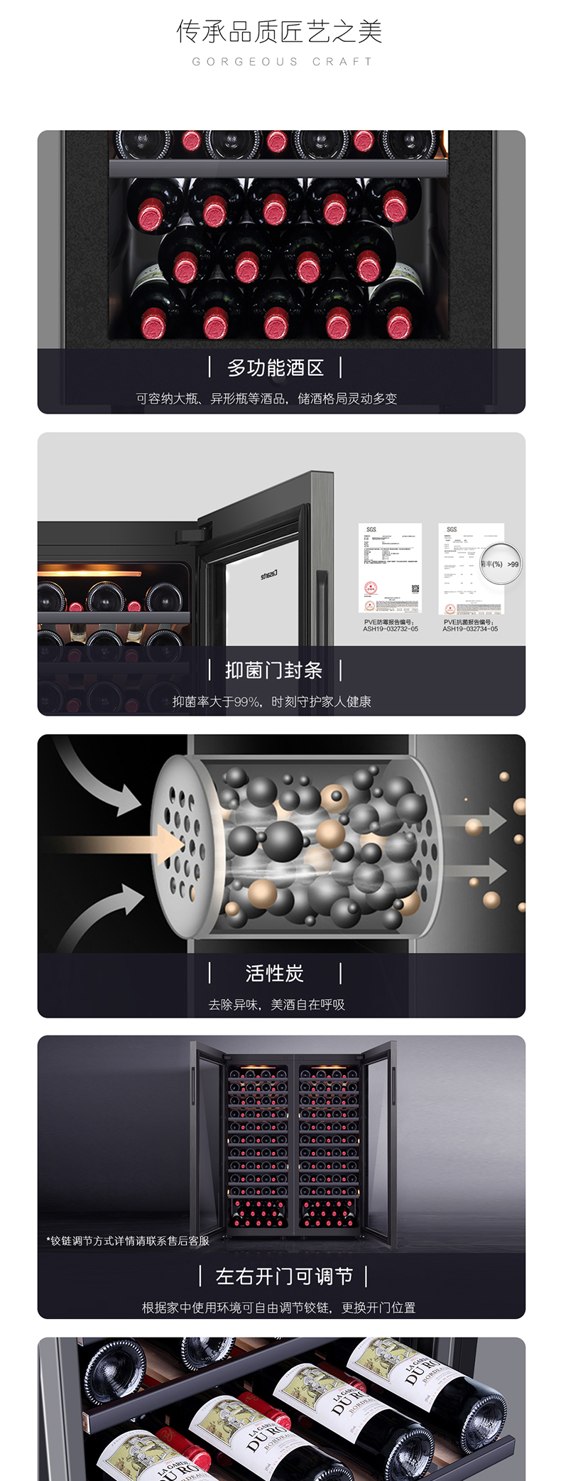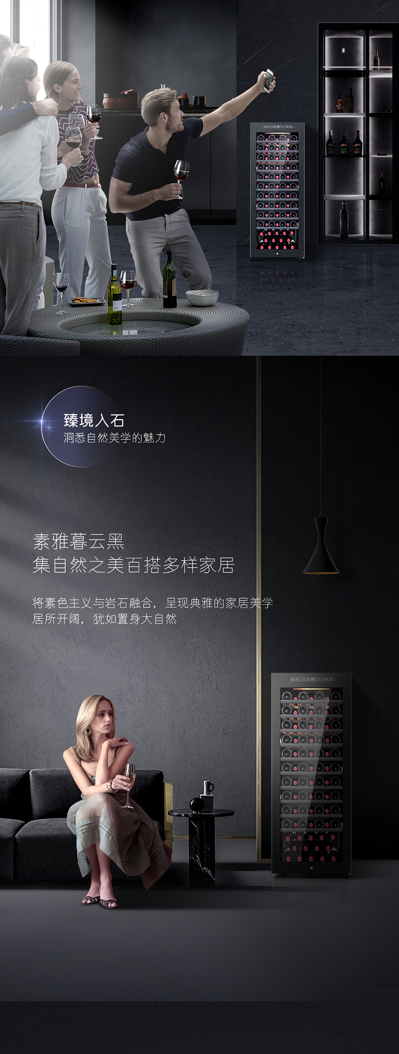 卡萨帝84瓶装原石系列恒温红酒柜 办公室客厅葡萄酒冷藏风冷家用酒柜JC-196PAU1