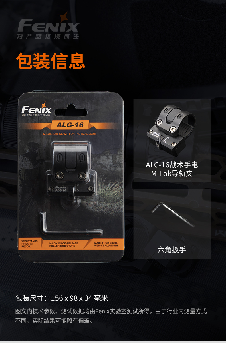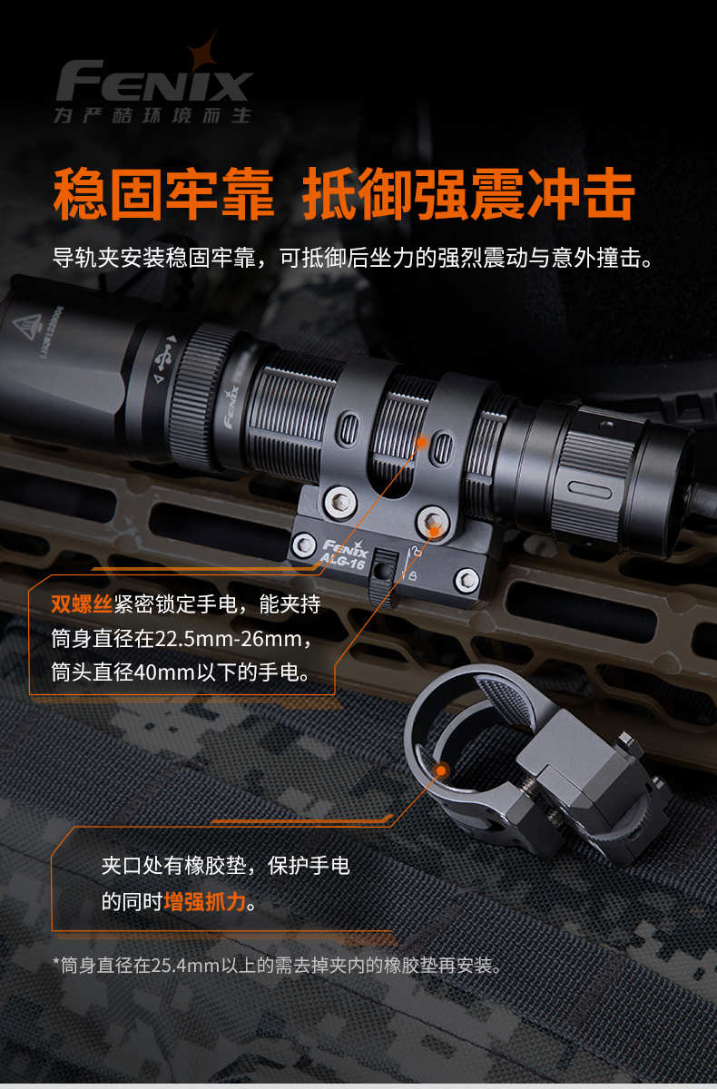 Fenix 菲尼克斯ALG-16战术强光手电筒夹具支架铝合金手电夹子底座