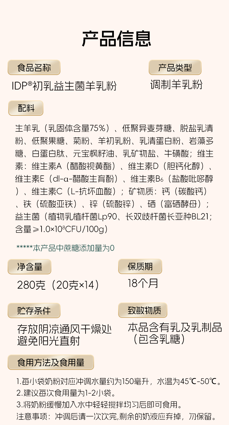 ³ 发3盒【含IDP初乳益生菌羊奶粉】生羊乳+益生菌+益生元等 20g*14袋/盒XN03-CRMM-HPK