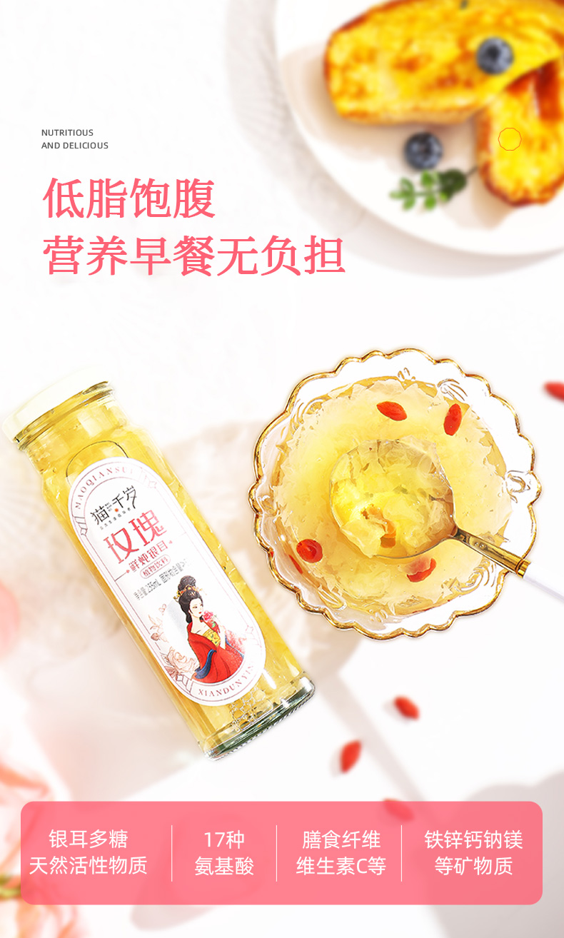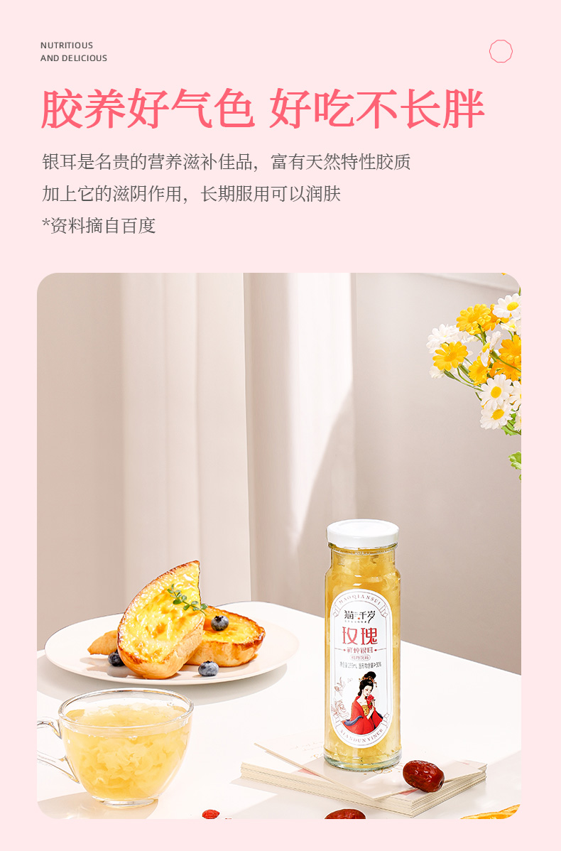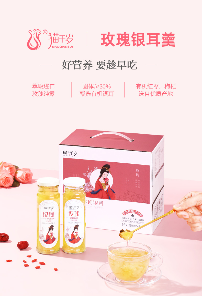 【冯站长专属】猫千岁有机玫瑰银耳鲜露235ml/瓶 送礼佳品 滋润养颜 好喝不甜腻
