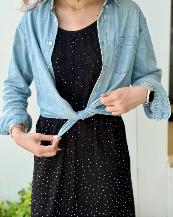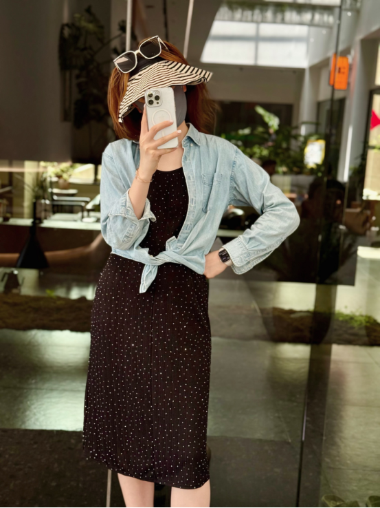 烫钻小黑裙,内穿、外搭都🉑 给人一种气场强大的即视感 日常通勤上班,单穿性感显瘦又温柔 日常搭配衬衣/牛仔外套都超好看 不费力的穿出了一种轻松简单 单穿搭配一双黑色平底鞋 放松随性