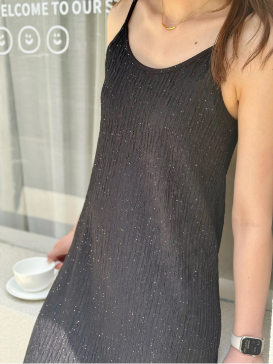 ✅黑白色亮片款 个人认为这条裙子不挑人,但很挑状态! 燕瘦环肥,各有各的美,因为是斜裁 修身不紧身,所以这条吊带裙对身材的包容性比较强 只要不在乎胳膊上的肉,都能穿得还不错