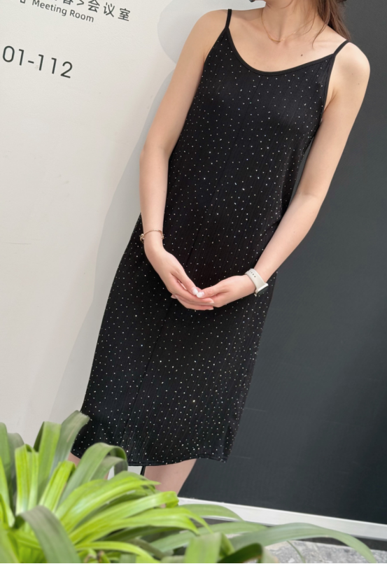 ✅黑色烫钻款 经典黑色吊带裙 修身高腰A字版型 能够wan美的修饰身材曲线